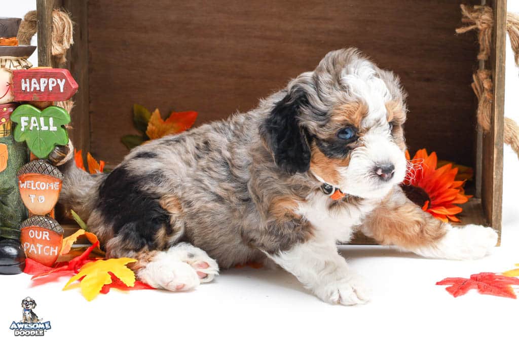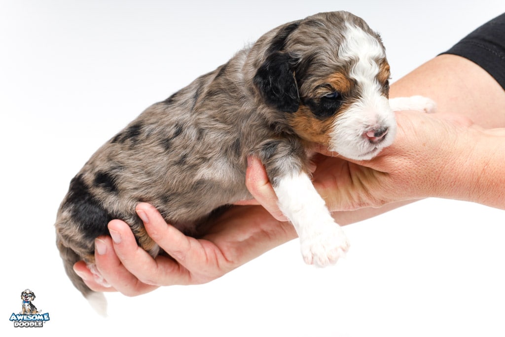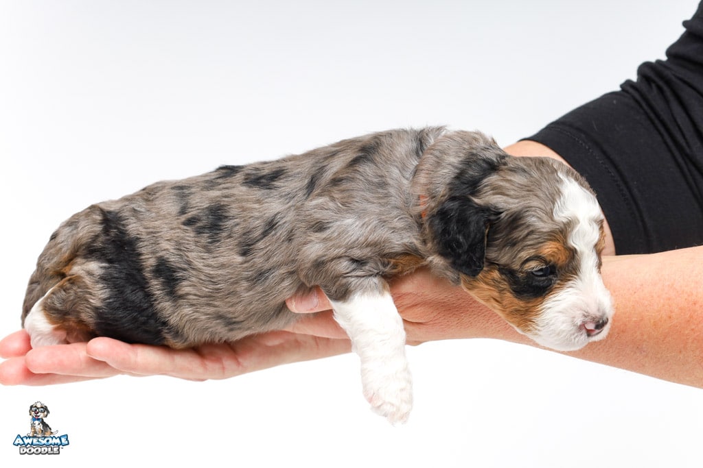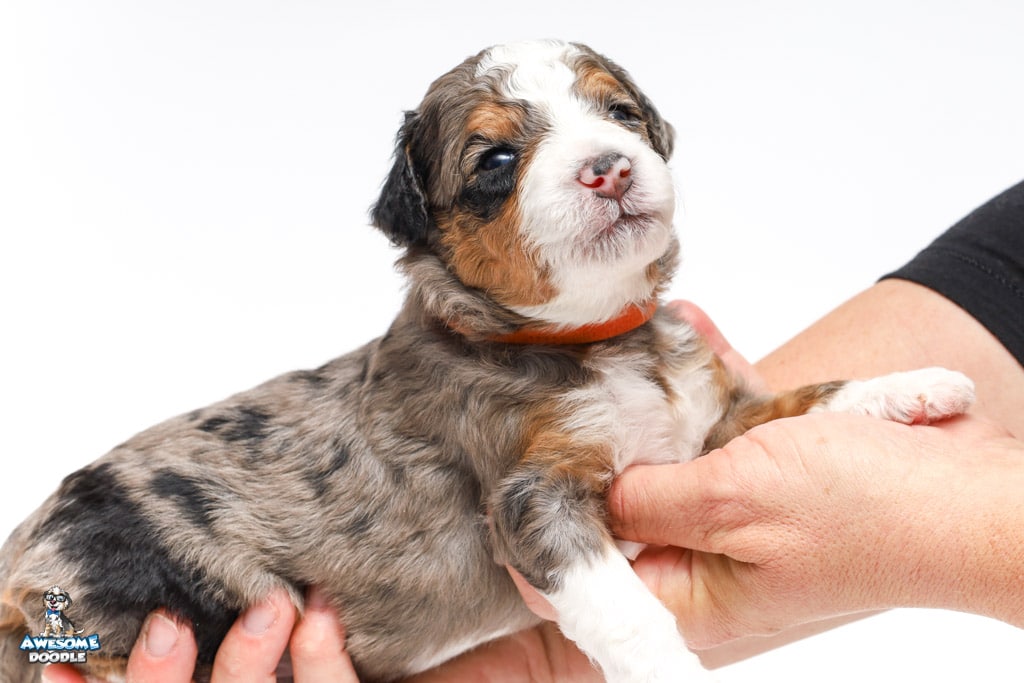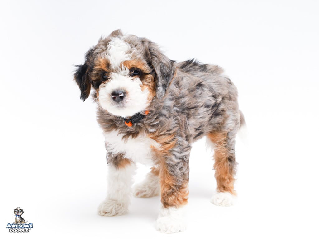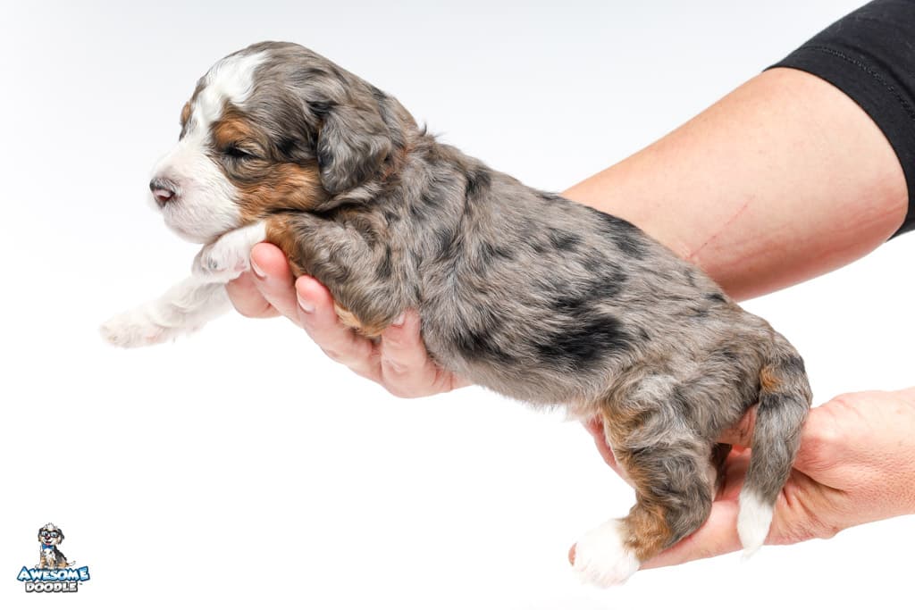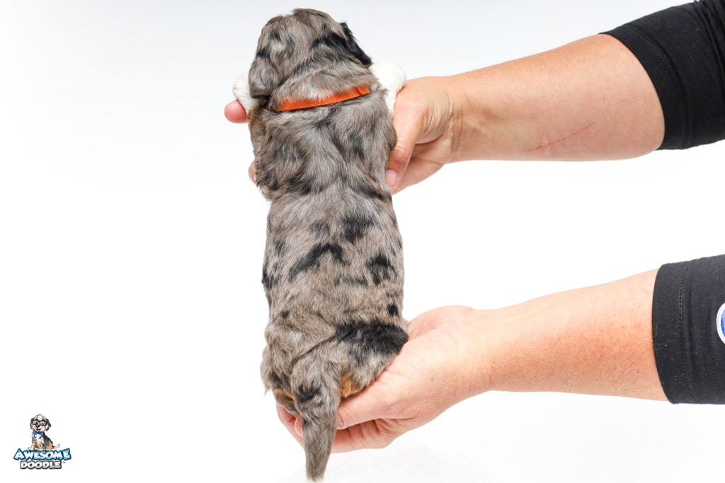 Howie is a male Blue Merle w/ White & Copper F1 AussieDoodle puppy.