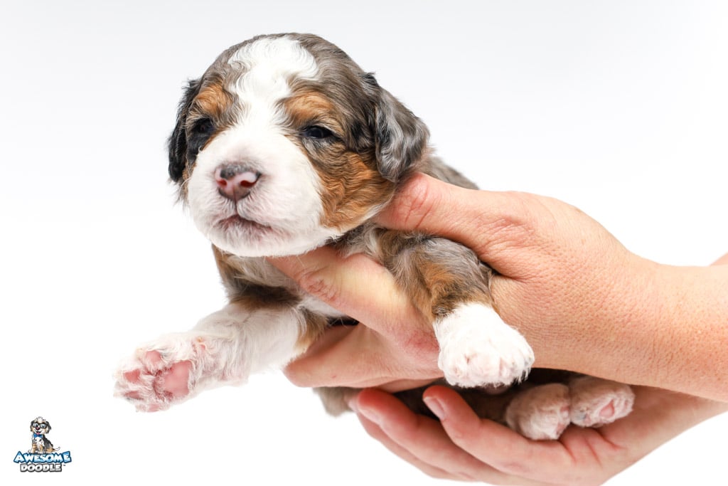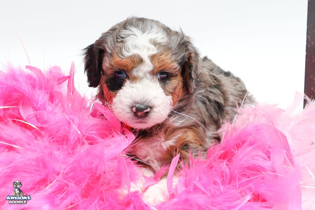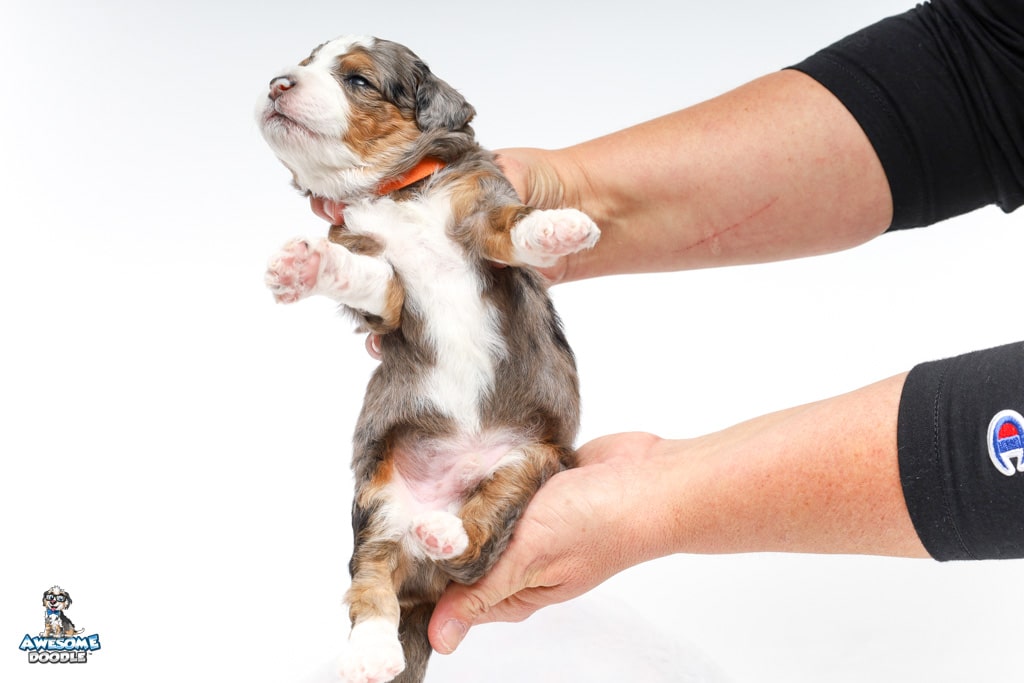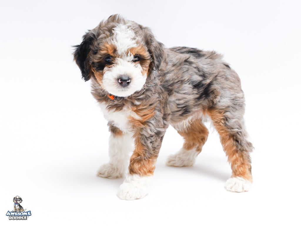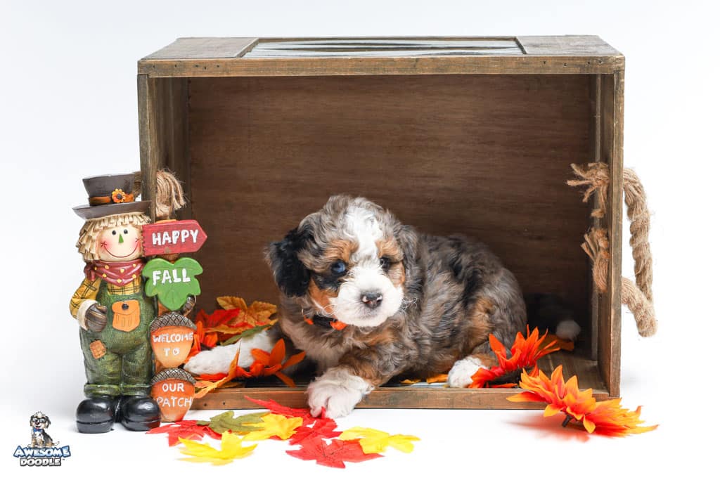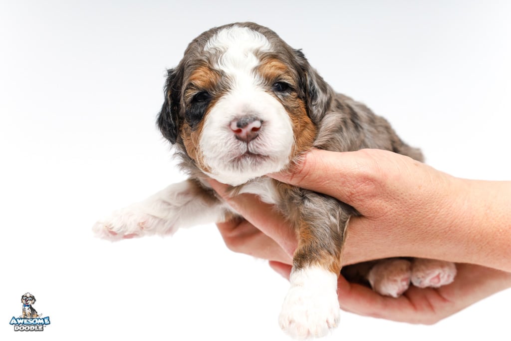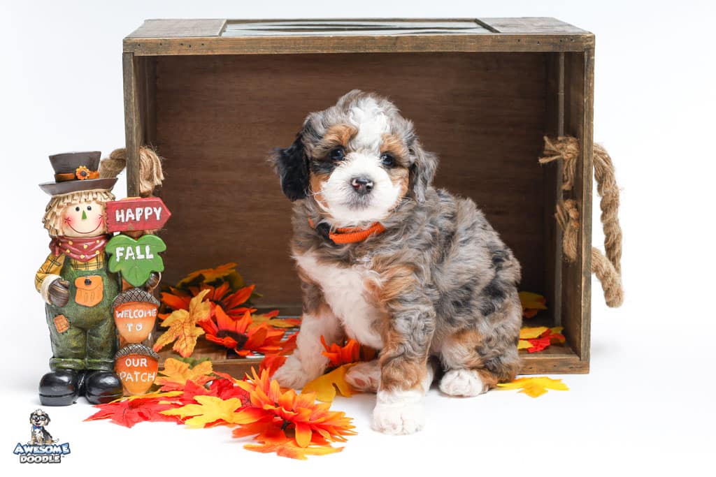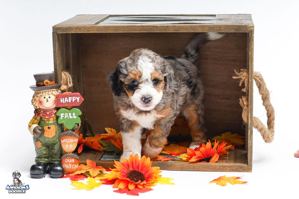 Howie is a male Blue Merle w/ White & Copper F1 AussieDoodle puppy.