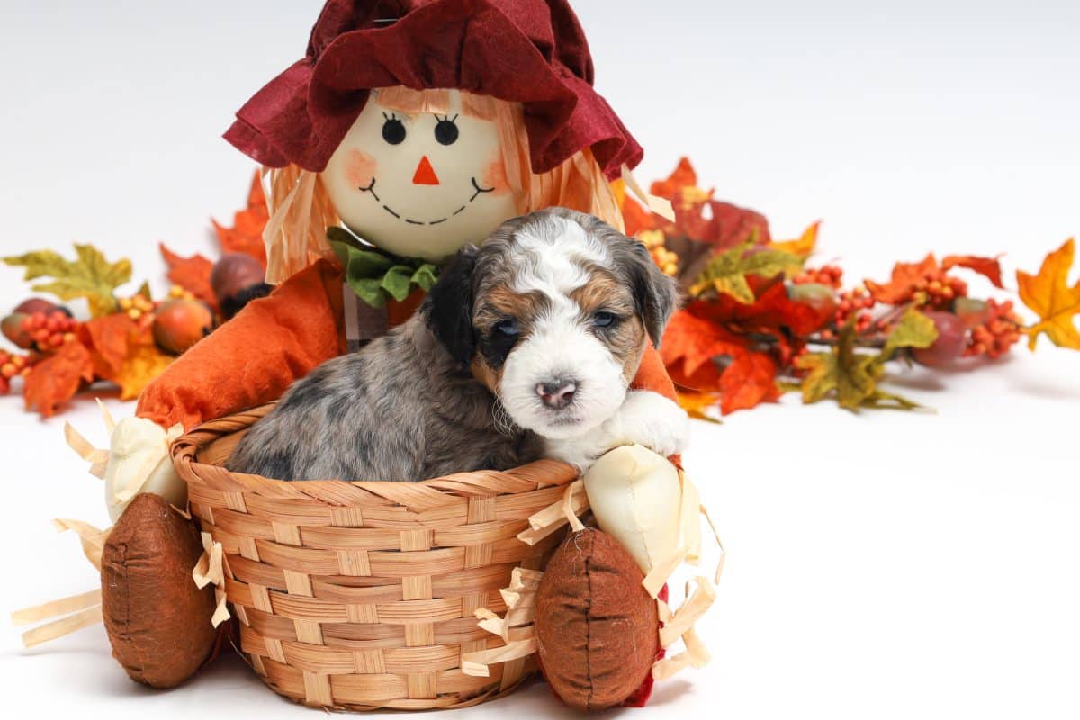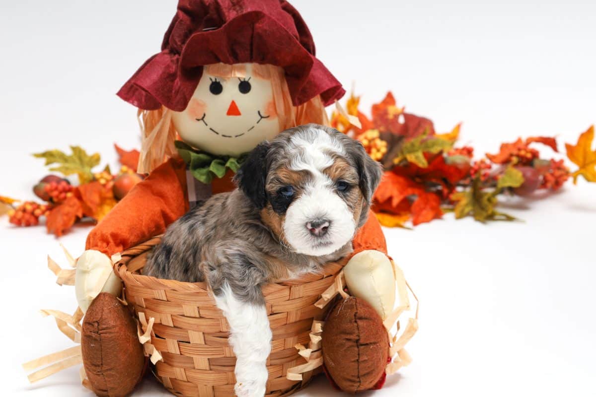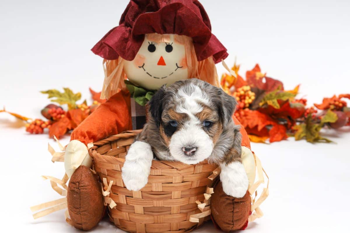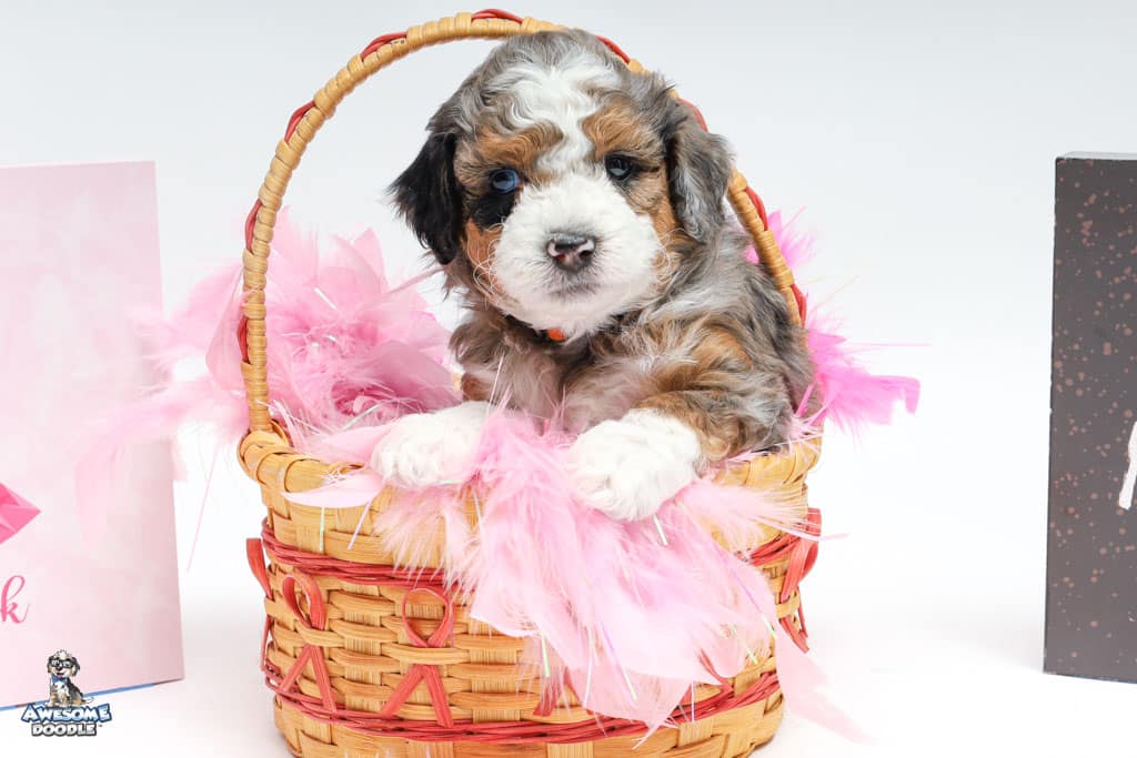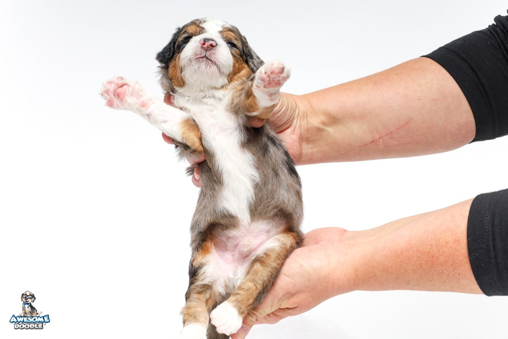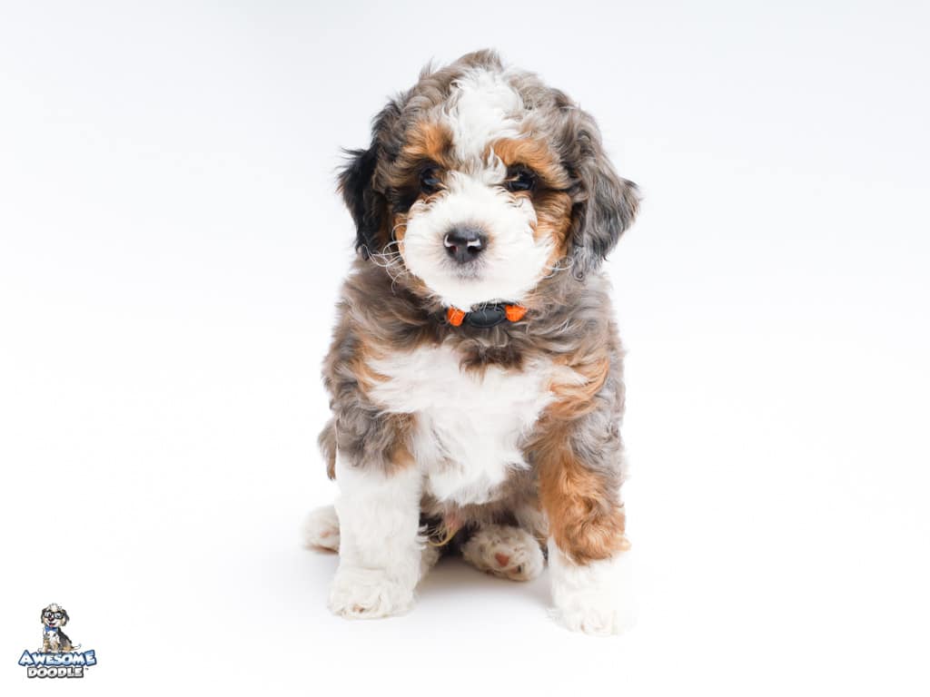 Howie is a male Blue Merle w/ White & Copper F1 AussieDoodle puppy.