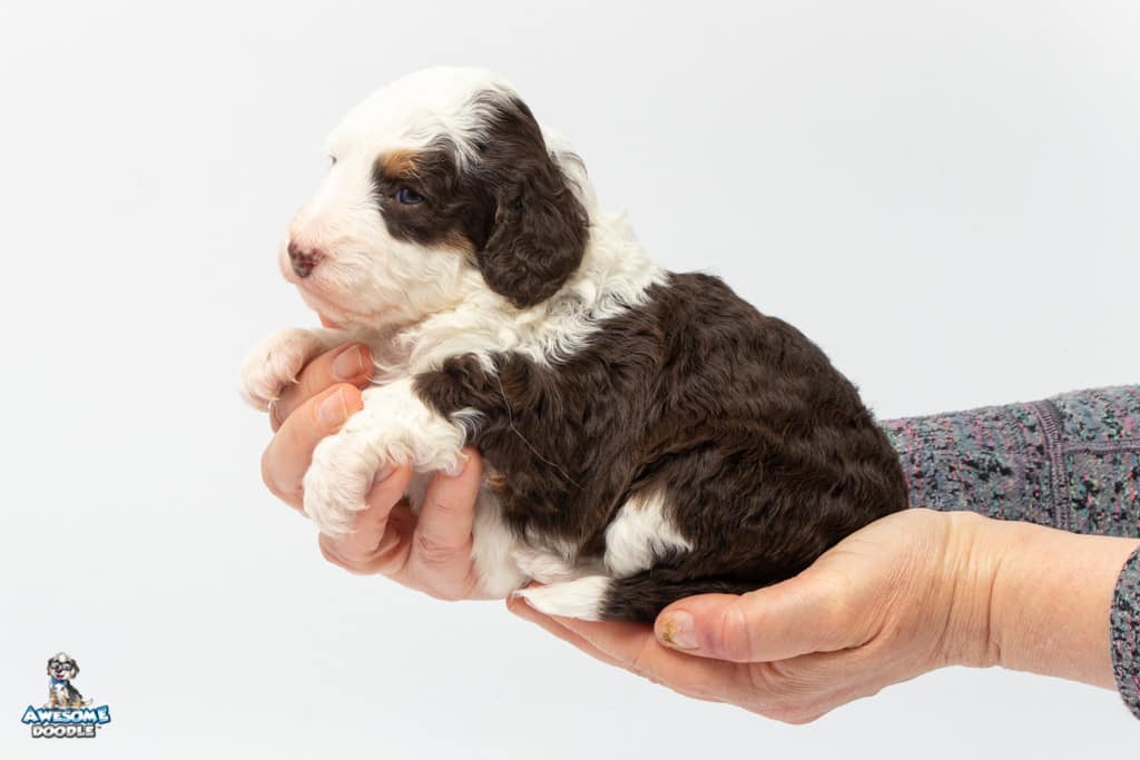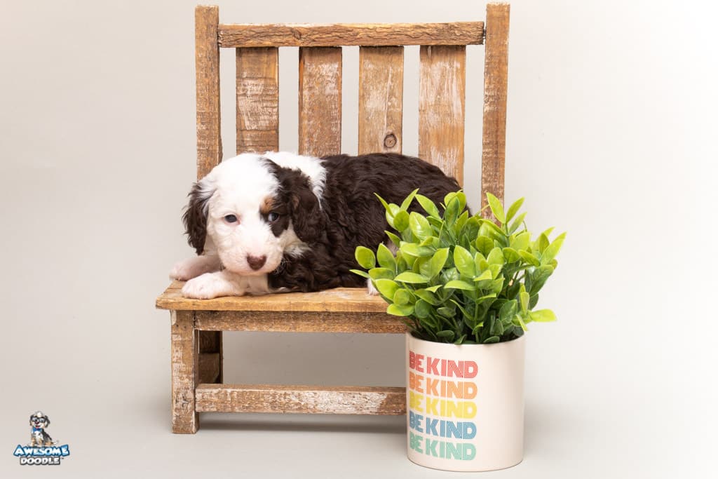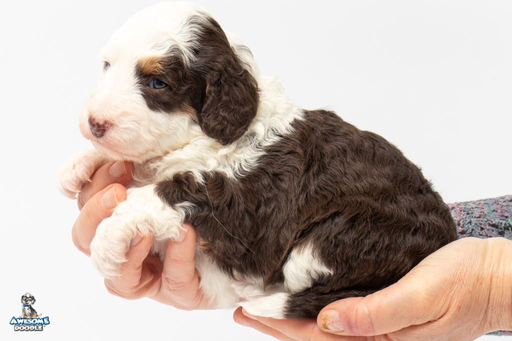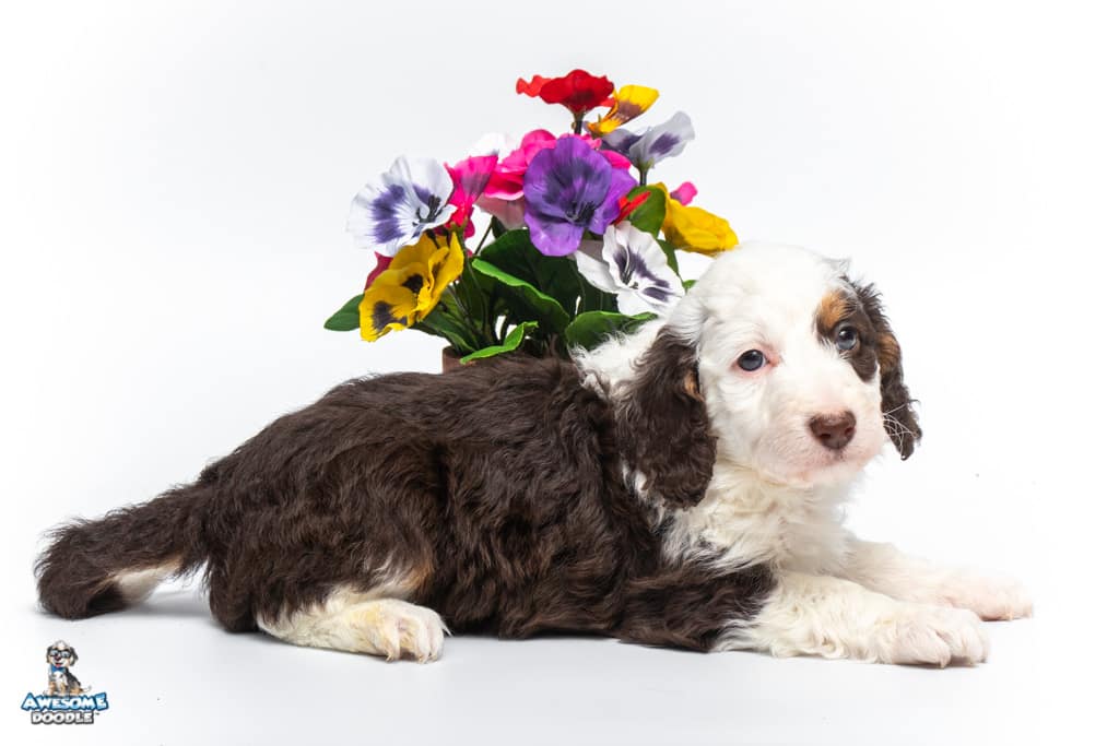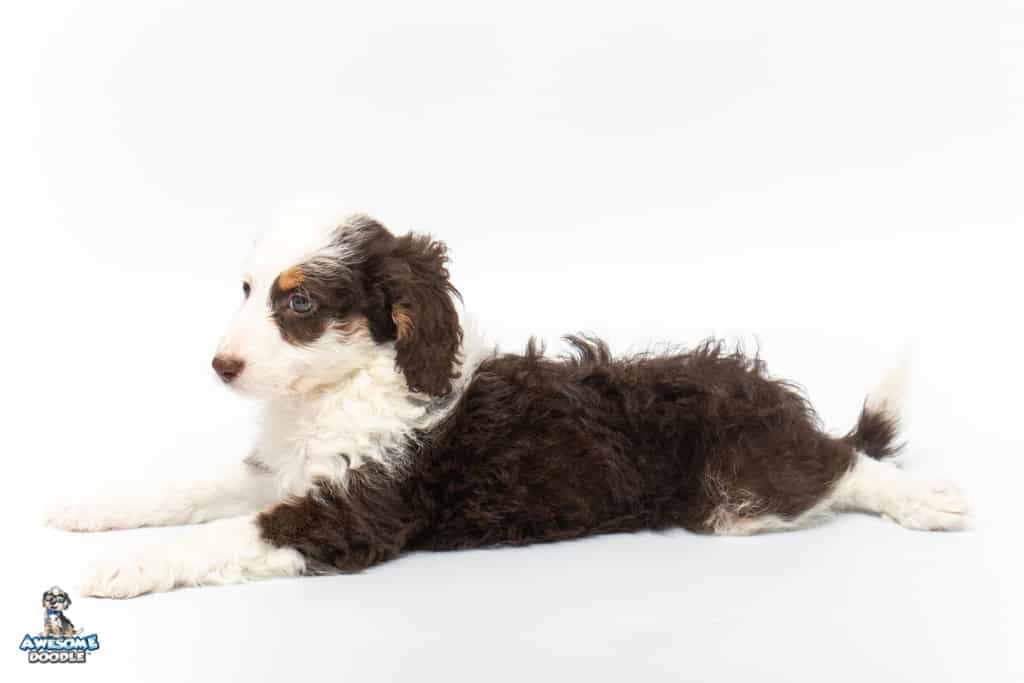 Jellybean is a female Chocolate Tri-Color F1 AussieDoodle puppy.