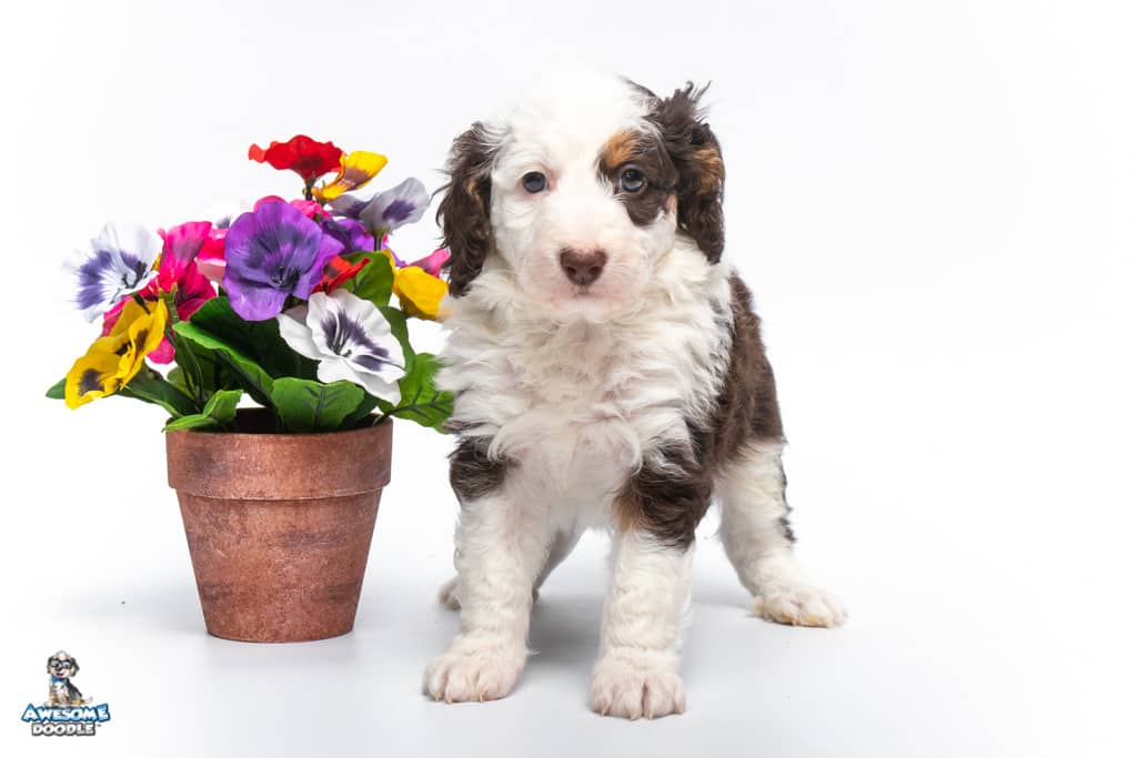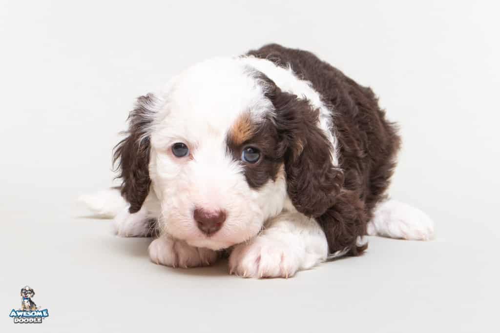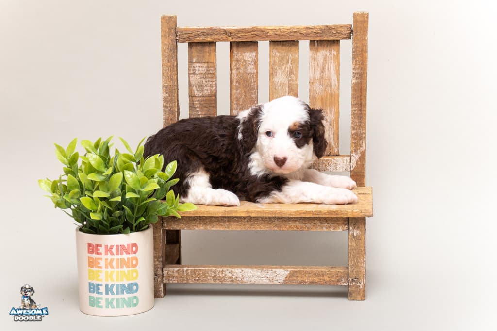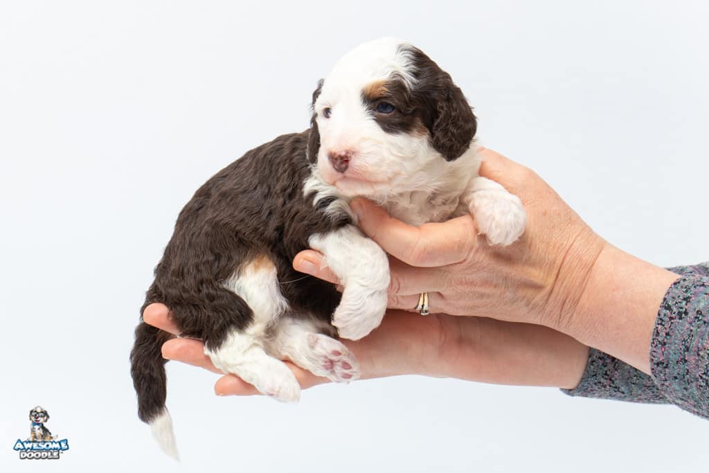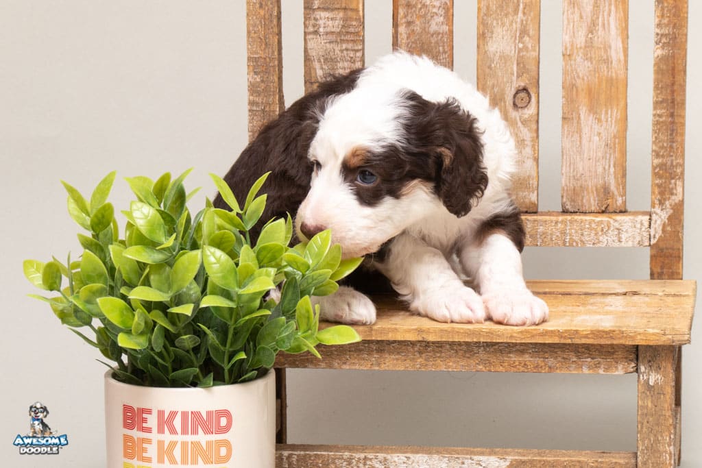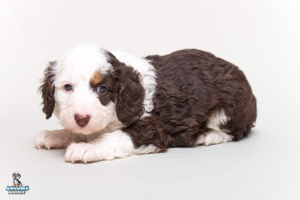 Jellybean is a female Chocolate Tri-Color F1 AussieDoodle puppy.
