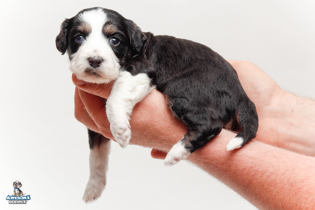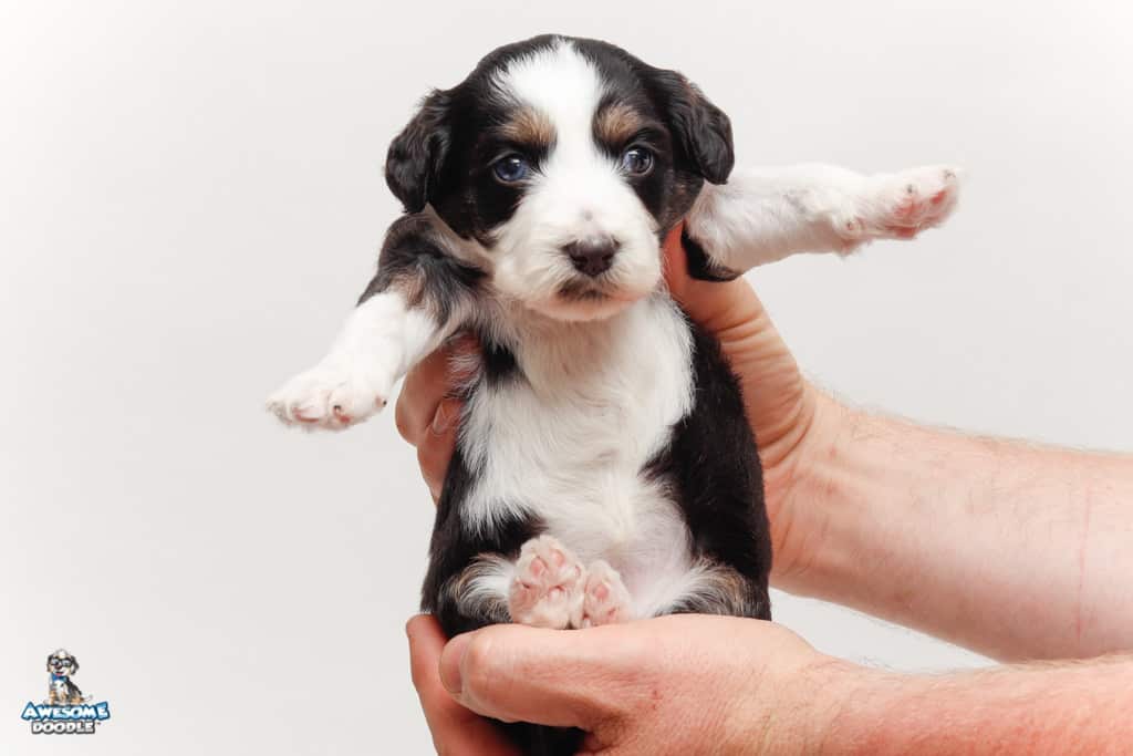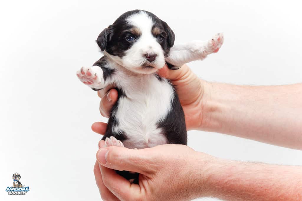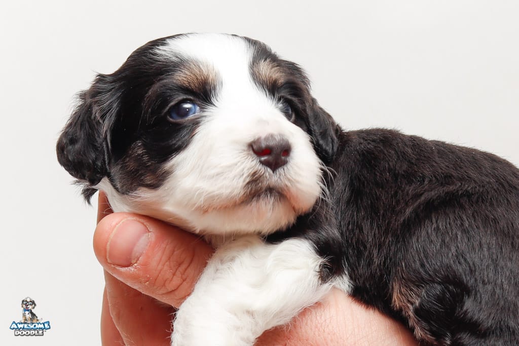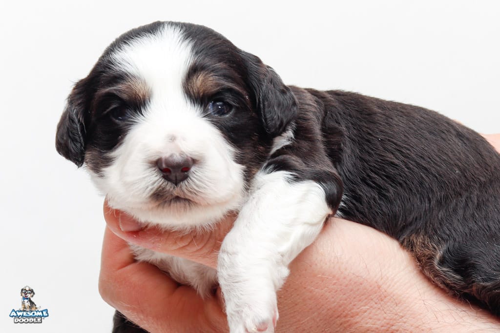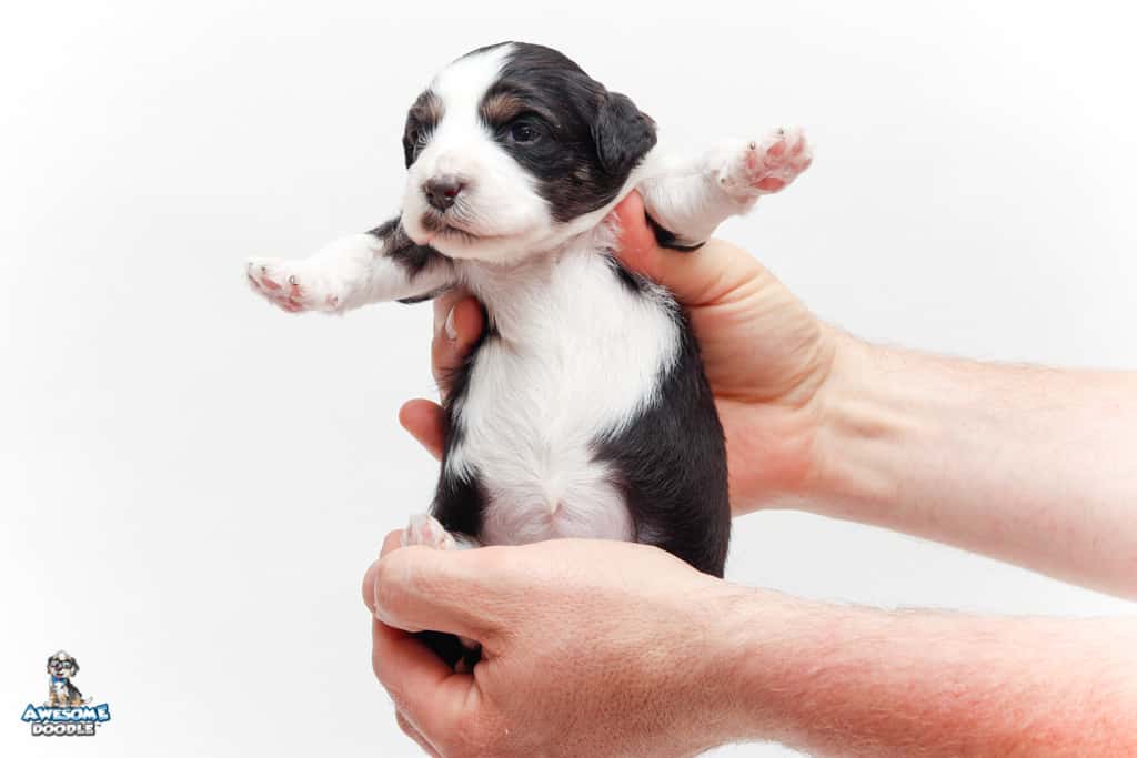 Piper is a female Black Tri-Color F1 AussieDoodle puppy.