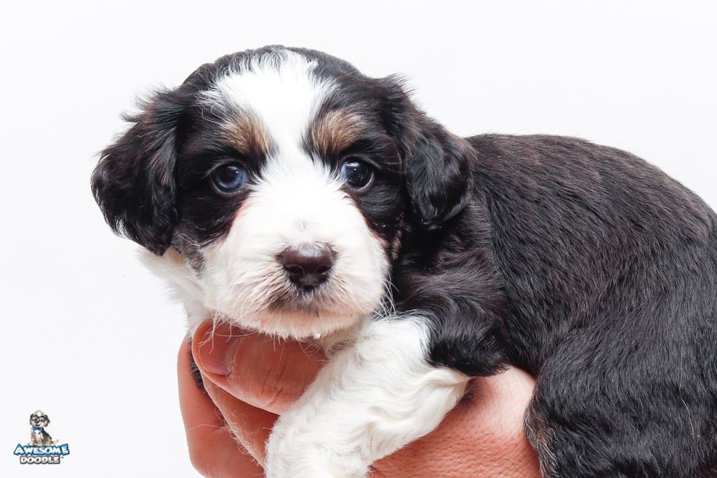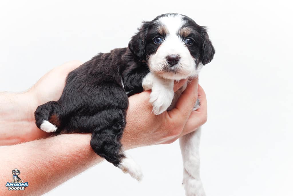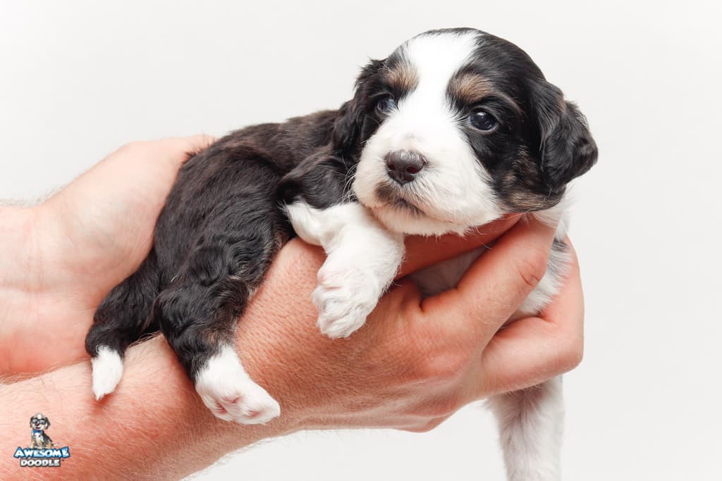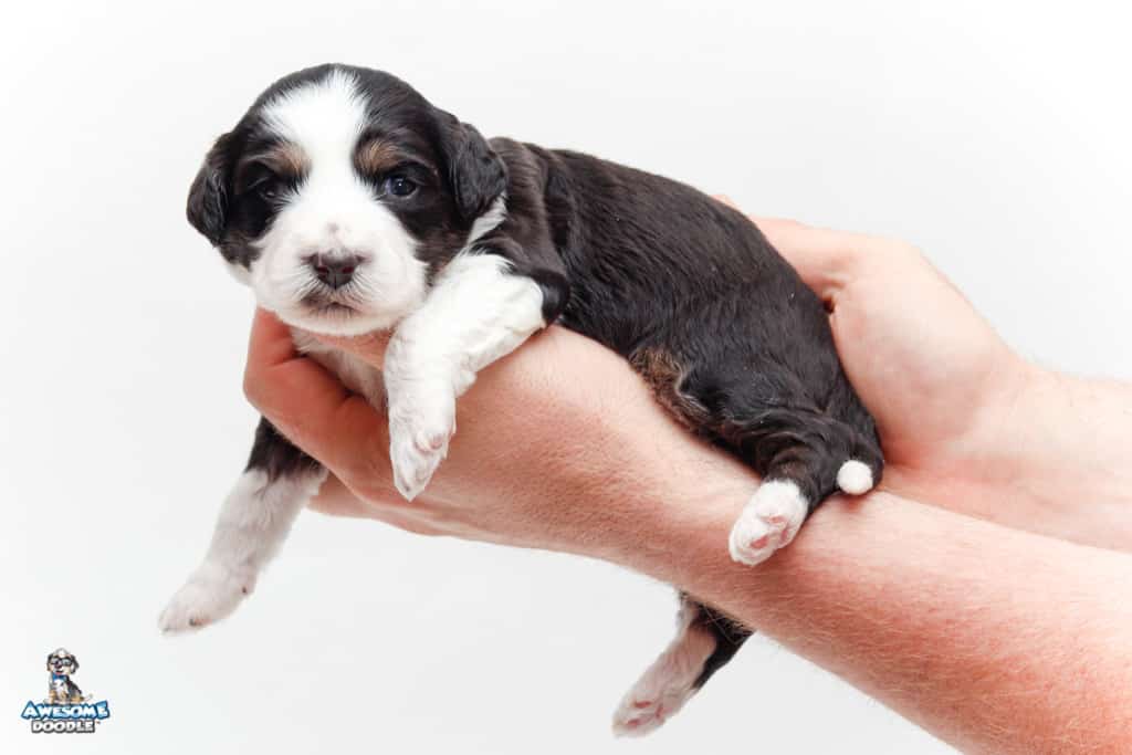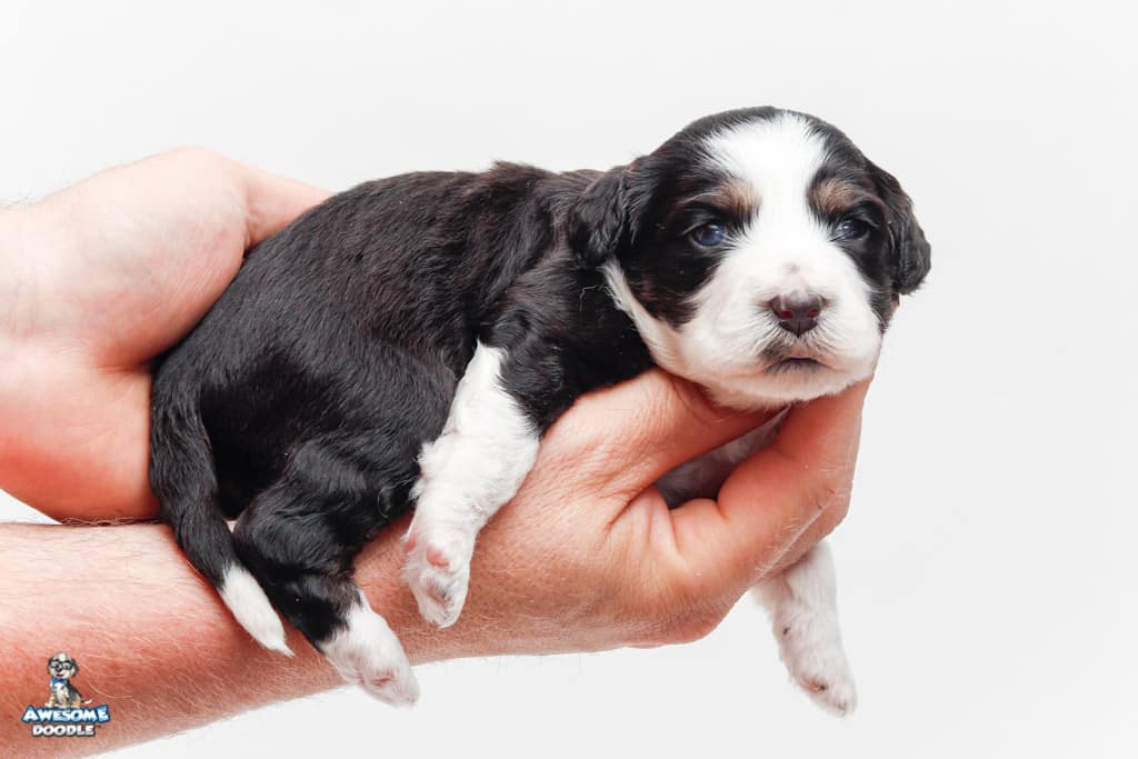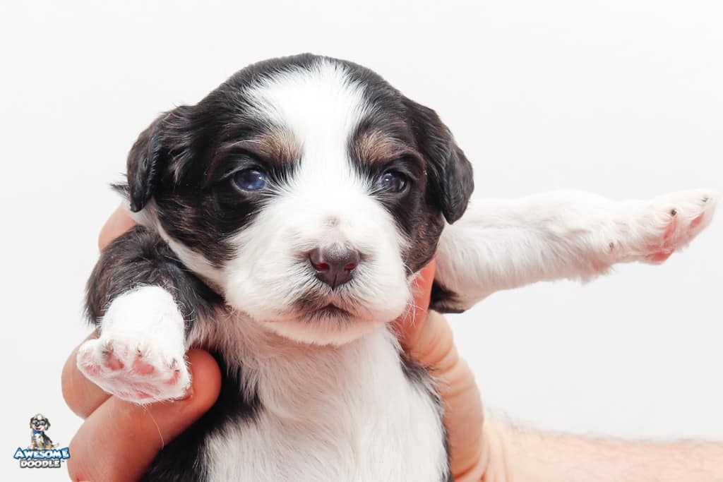 Piper is a female Black Tri-Color F1 AussieDoodle puppy.