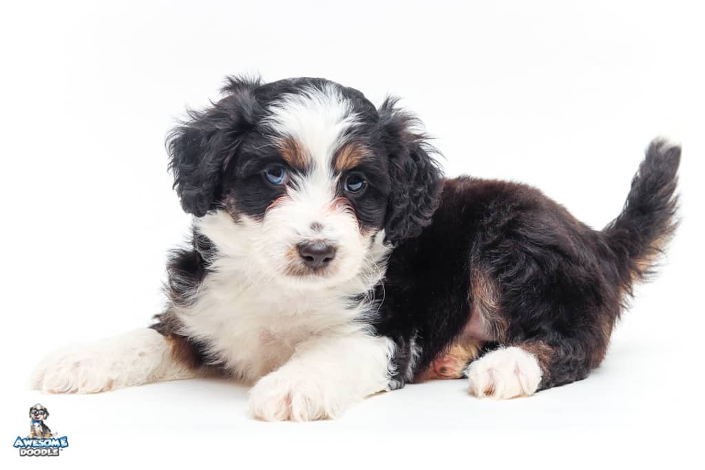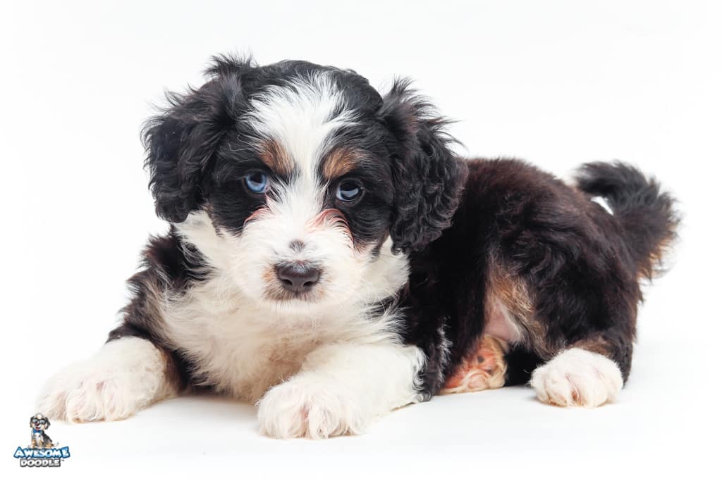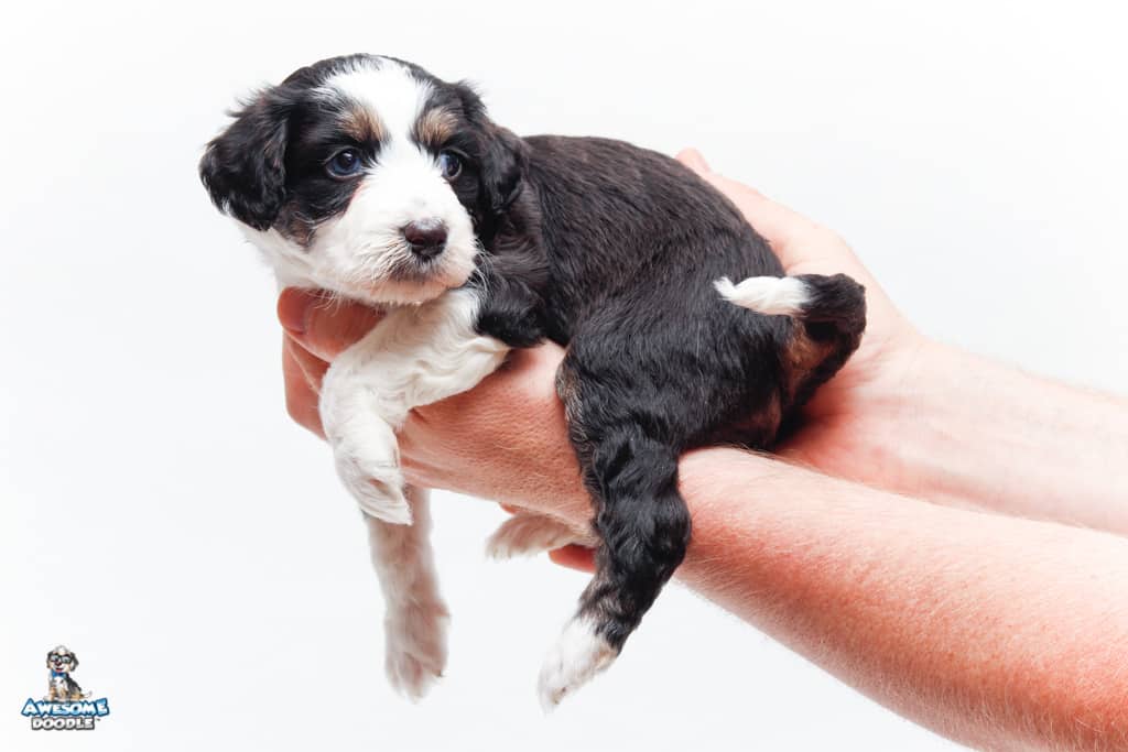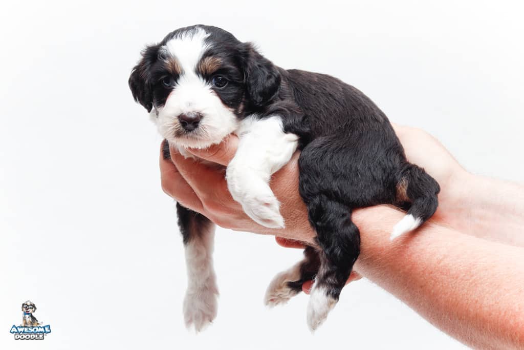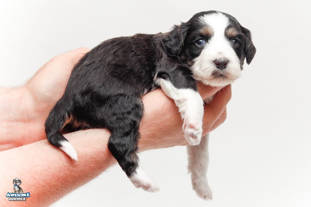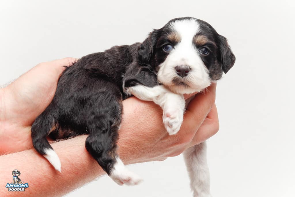 Piper is a female Black Tri-Color F1 AussieDoodle puppy.