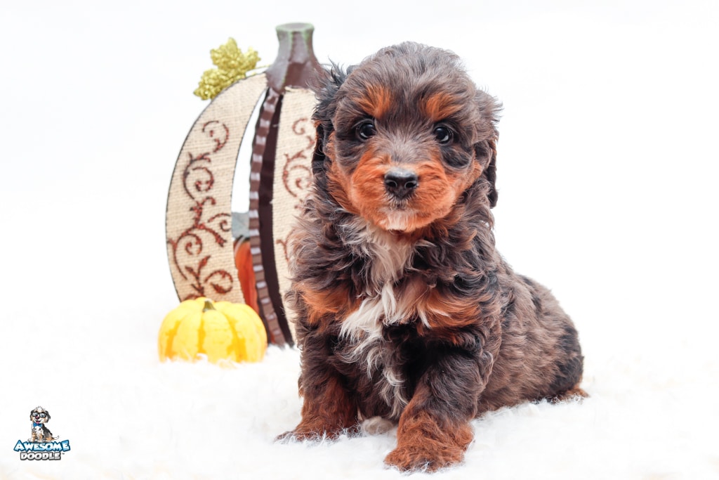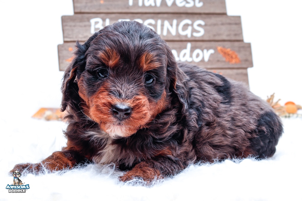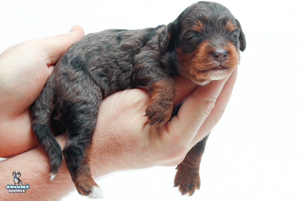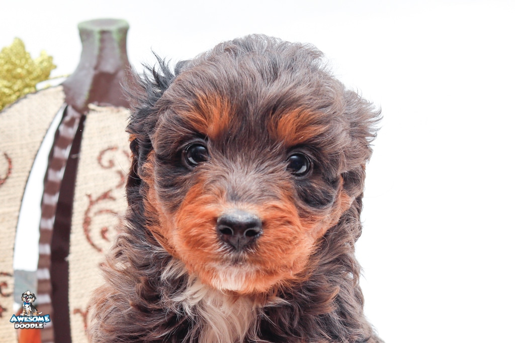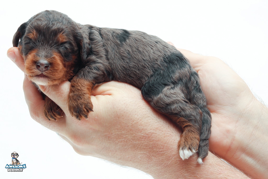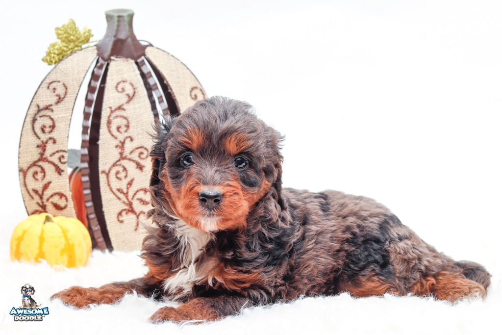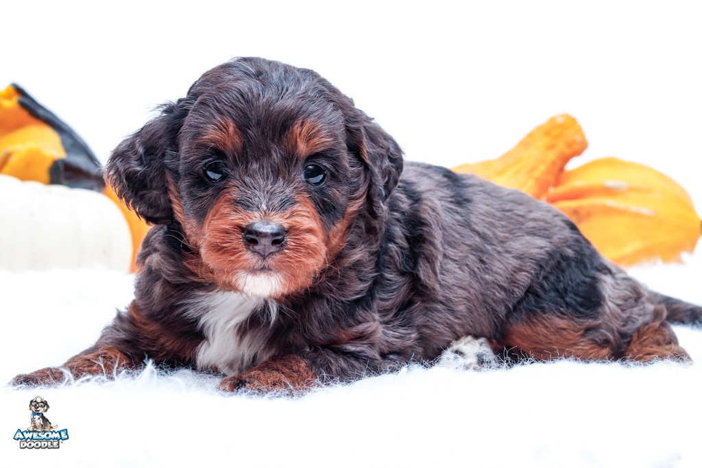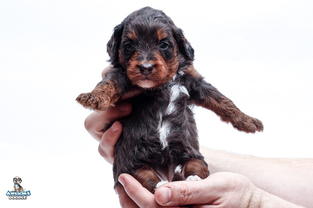 Lady is a female Phantom Blue Merle F1 AussieDoodle puppy.