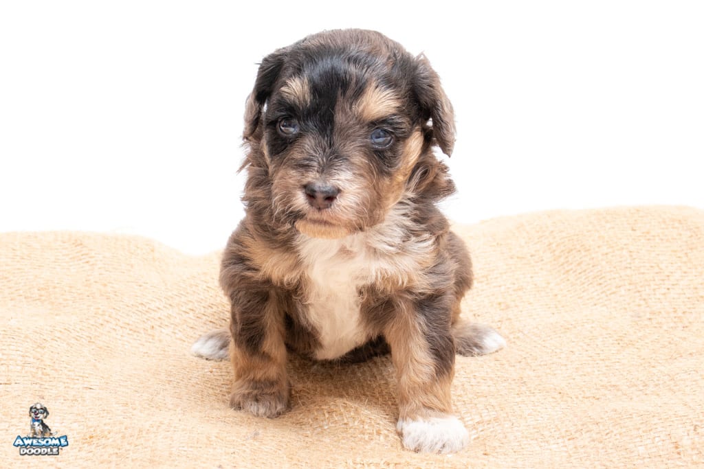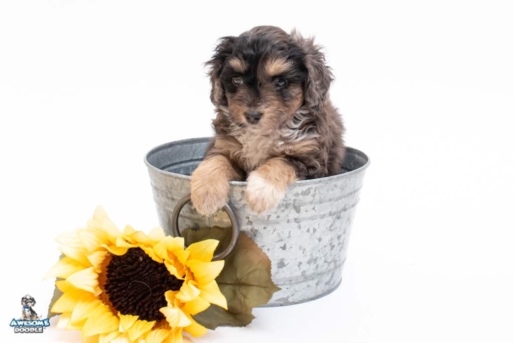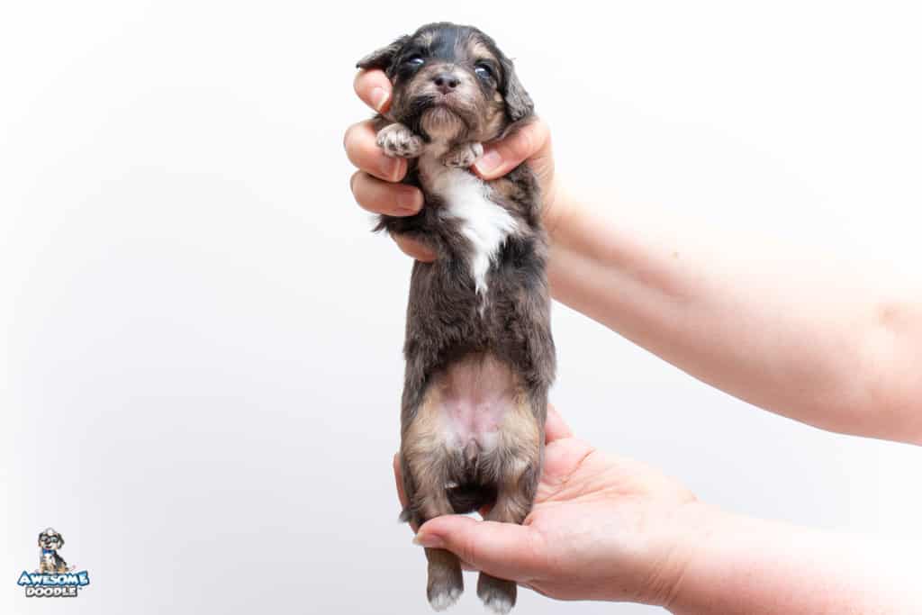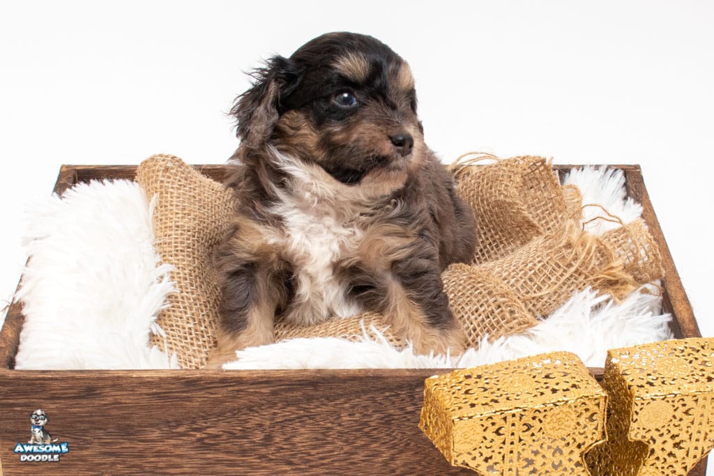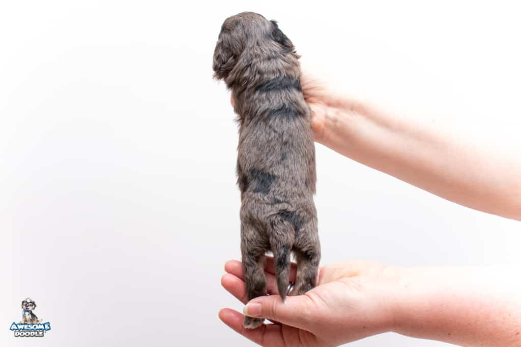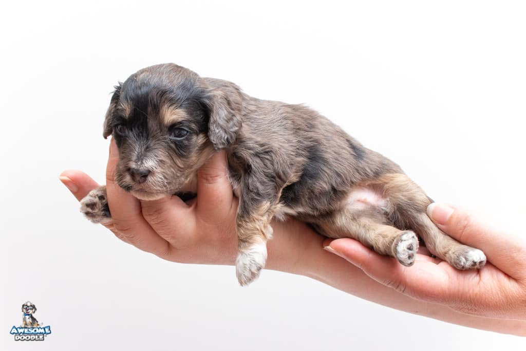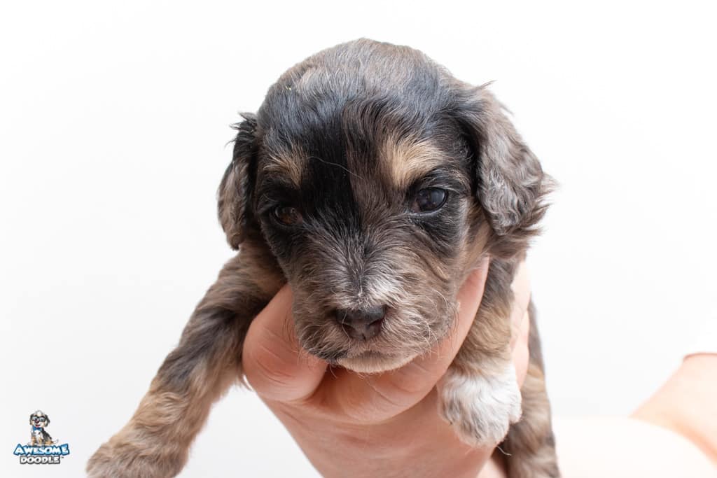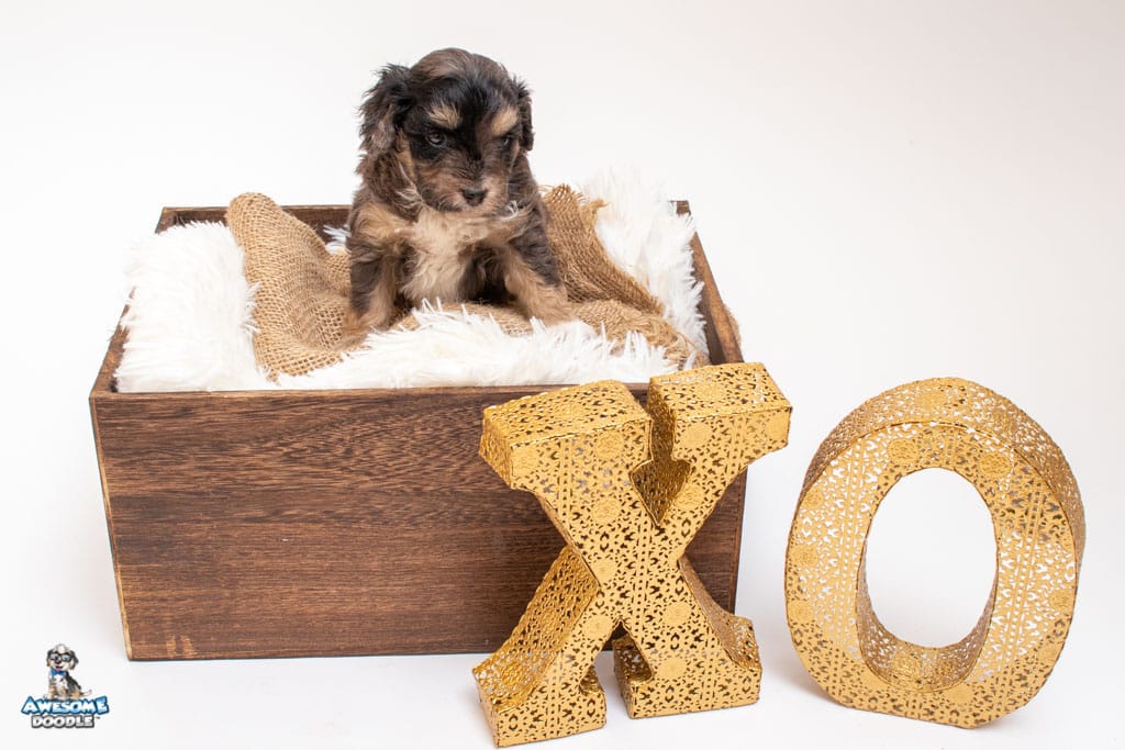Millie is a female Phantom Blue Merle F1 AussieDoodle puppy.