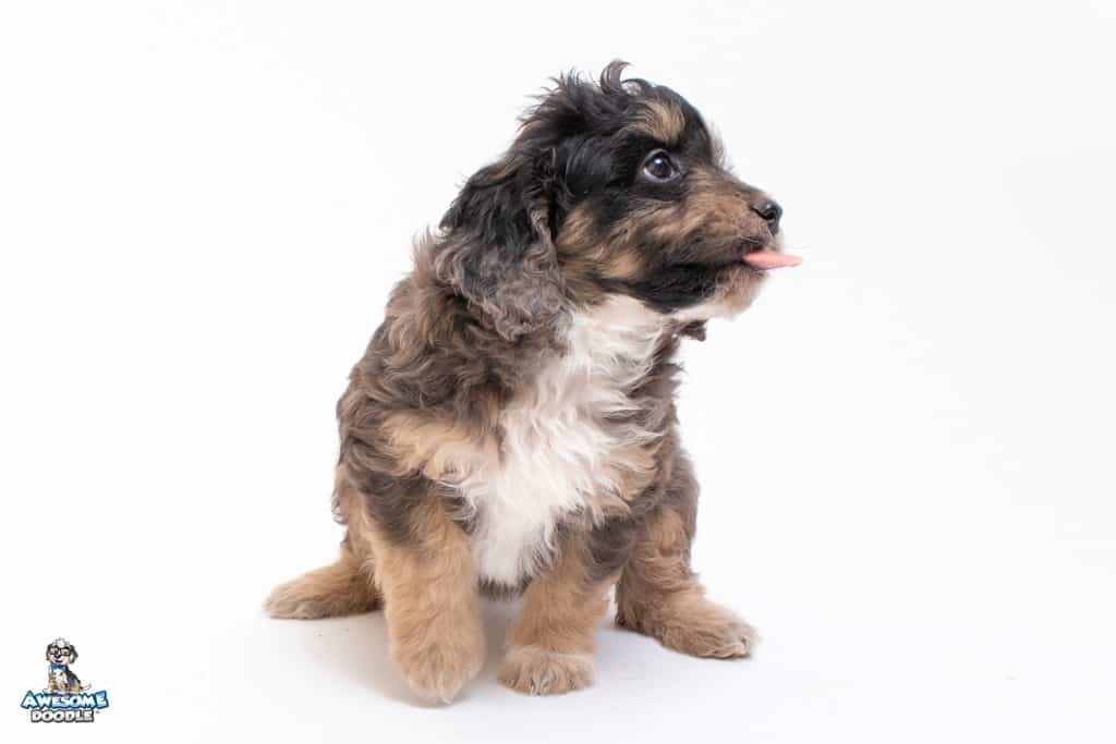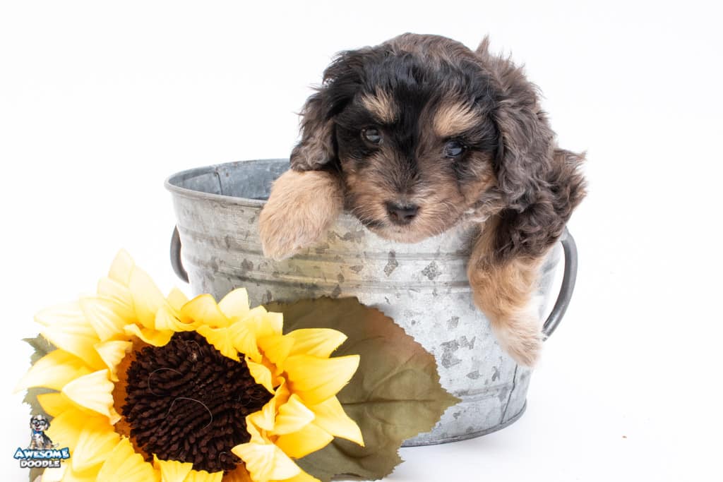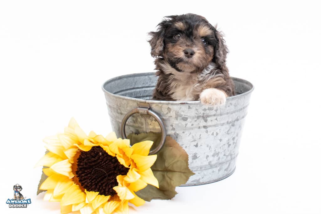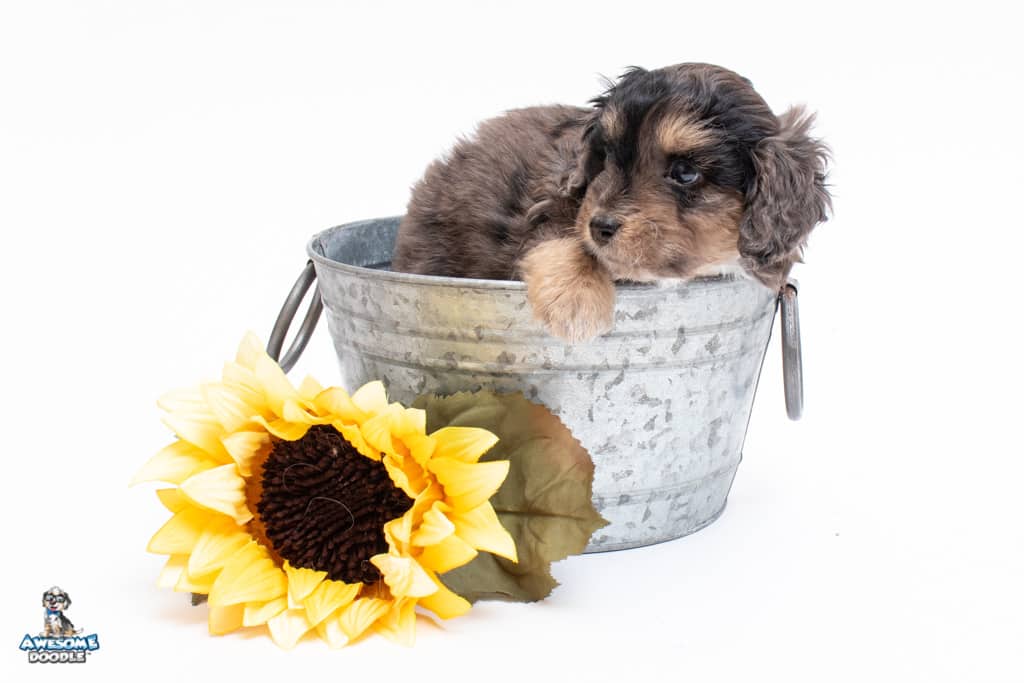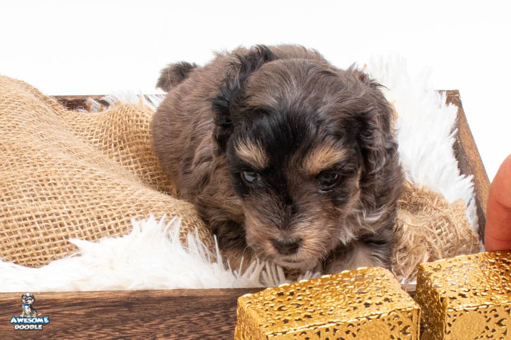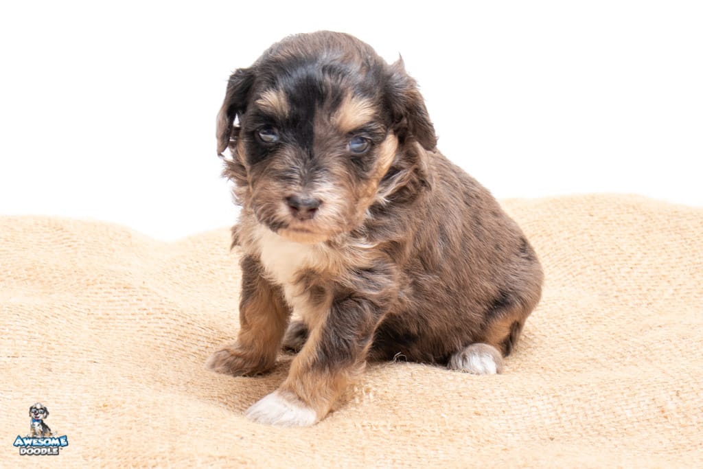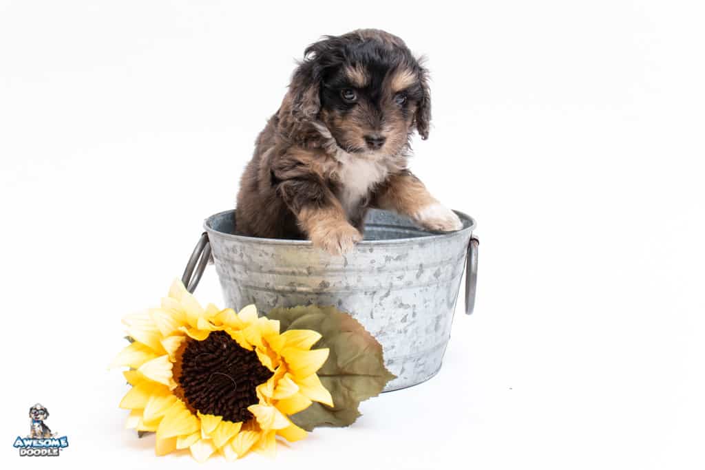 Millie is a female Phantom Blue Merle F1 AussieDoodle puppy.