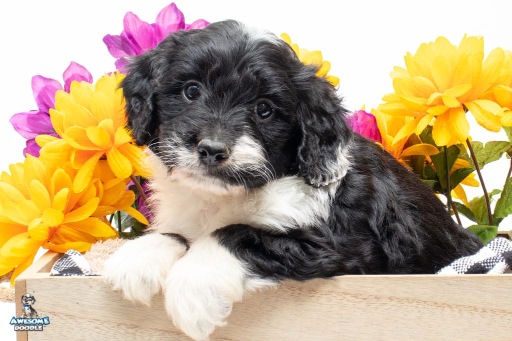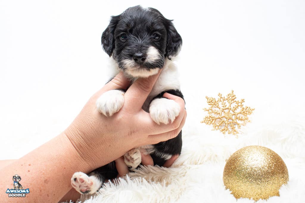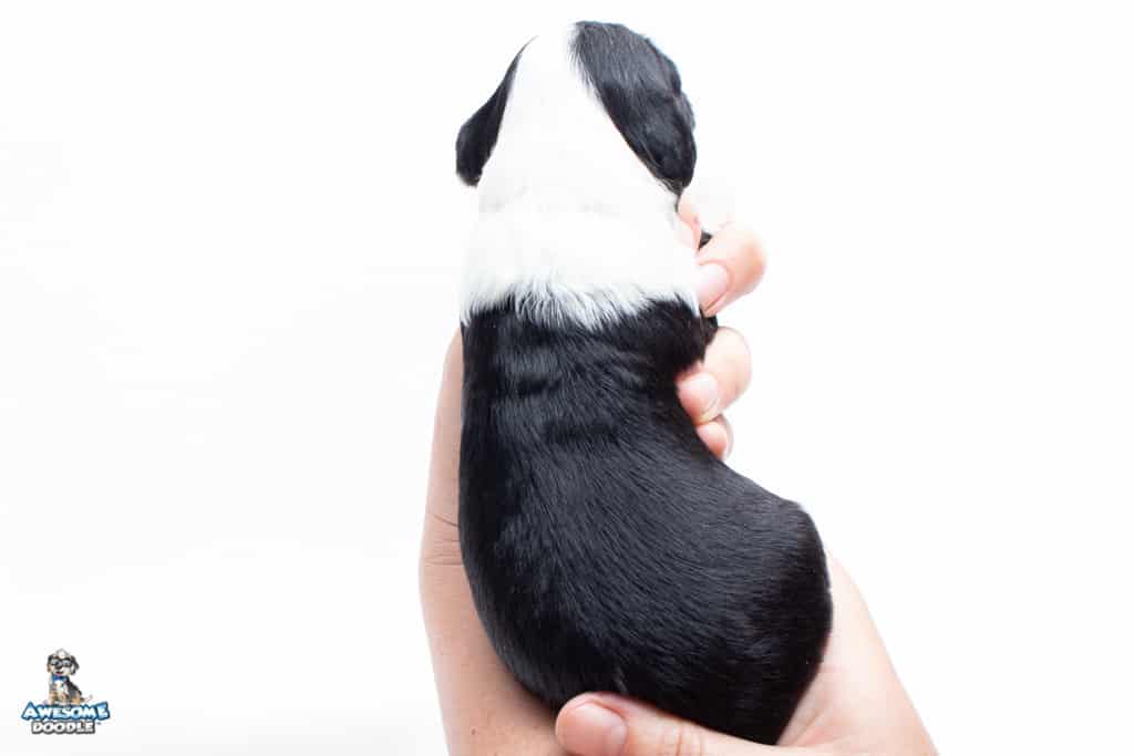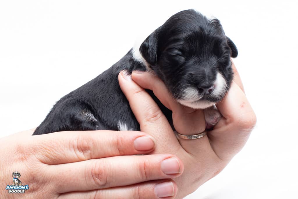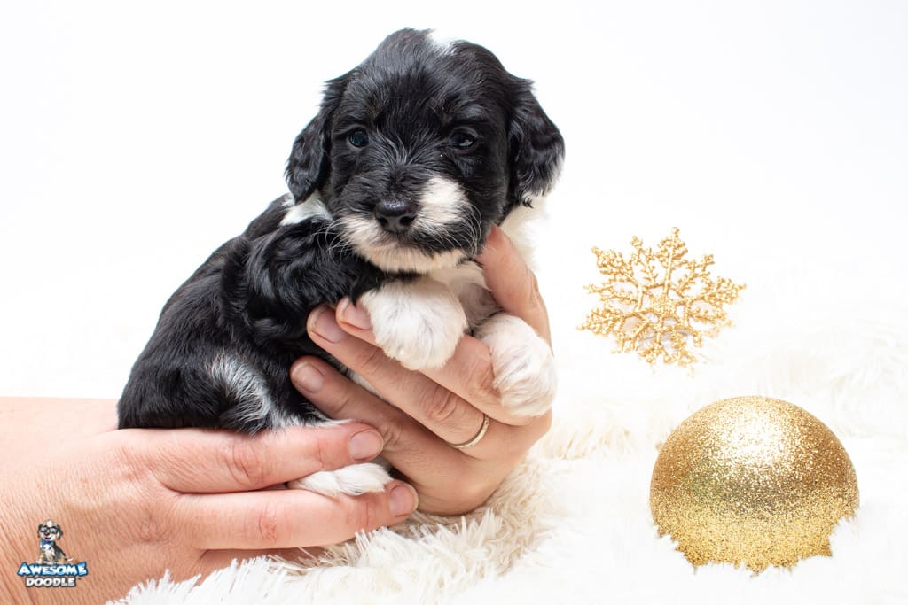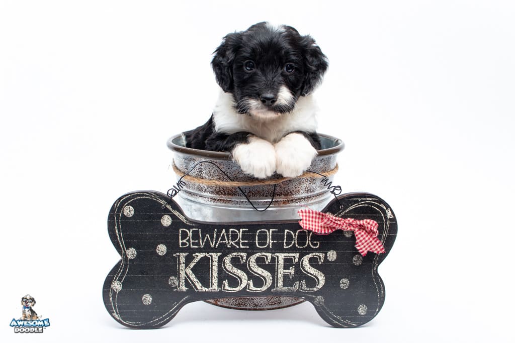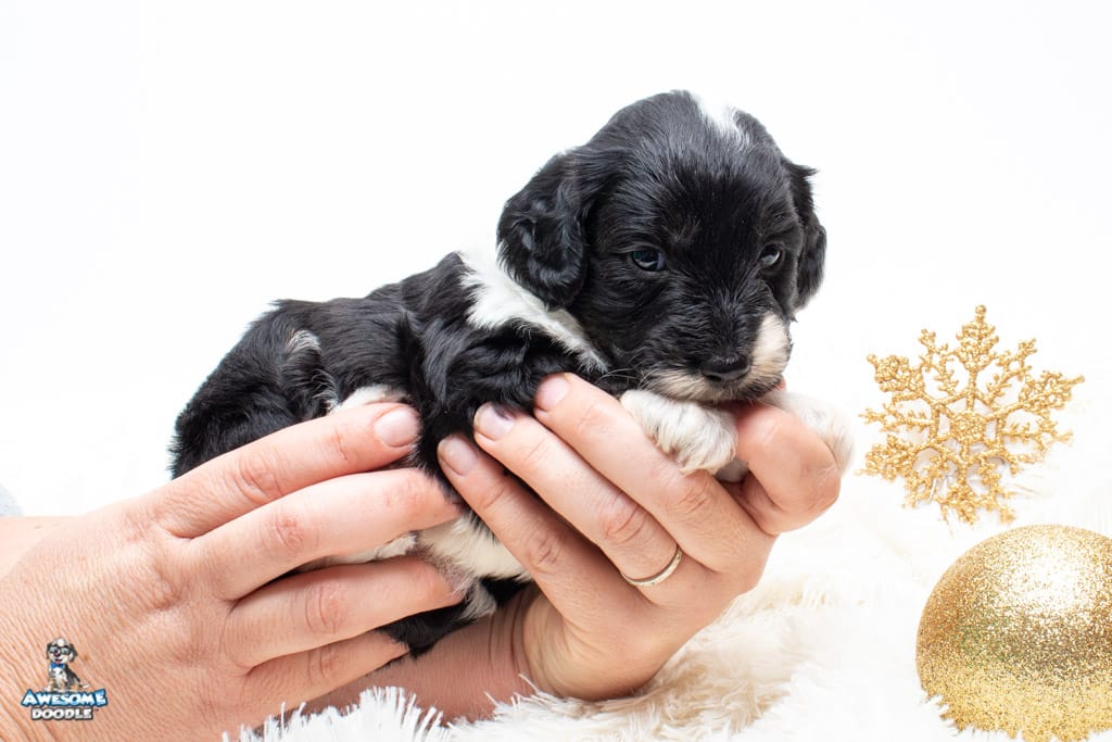 Lela is a female Black Tri-Color F1 AussieDoodle puppy.
