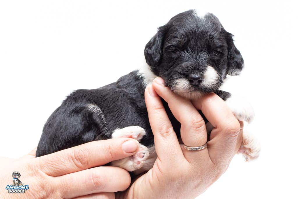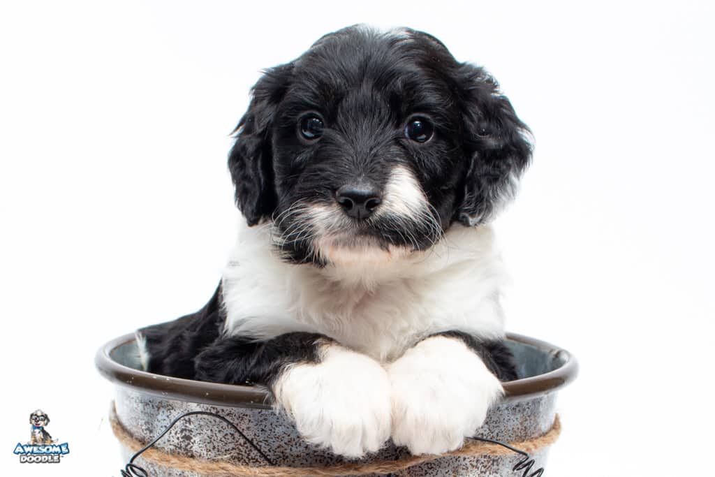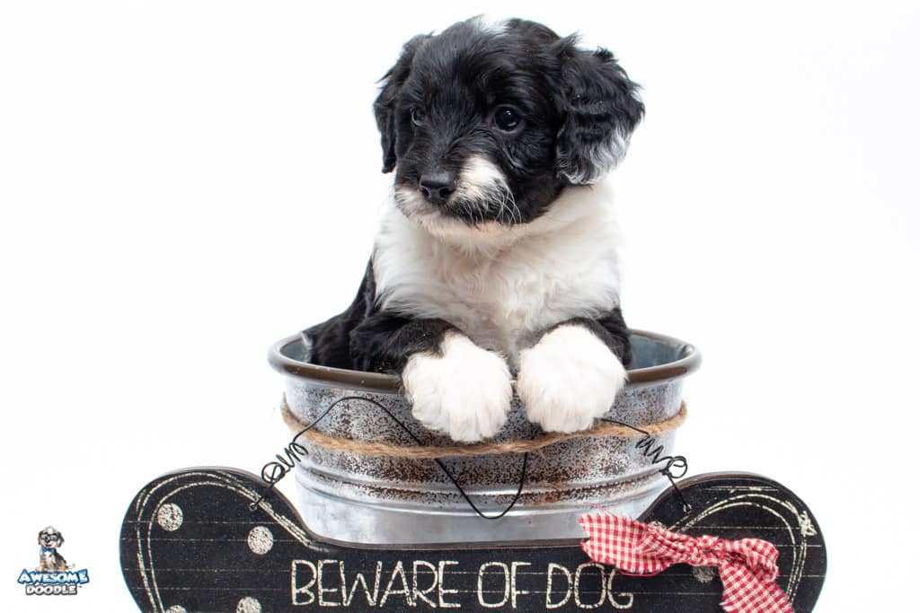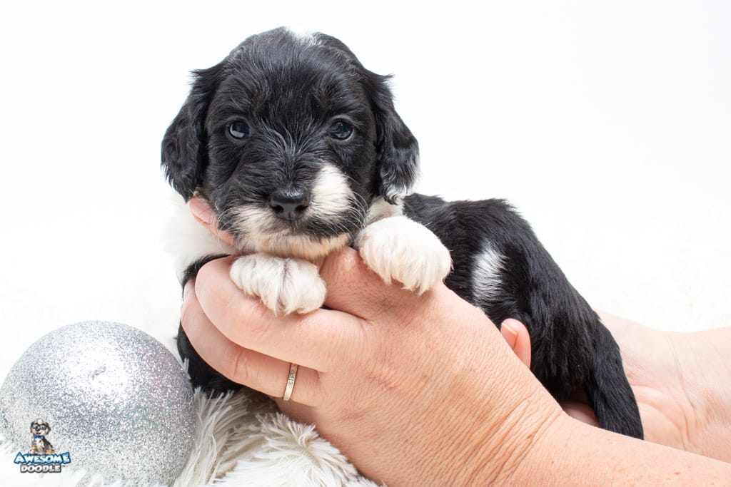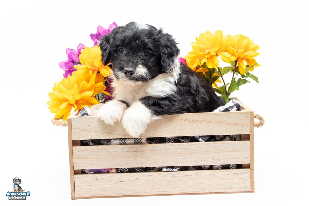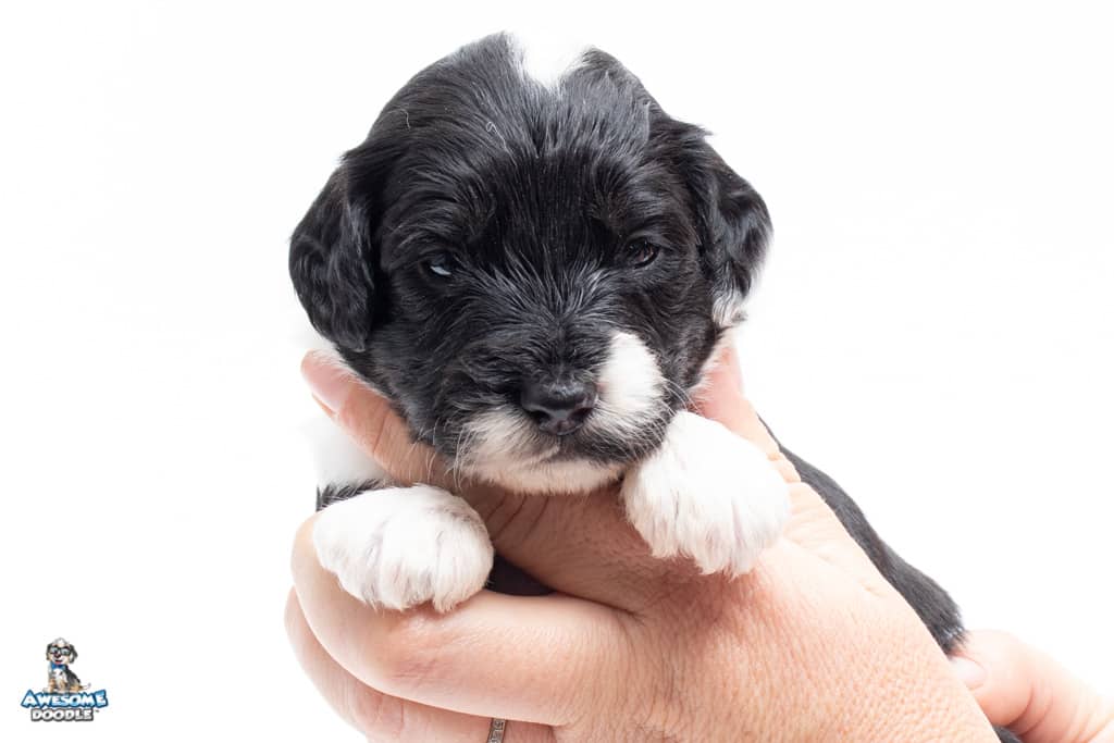 Lela is a female Black Tri-Color F1 AussieDoodle puppy.