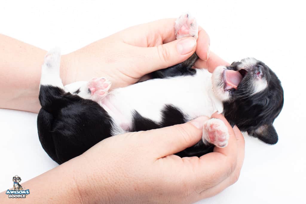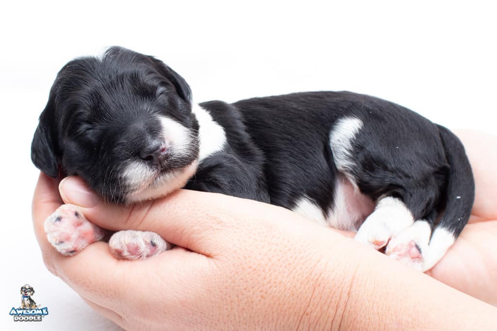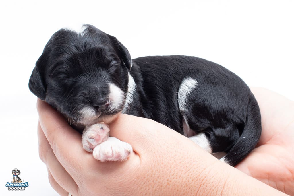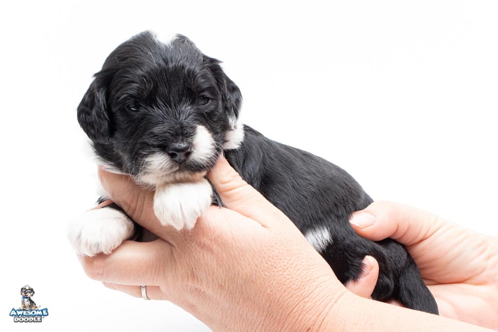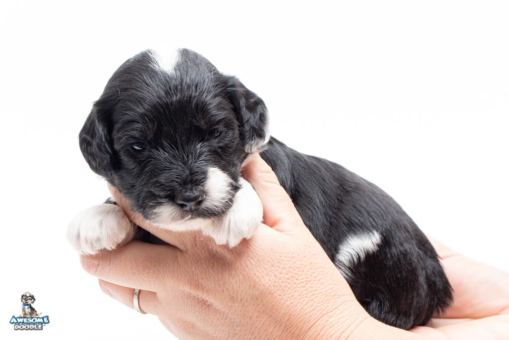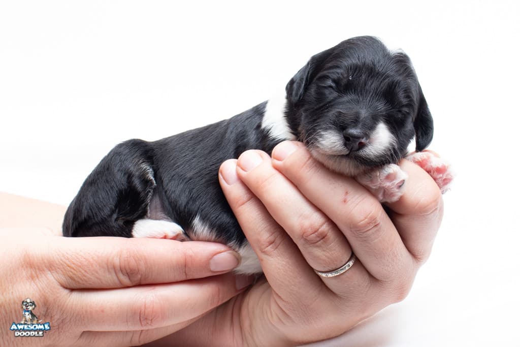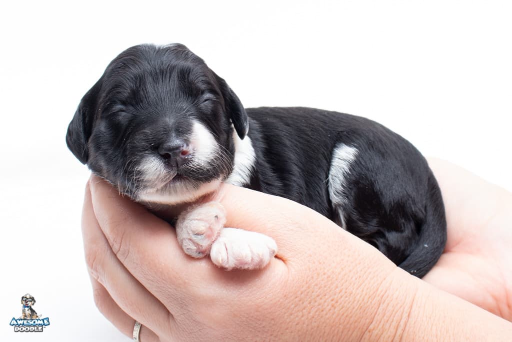 Lela is a female Black Tri-Color F1 AussieDoodle puppy.