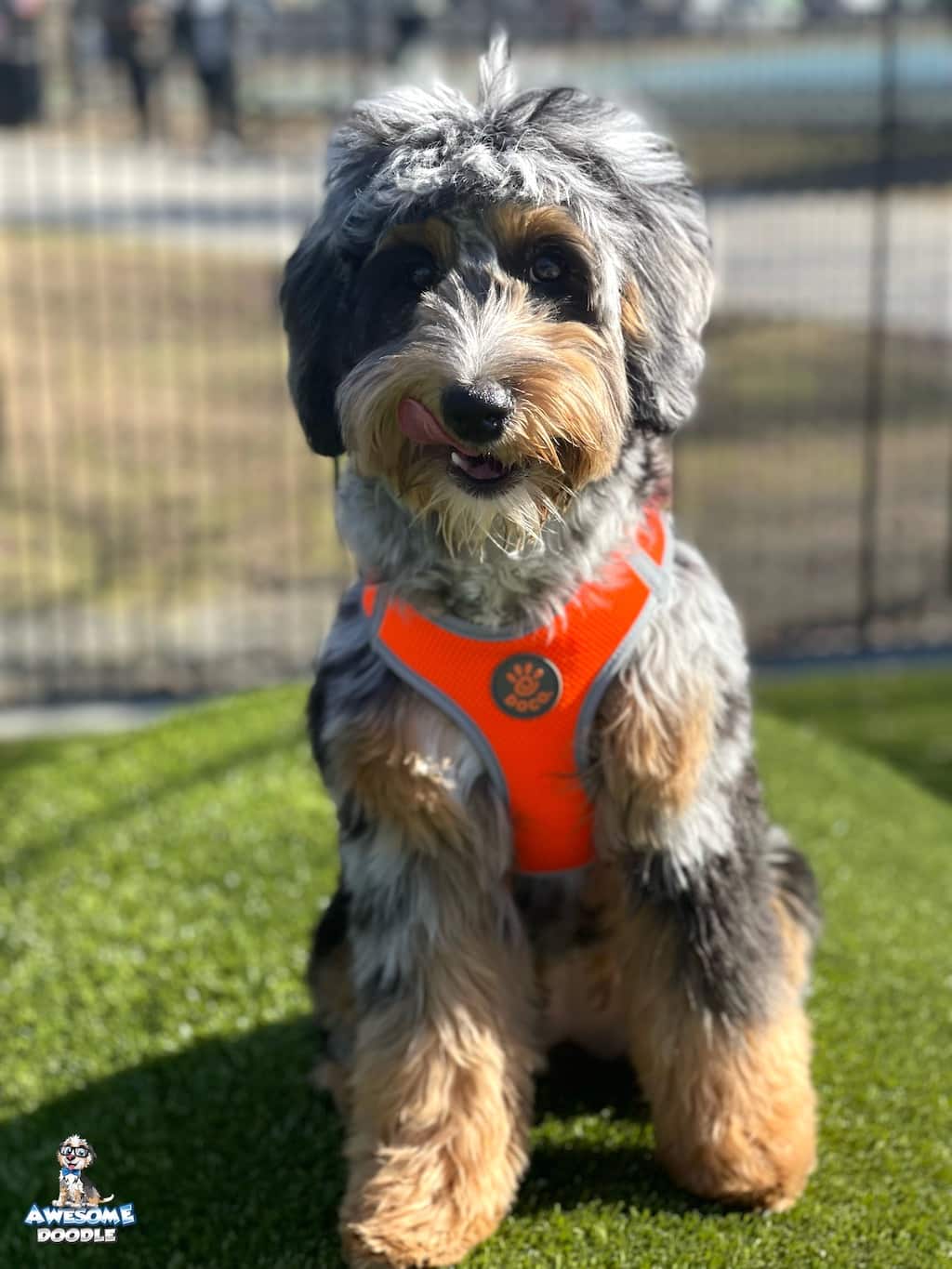 Lana is a female Phantom Blue Merle F1 AussieDoodle puppy.