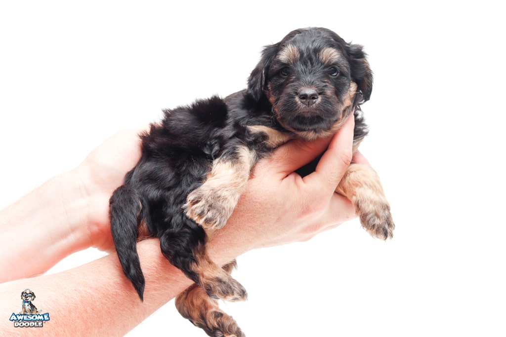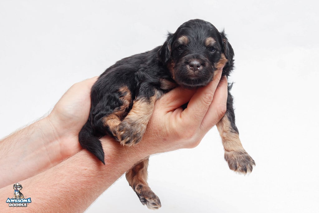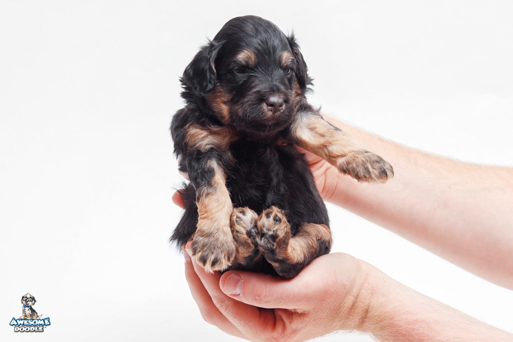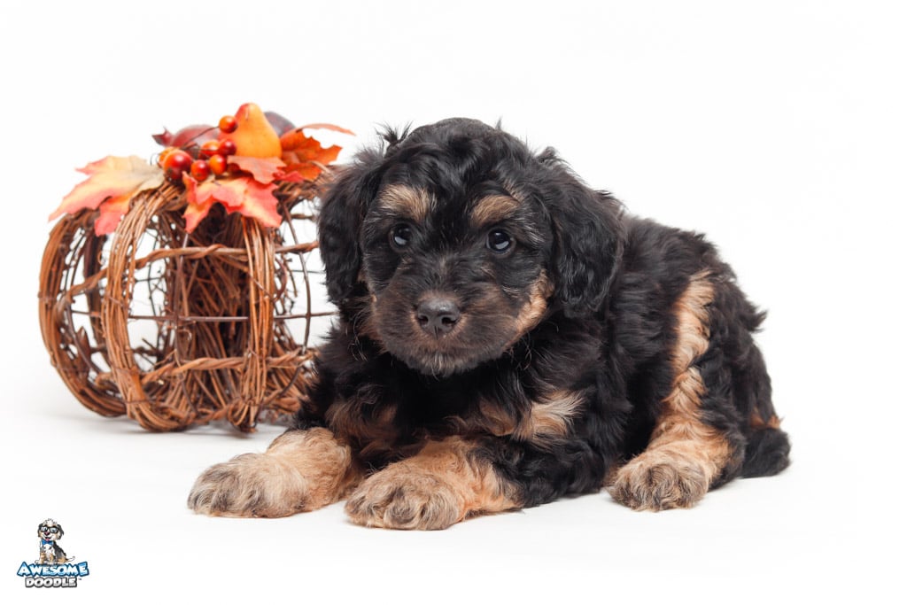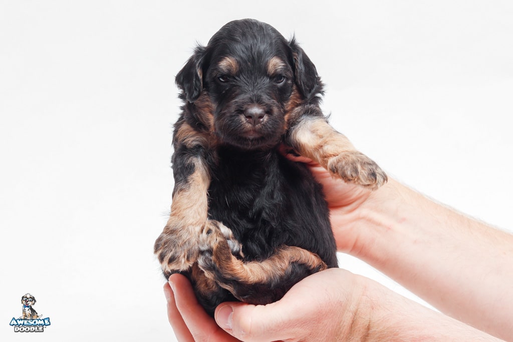 Leo is a male Black Phantom F1 AussieDoodle puppy.