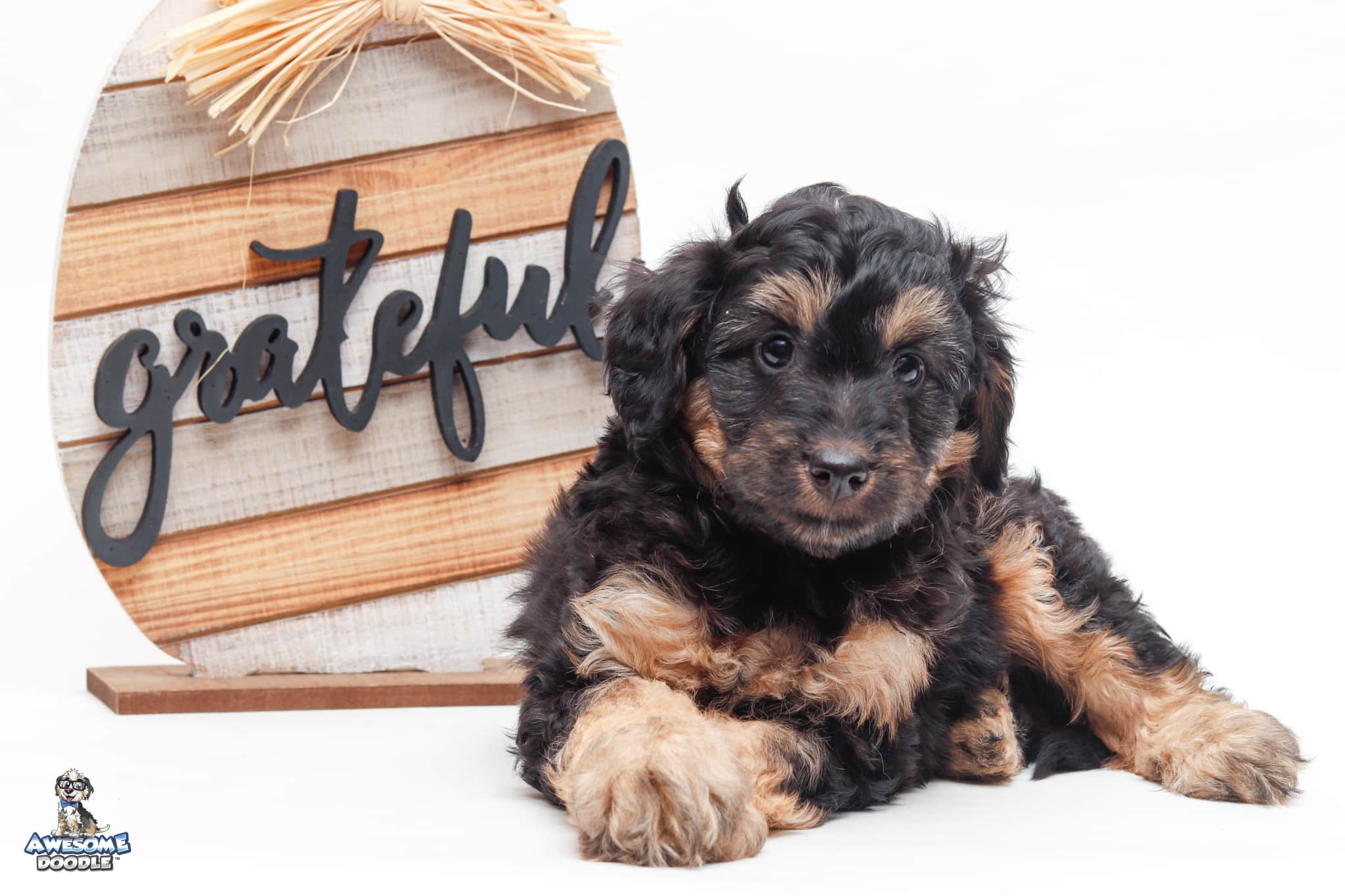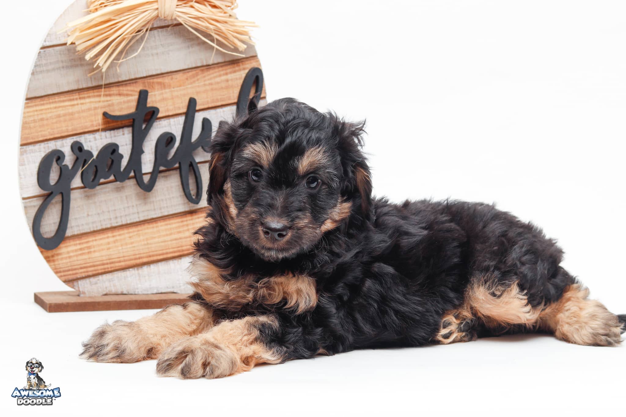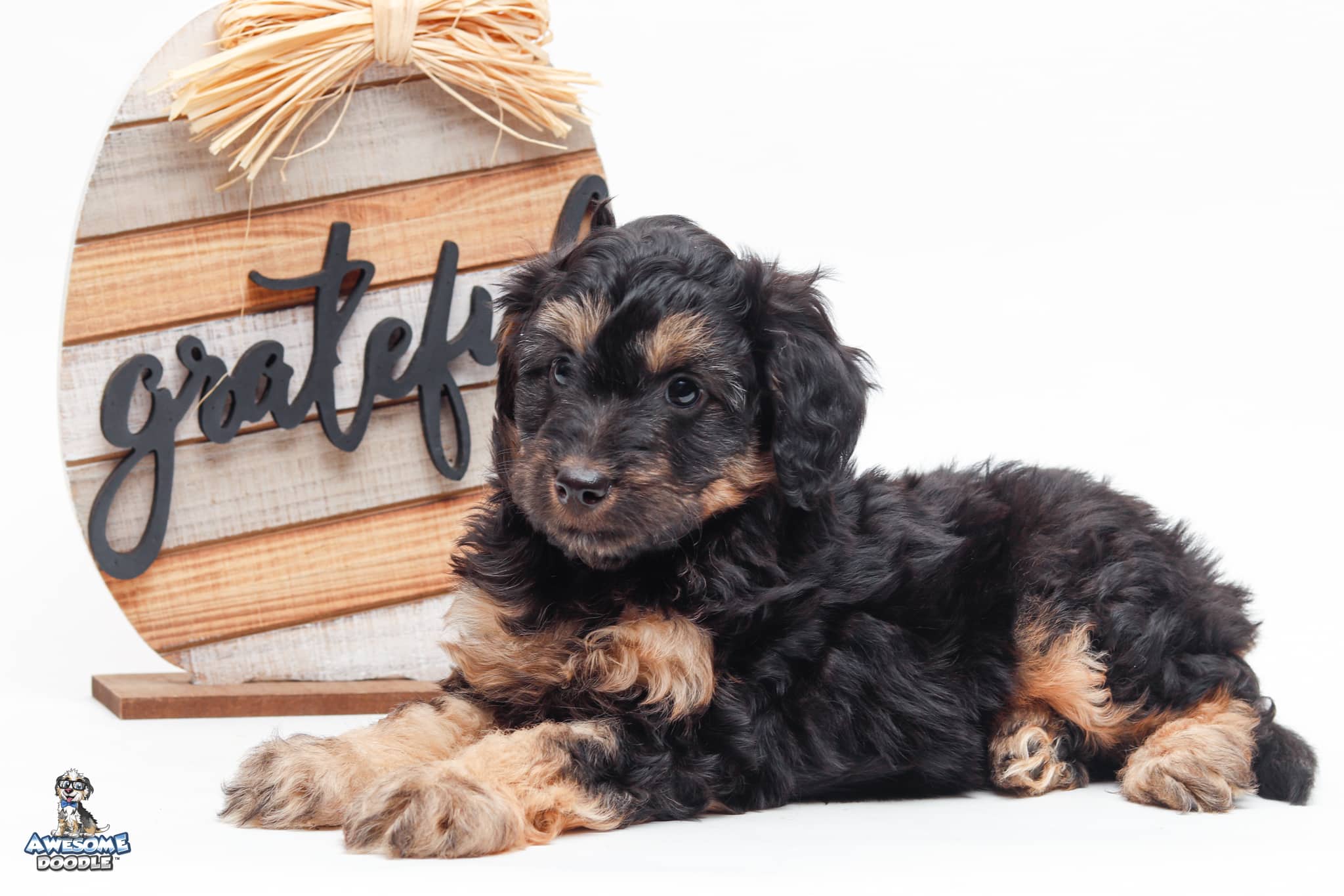 Leo is a male Black Phantom F1 AussieDoodle puppy.
