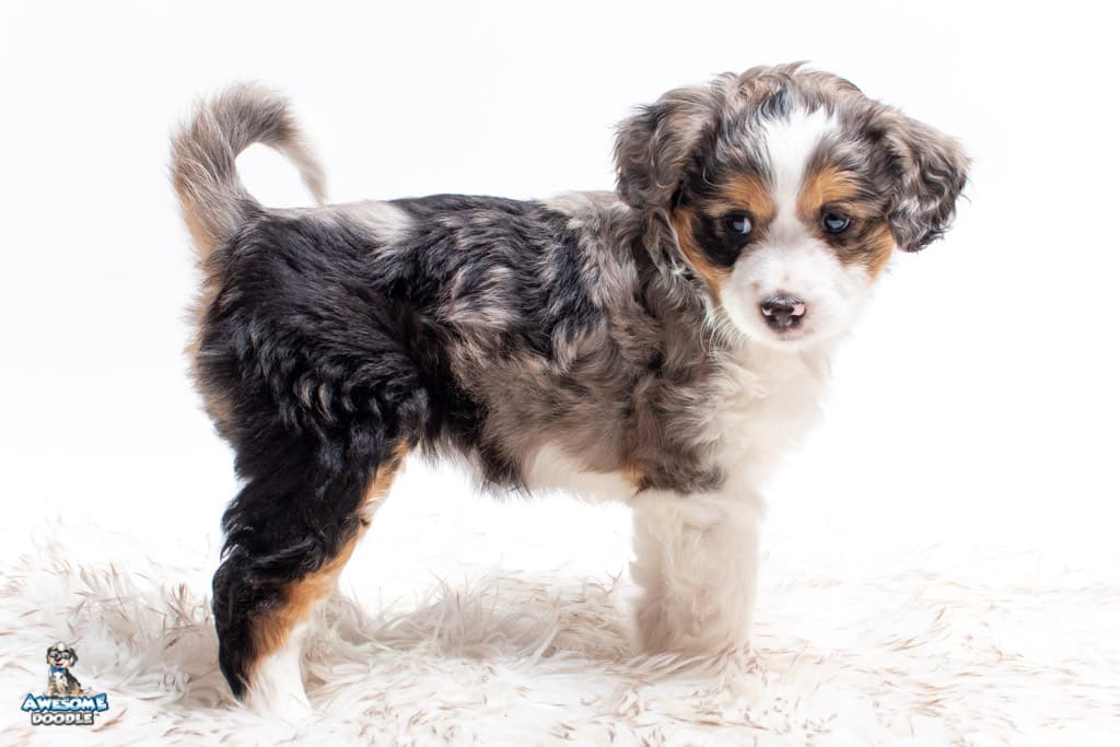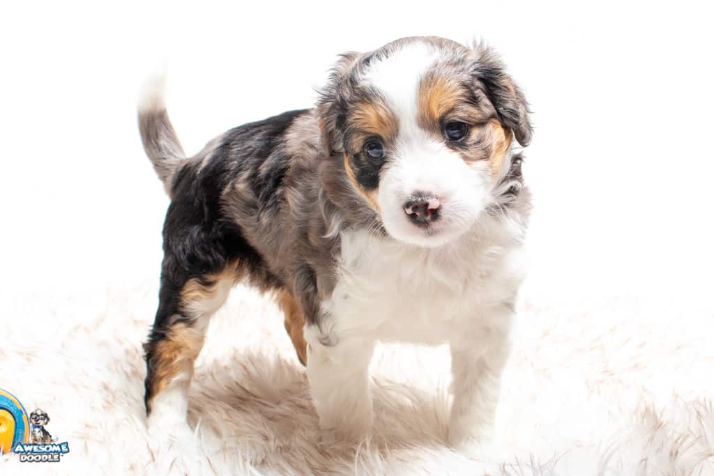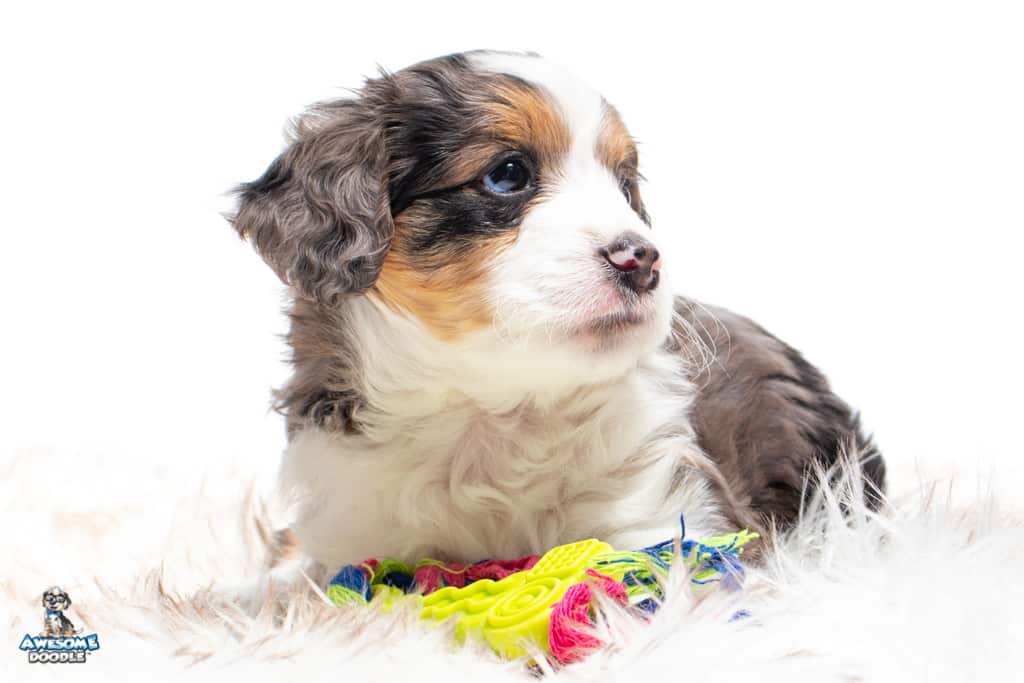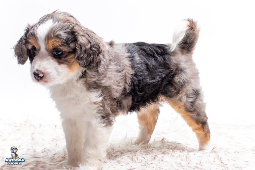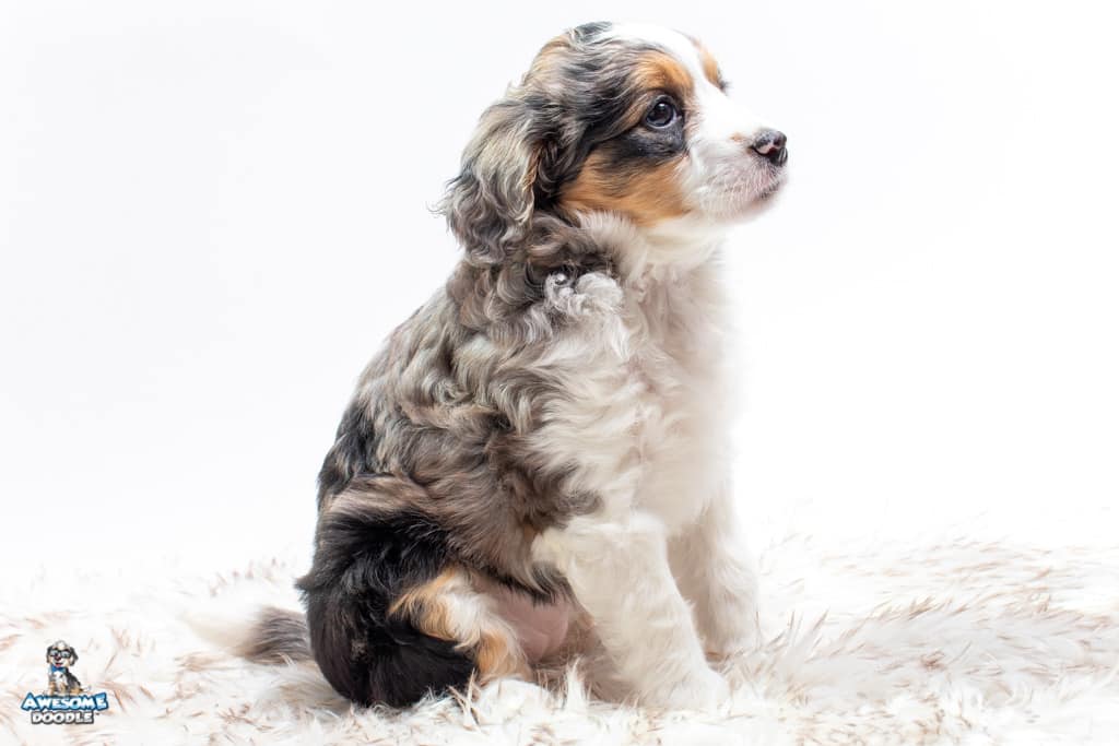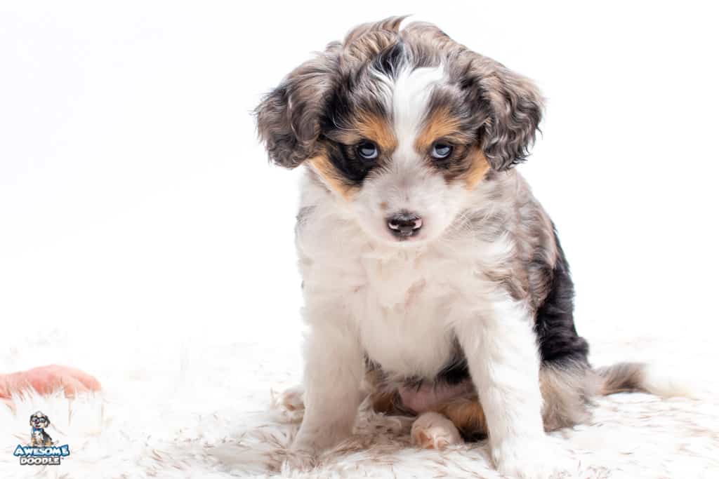Candice is a female Blue Merle w/ White & Copper F1 AussieDoodle puppy.