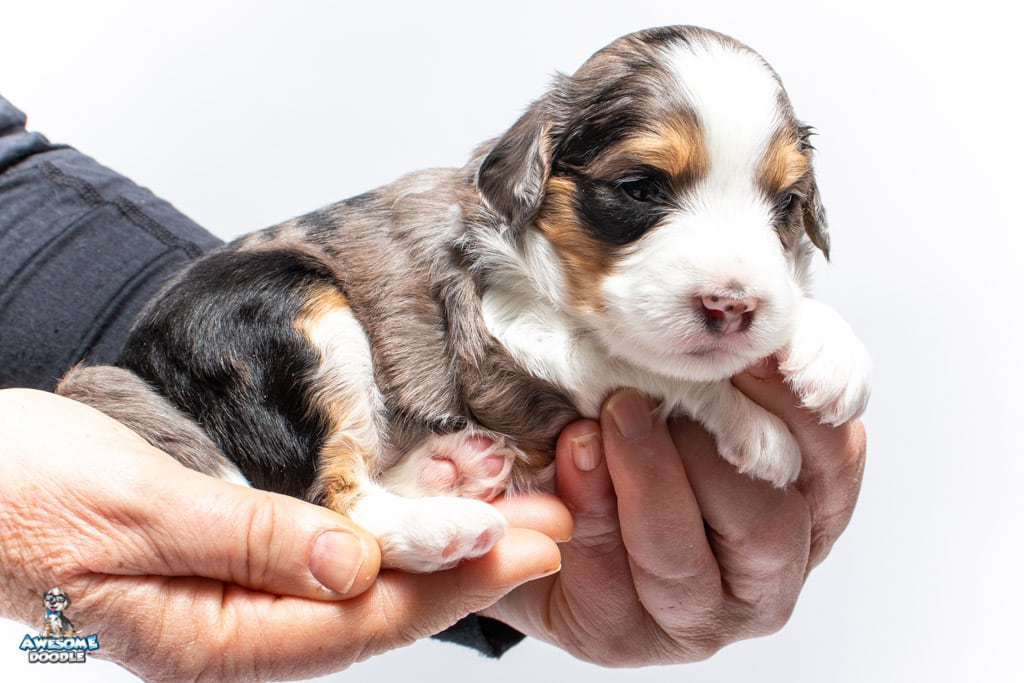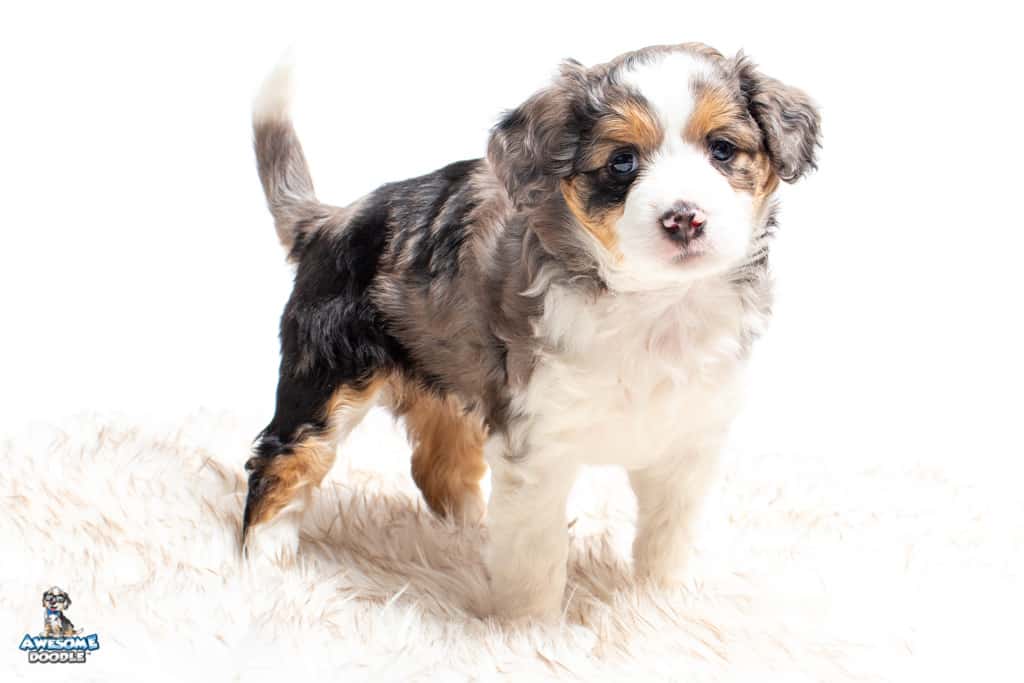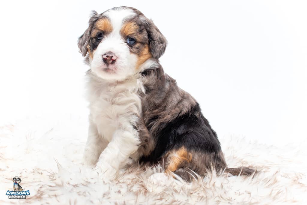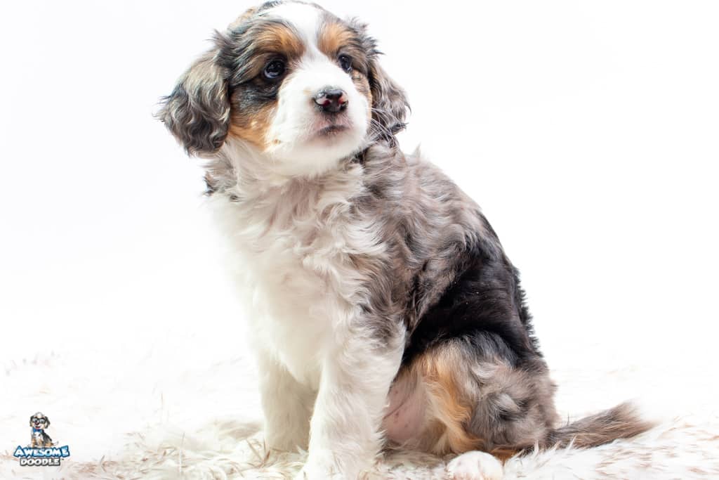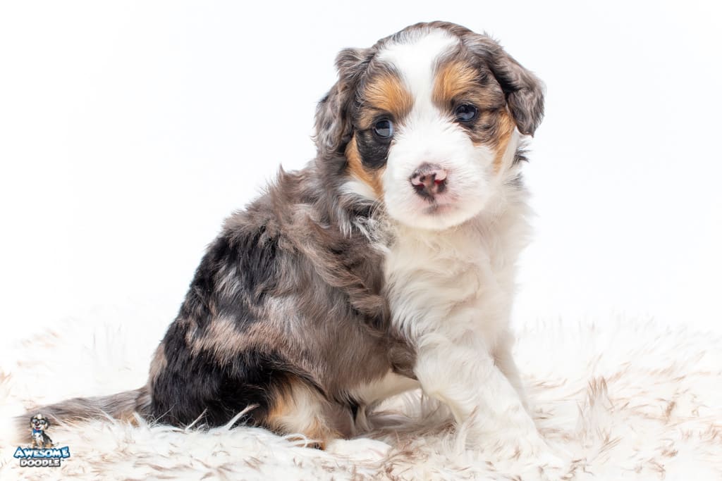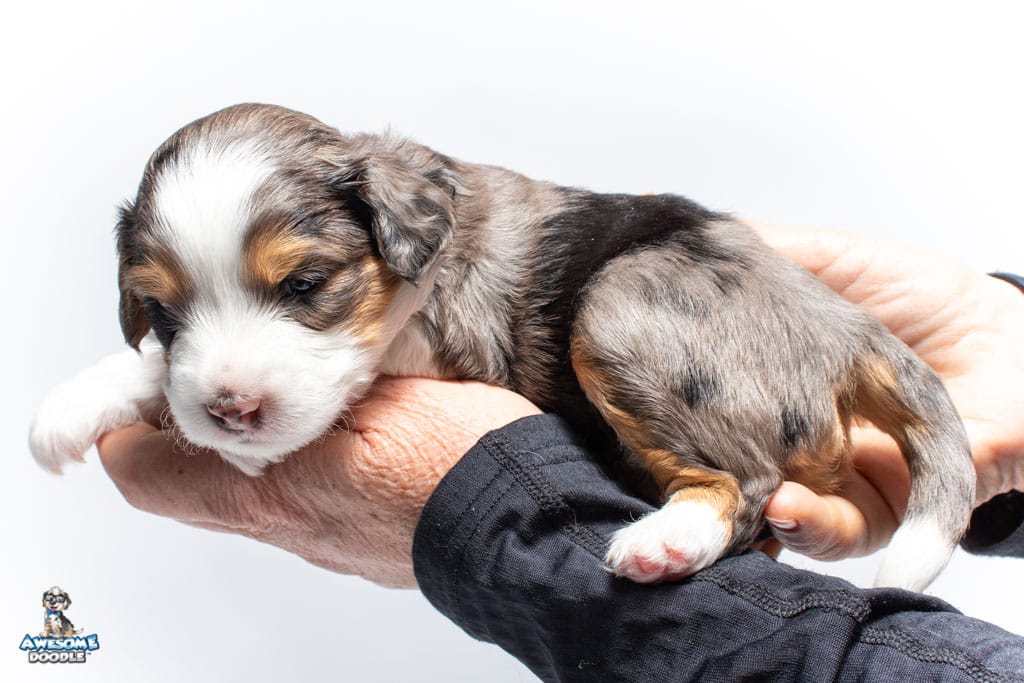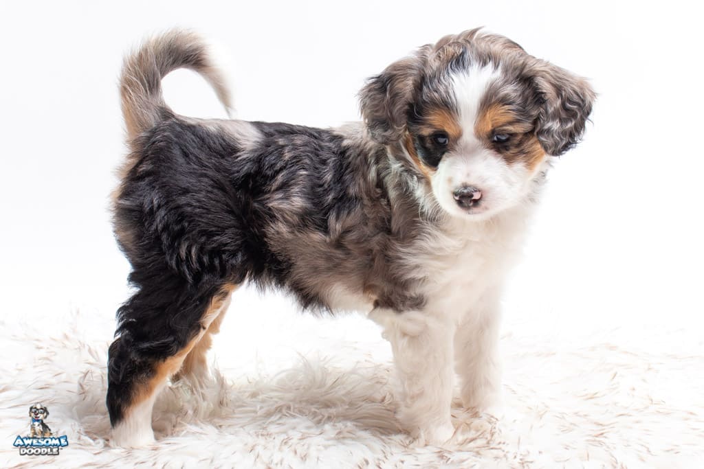 Candice is a female Blue Merle w/ White & Copper F1 AussieDoodle puppy.