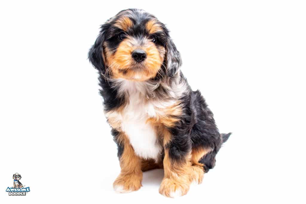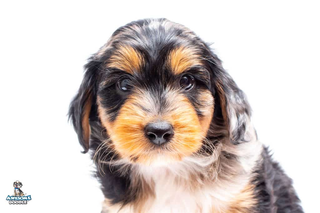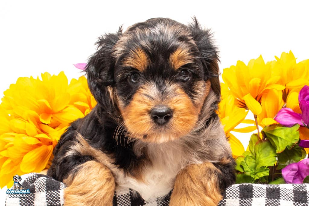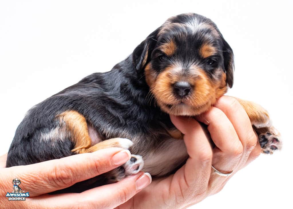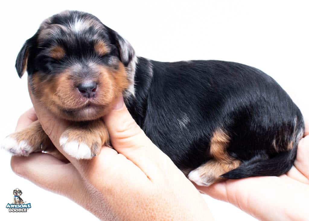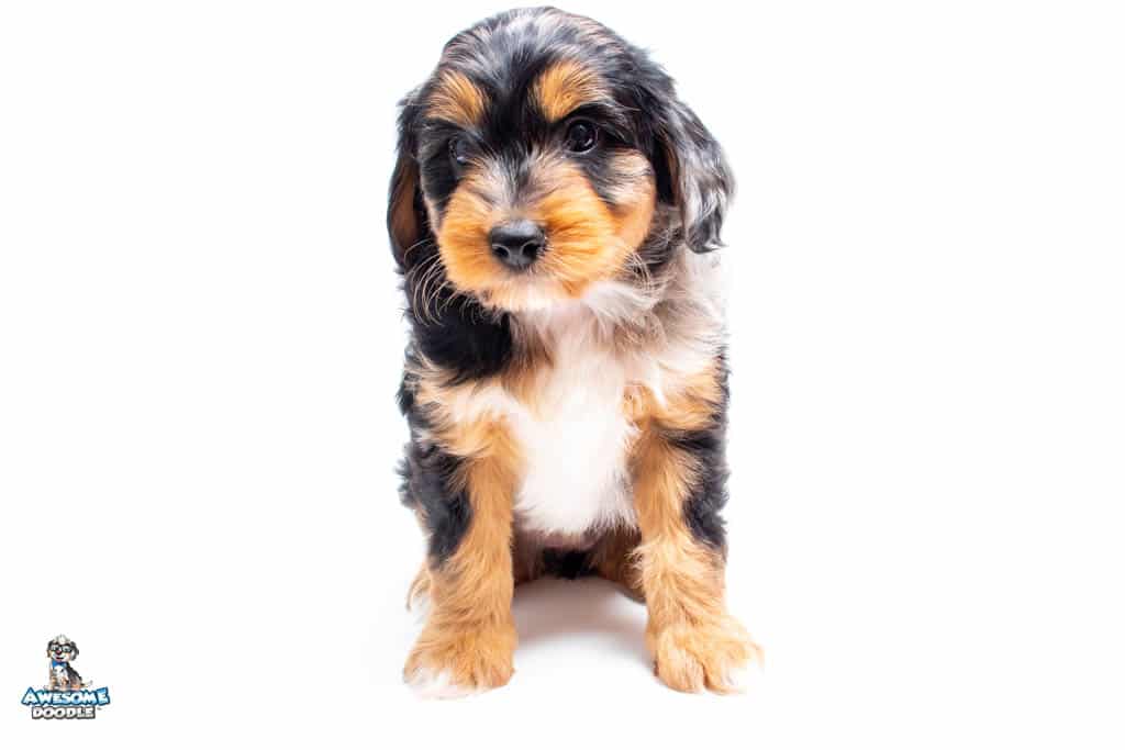 Loretta is a female Phantom Blue Merle F1 AussieDoodle puppy.