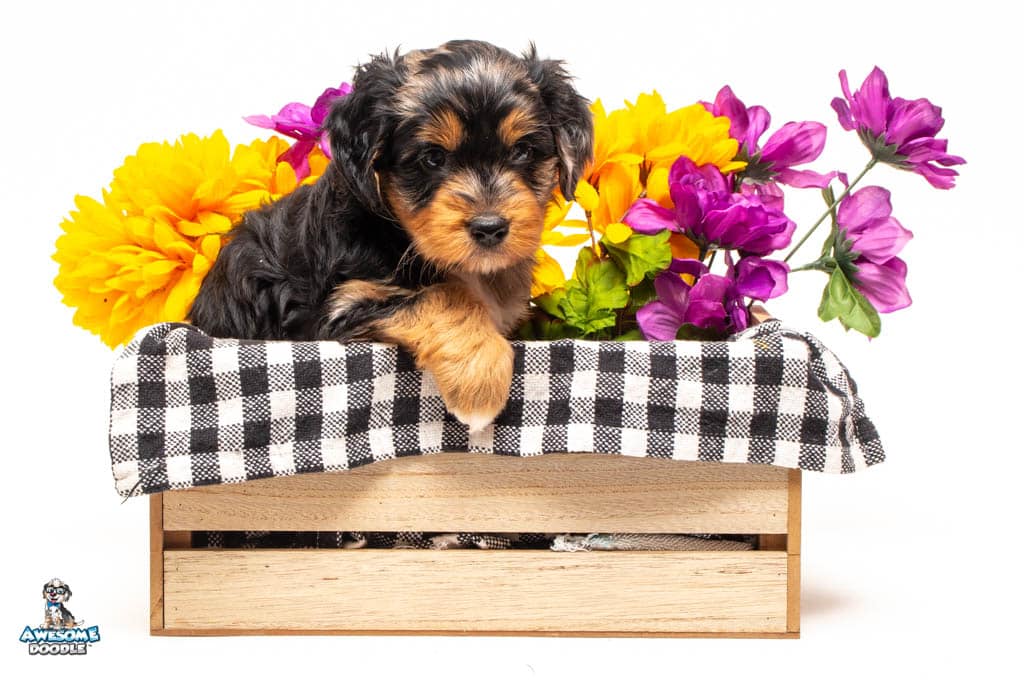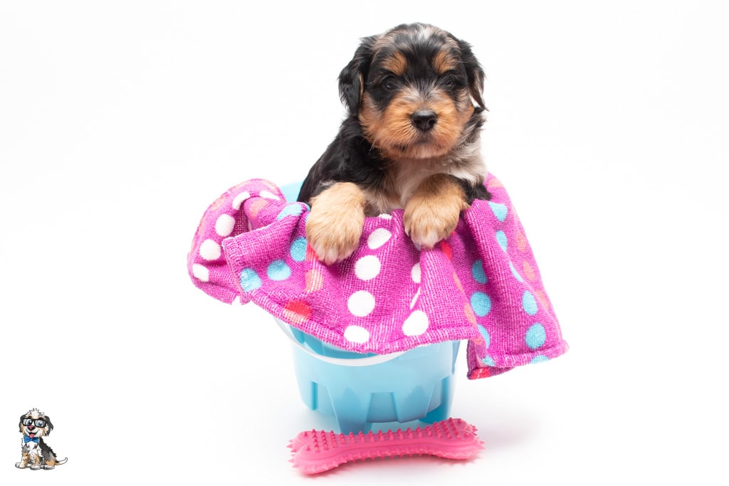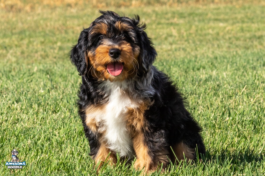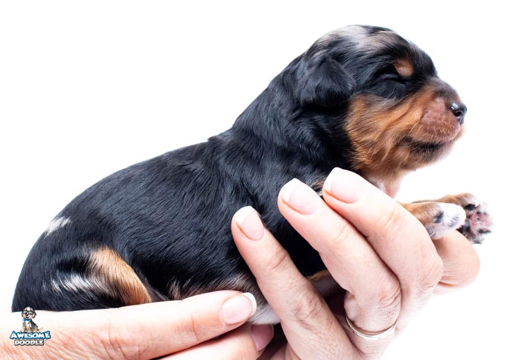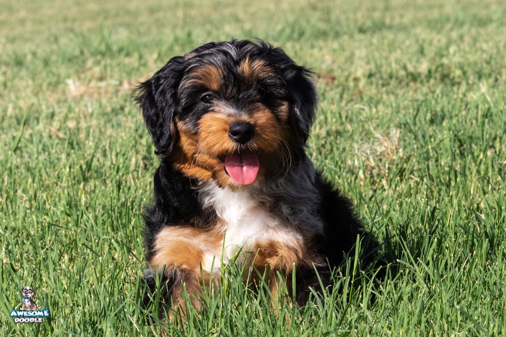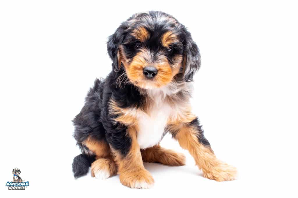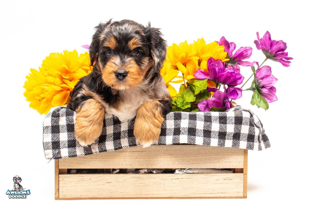 Loretta is a female Phantom Blue Merle F1 AussieDoodle puppy.