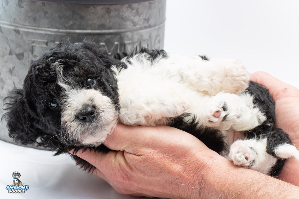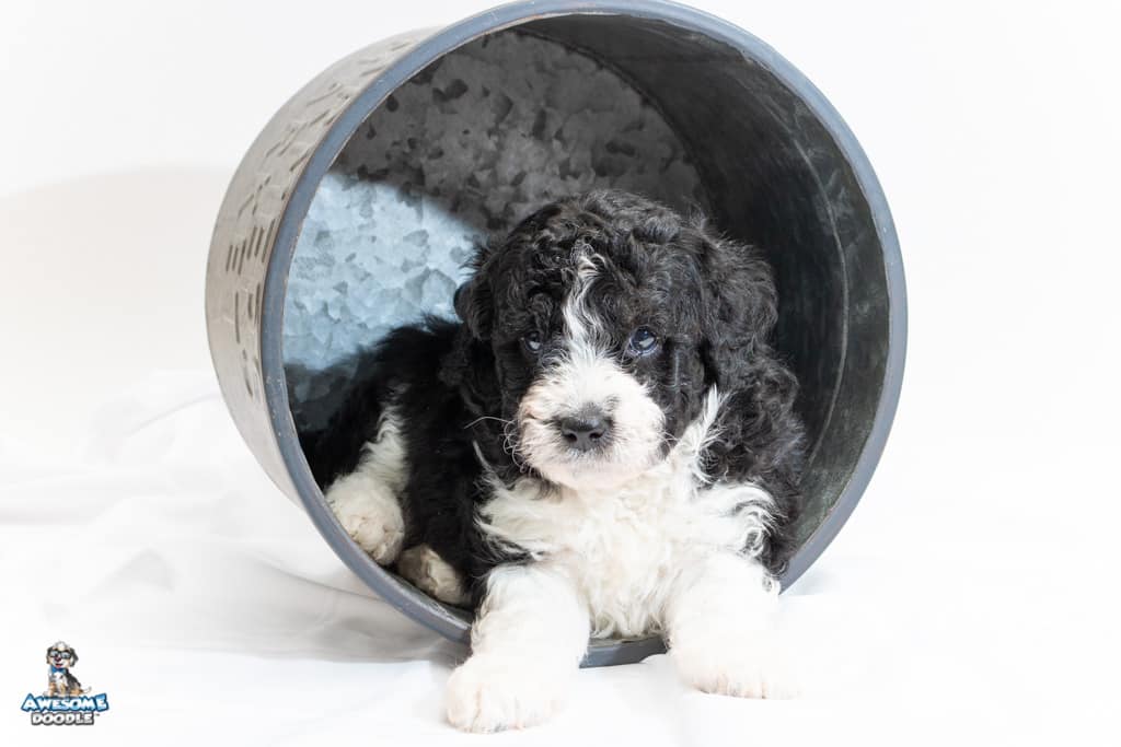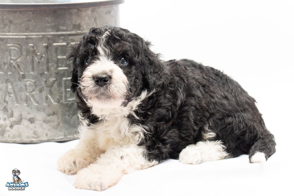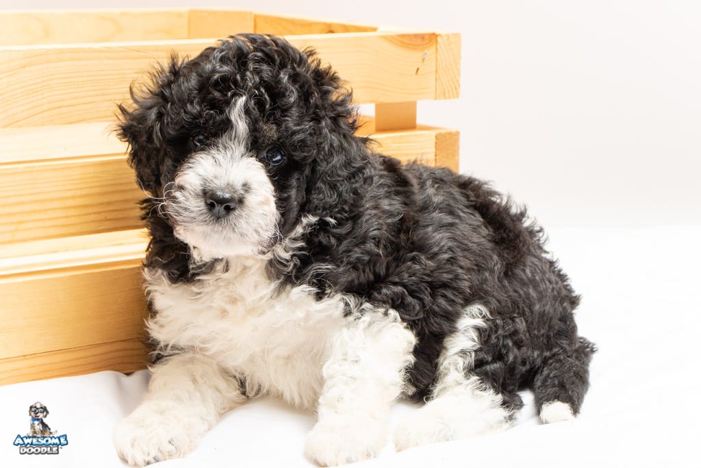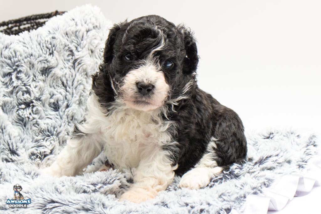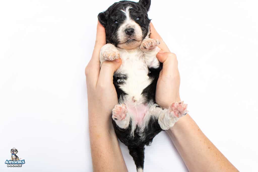 Marlow is a female Black Bi-Color F1b AussieDoodle puppy.
