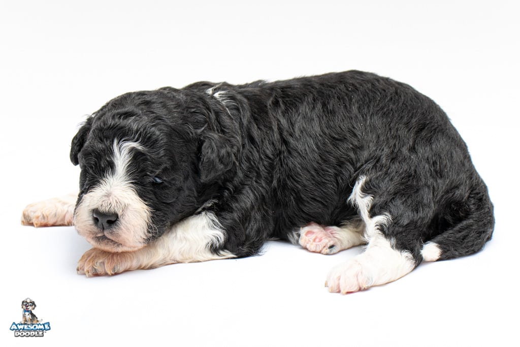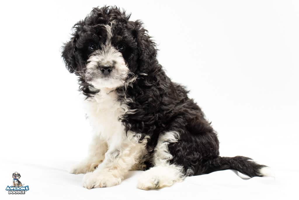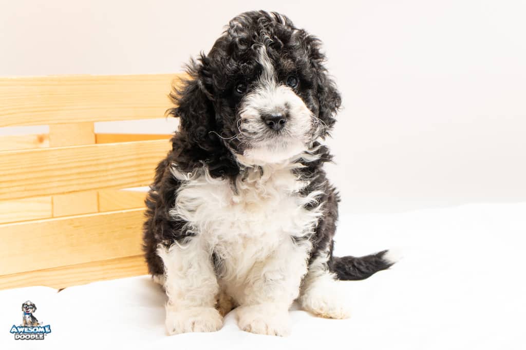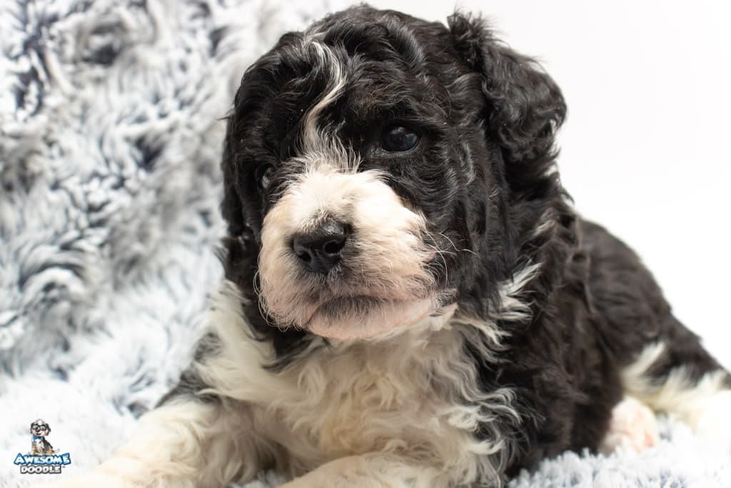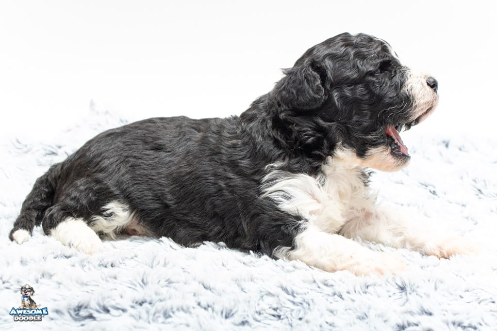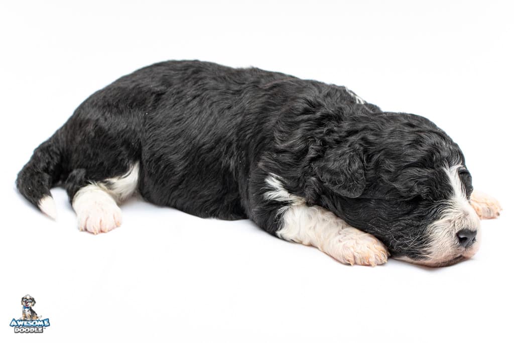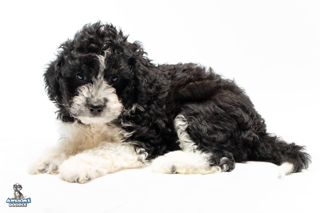 Marlow is a female Black Bi-Color F1b AussieDoodle puppy.