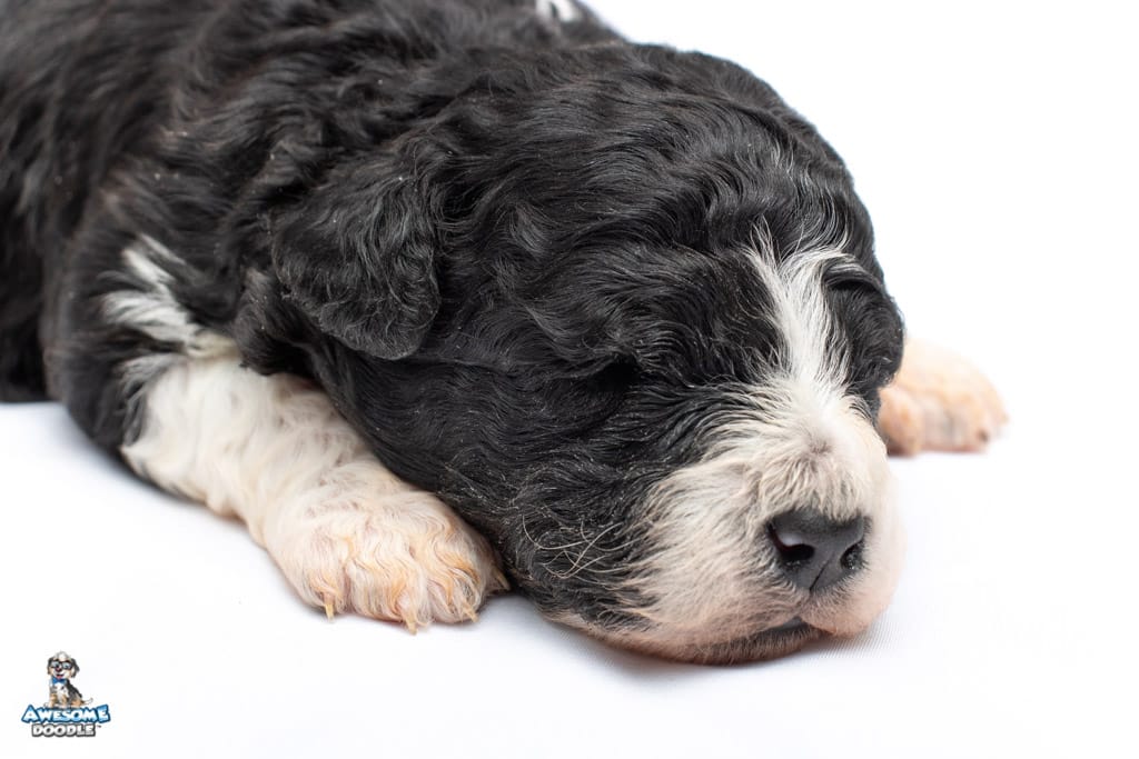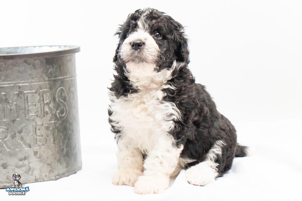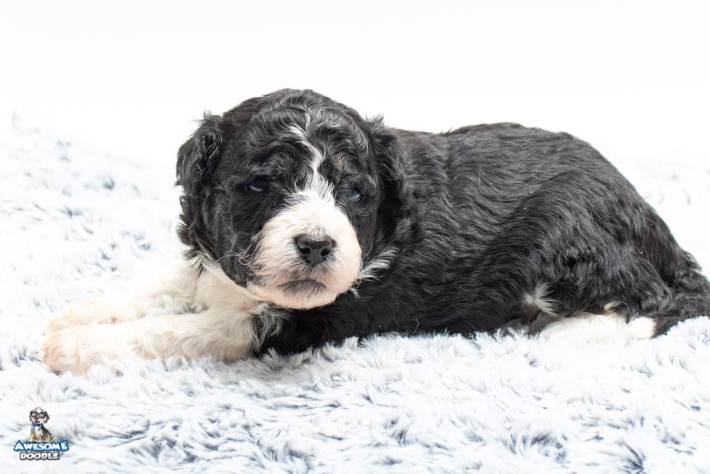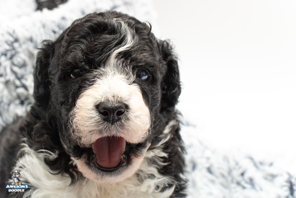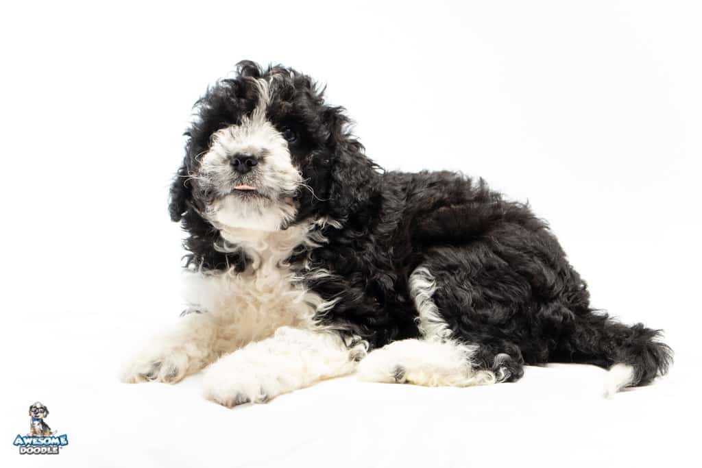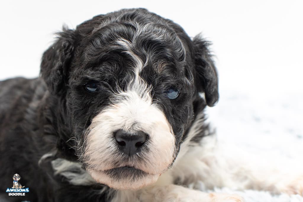 Marlow is a female Black Bi-Color F1b AussieDoodle puppy.