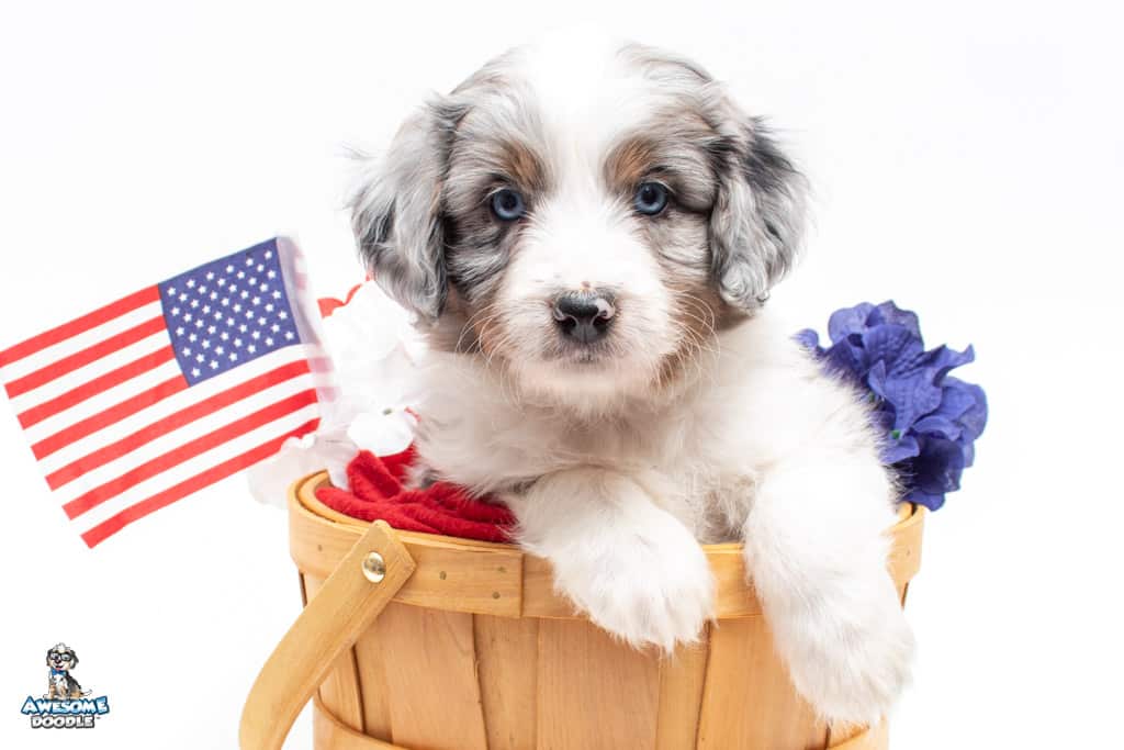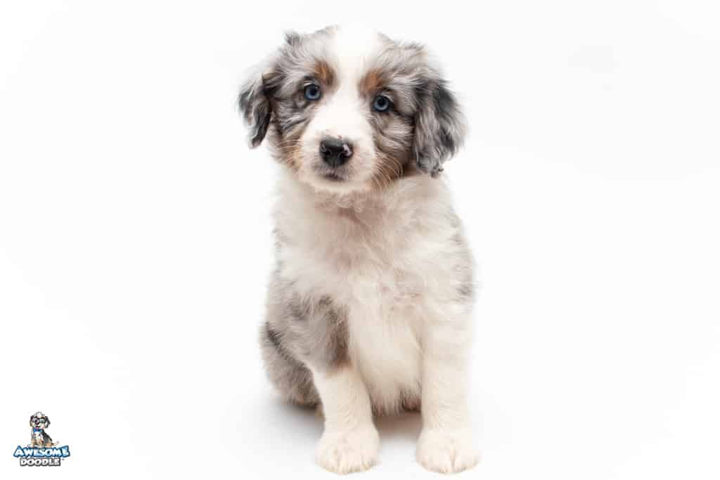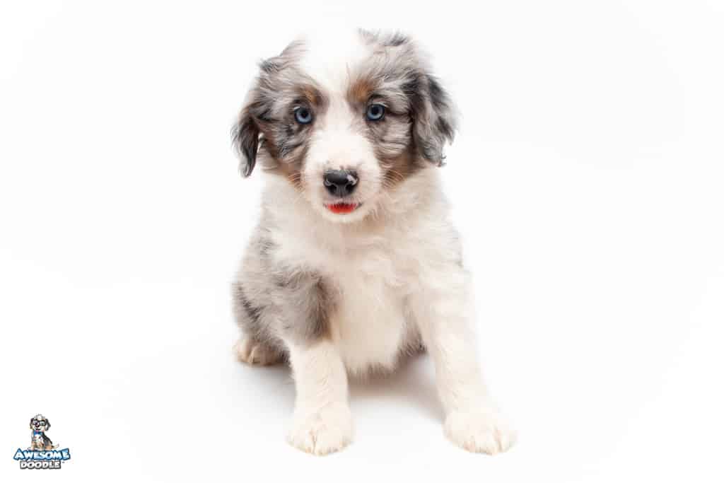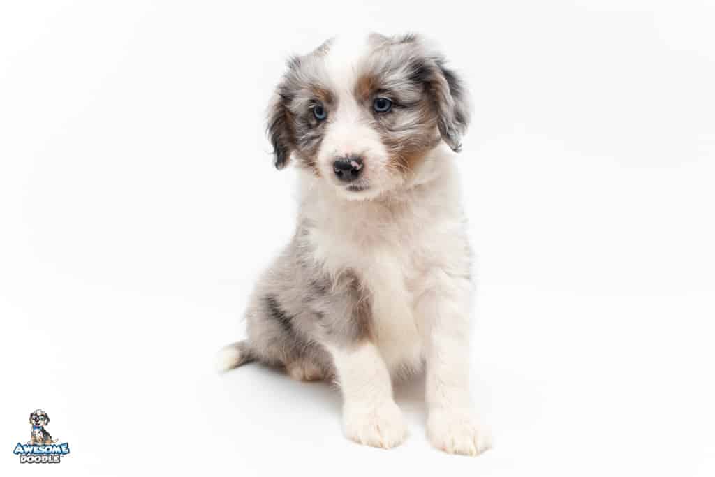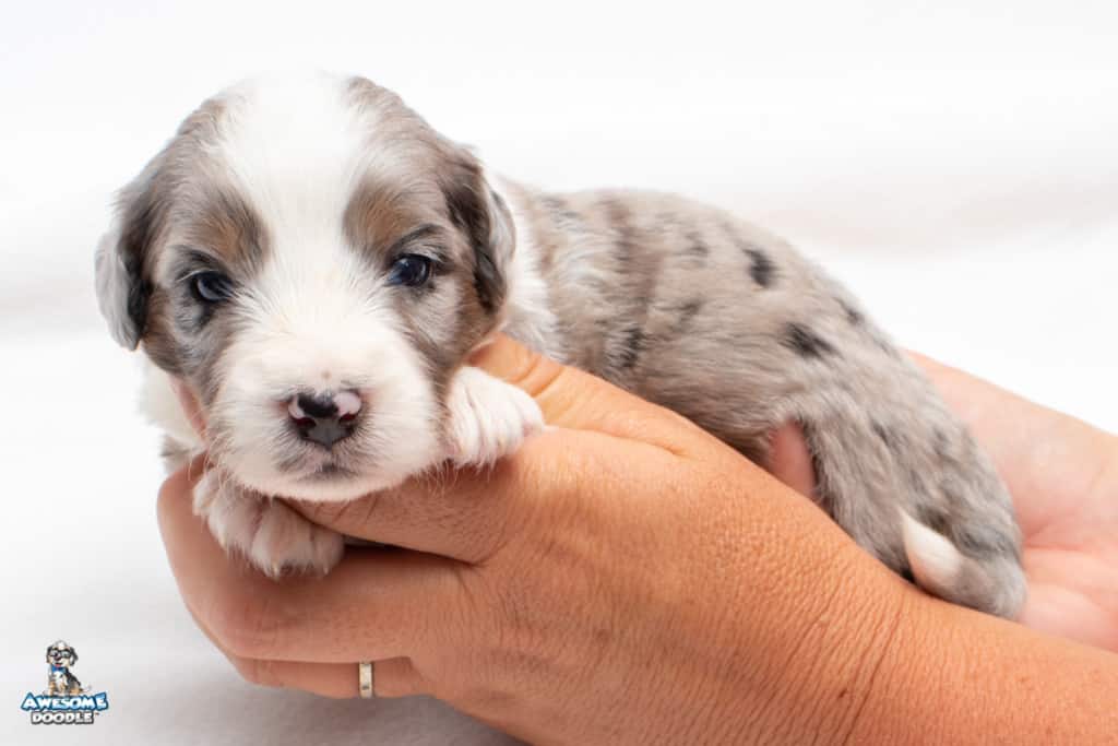Luca is a male Blue Merle w/ White & Copper F1 AussieDoodle puppy.