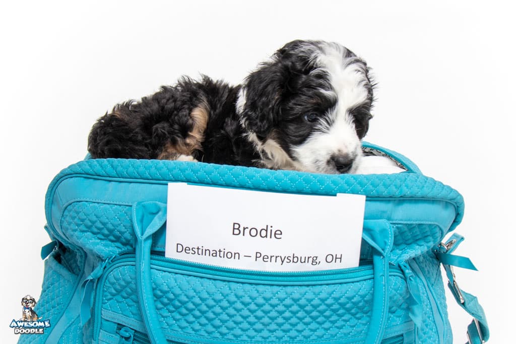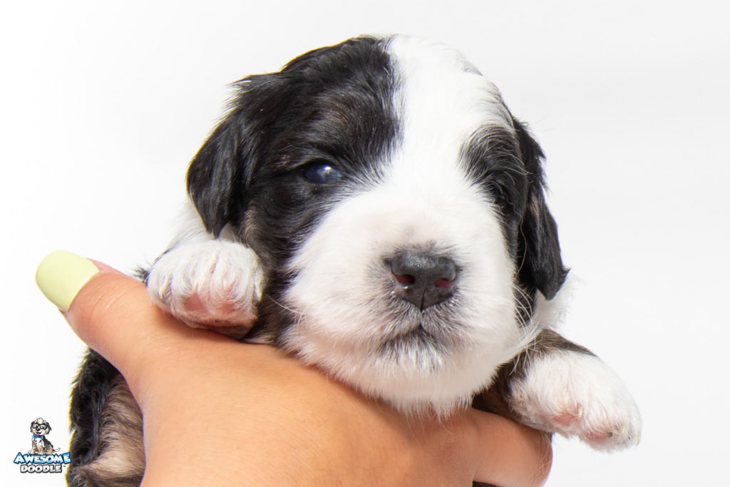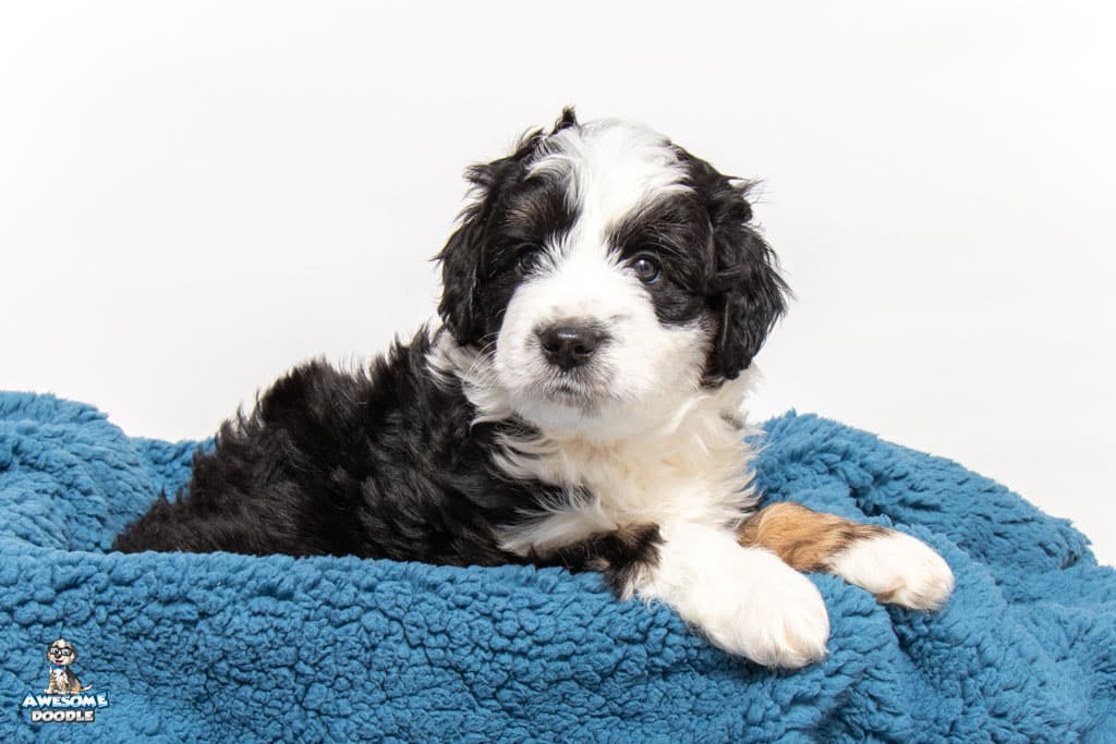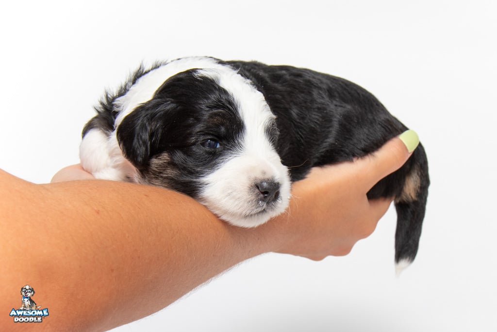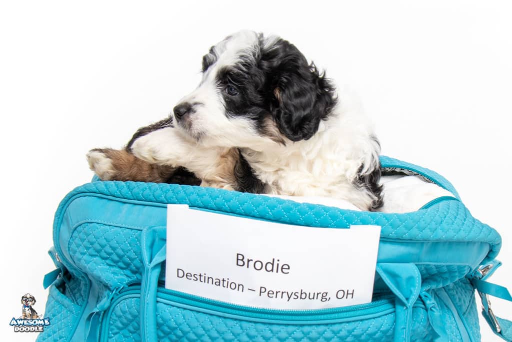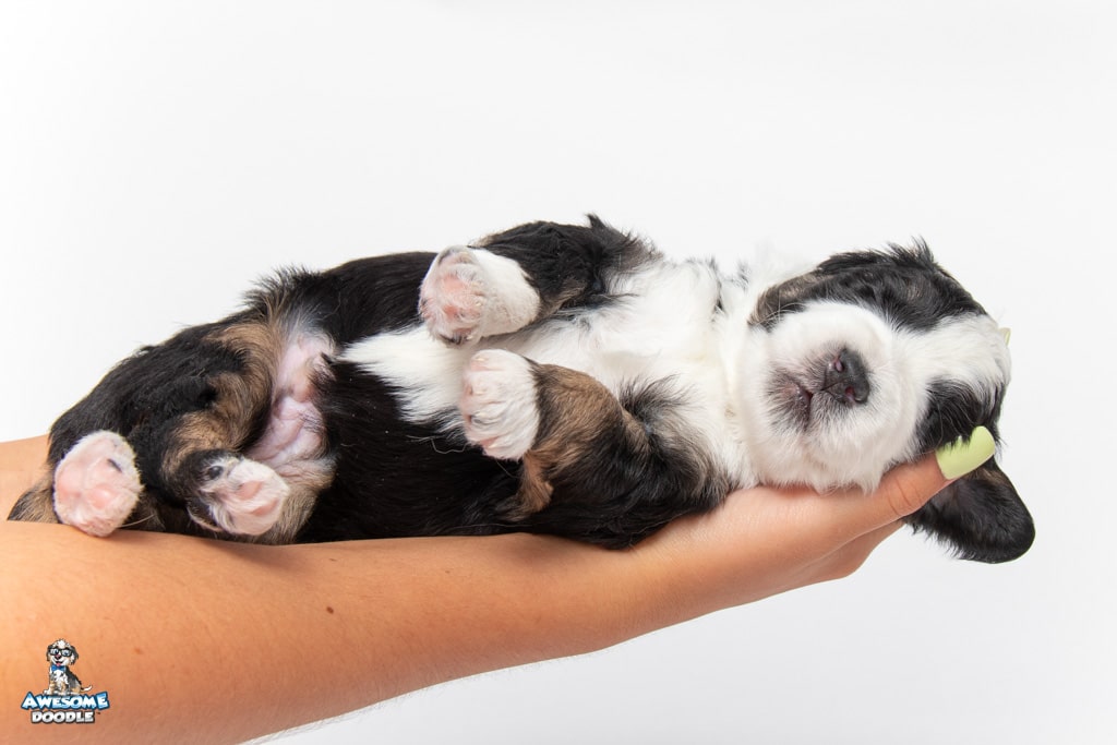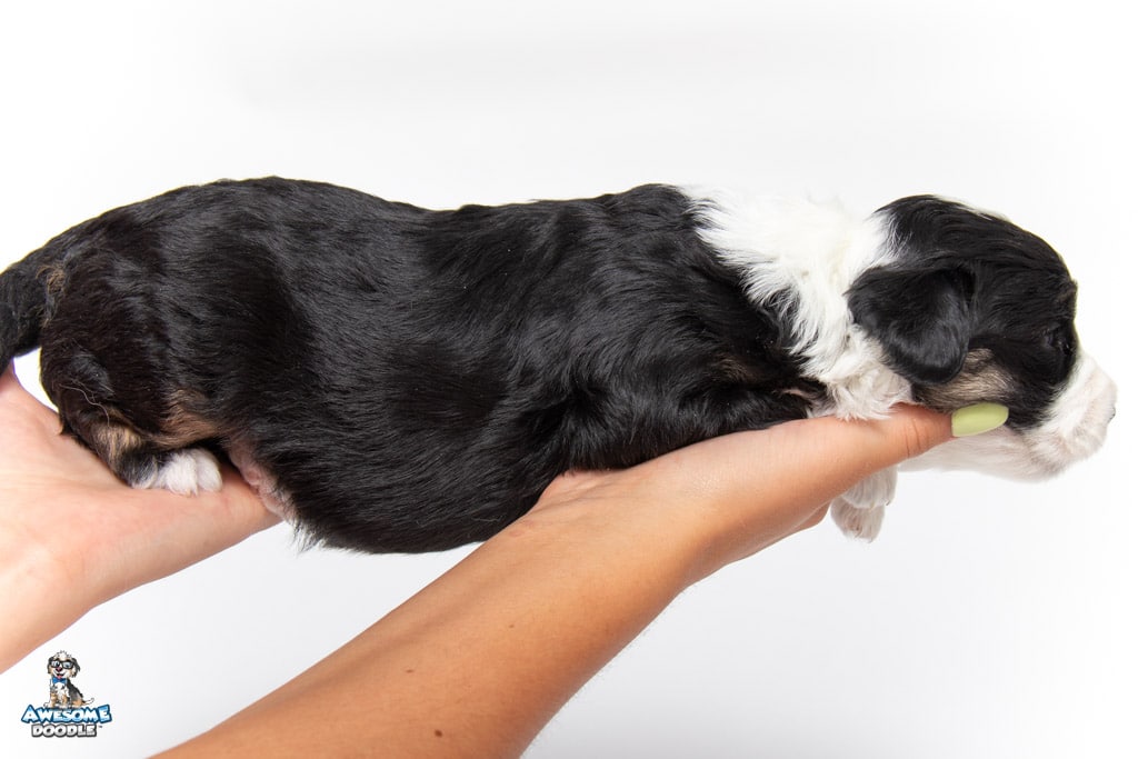 Brodie is a male Black Tri-Color F1 AussieDoodle puppy.
