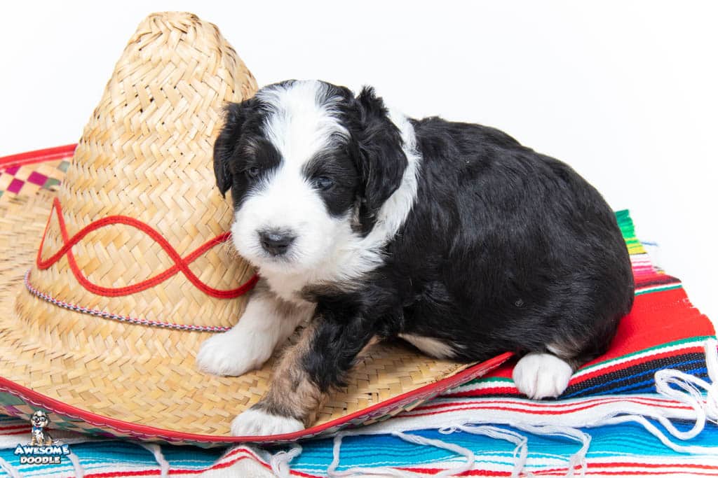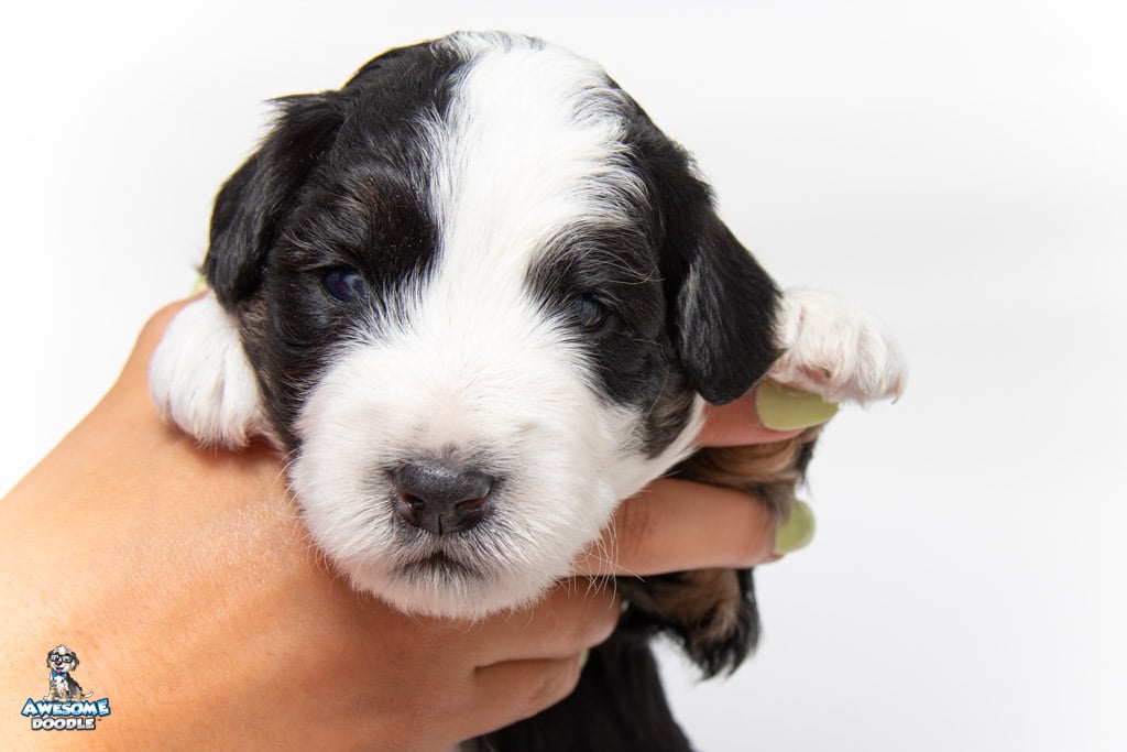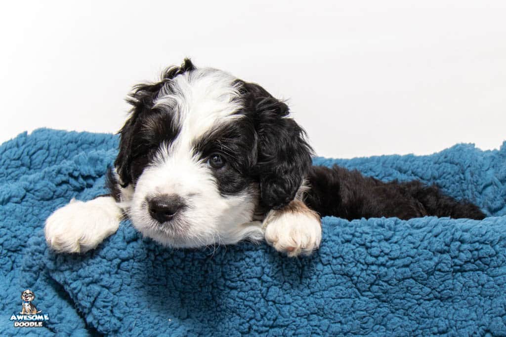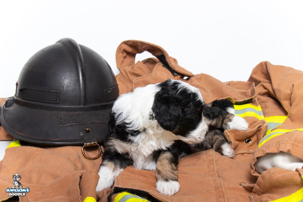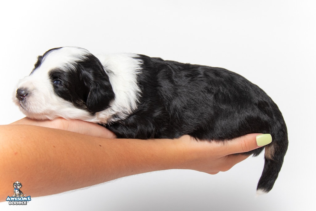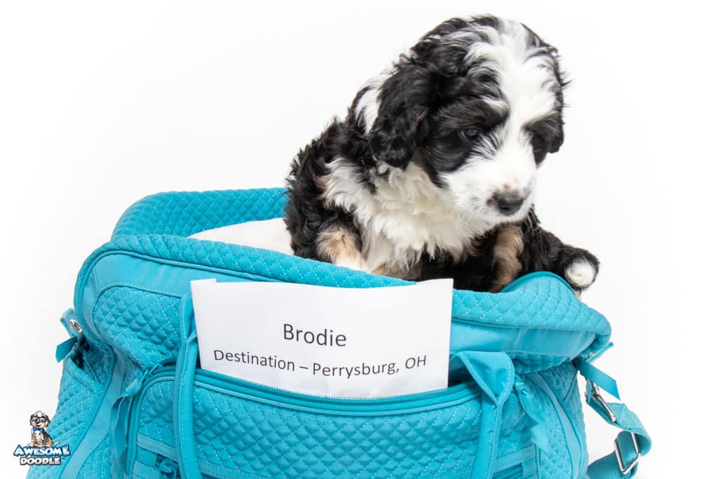 Brodie is a male Black Tri-Color F1 AussieDoodle puppy.