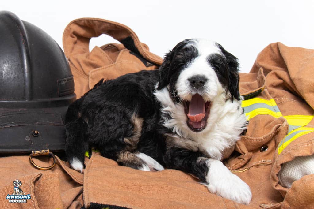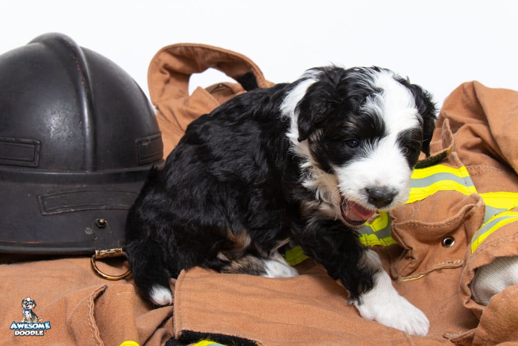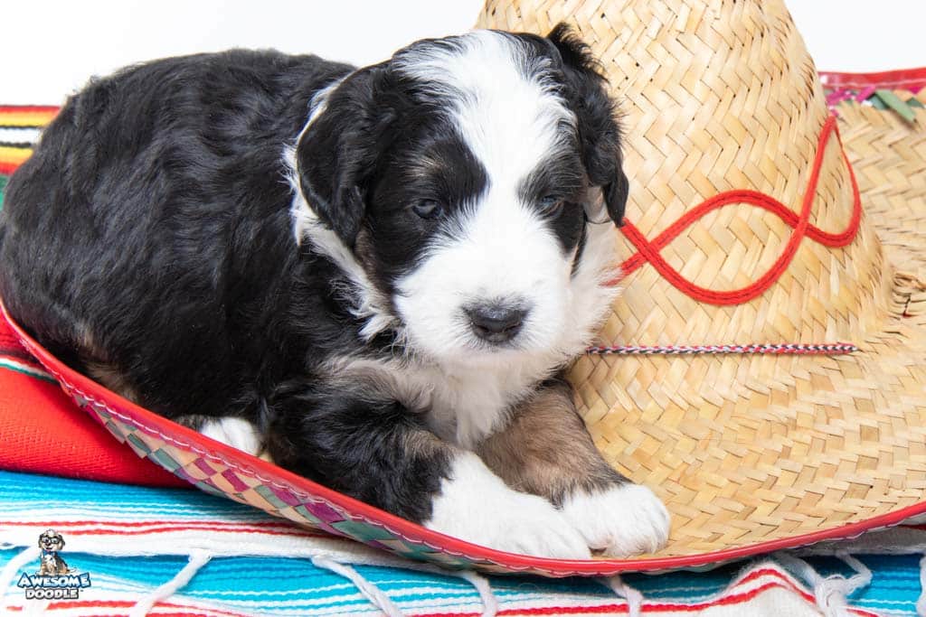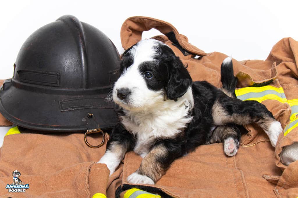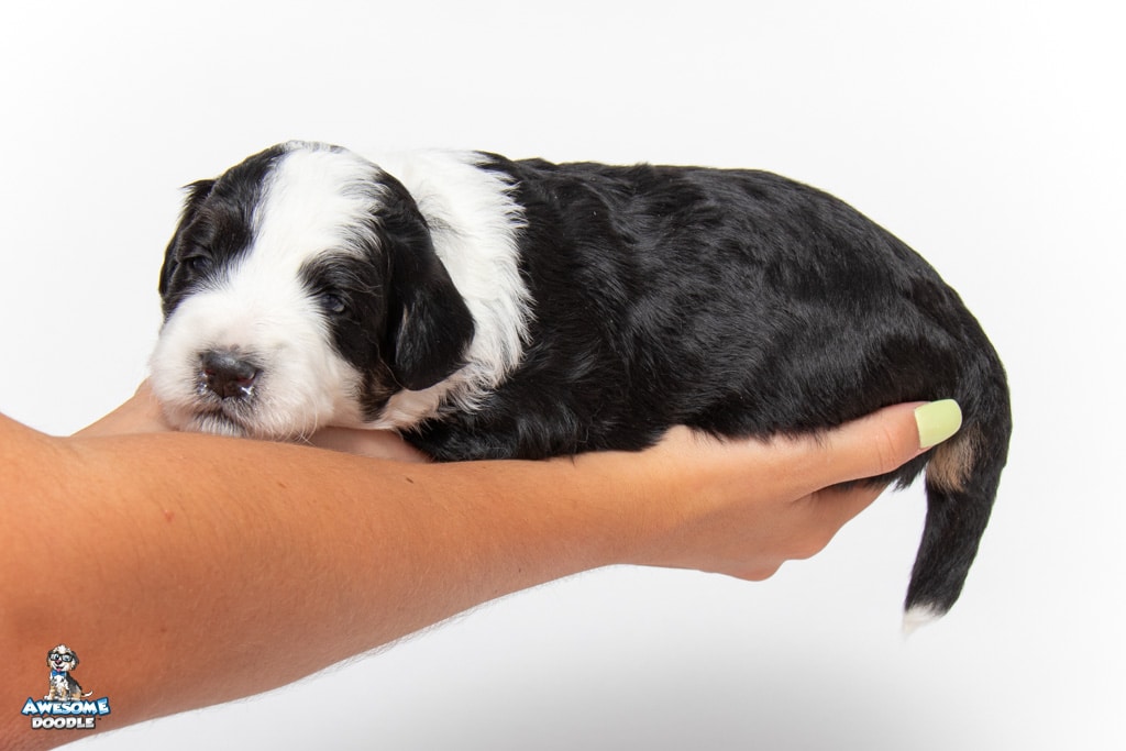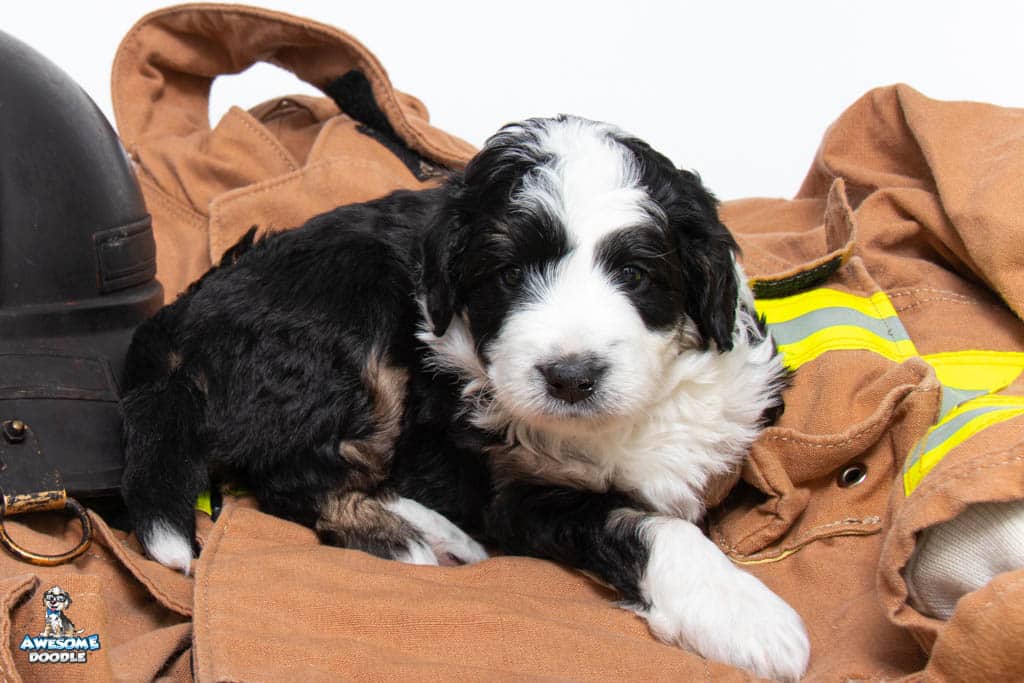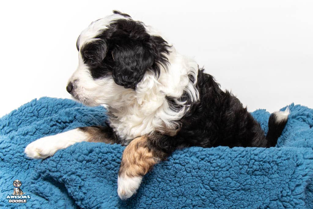 Brodie is a male Black Tri-Color F1 AussieDoodle puppy.