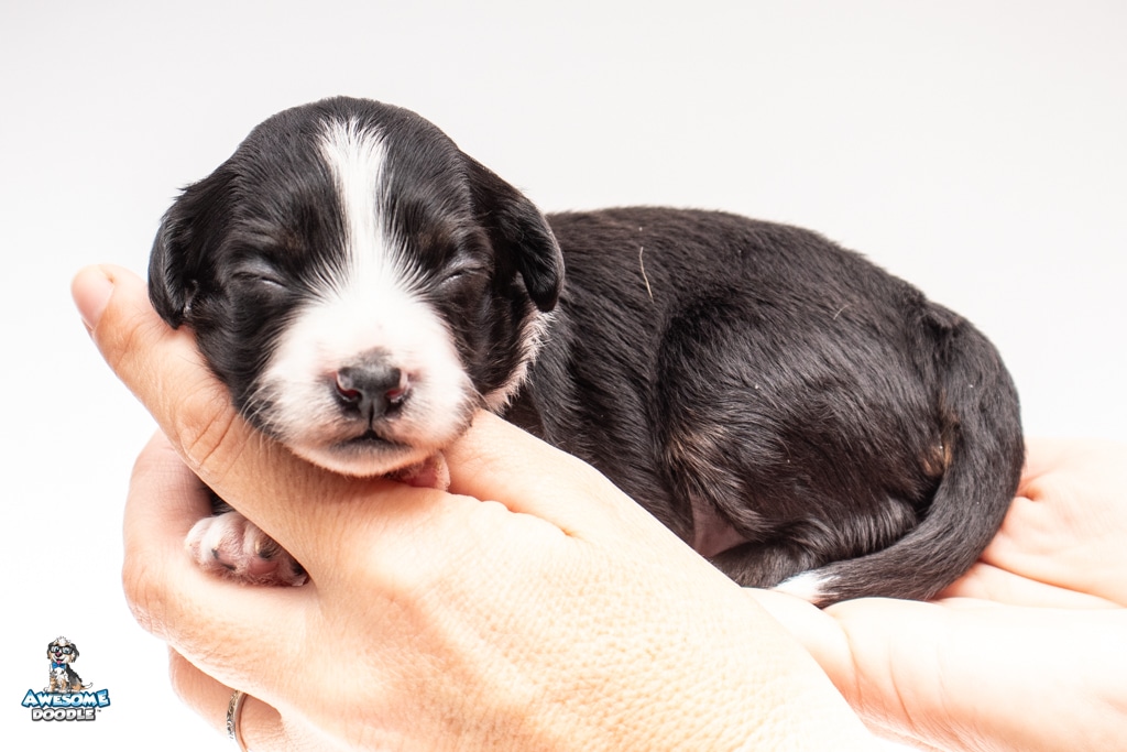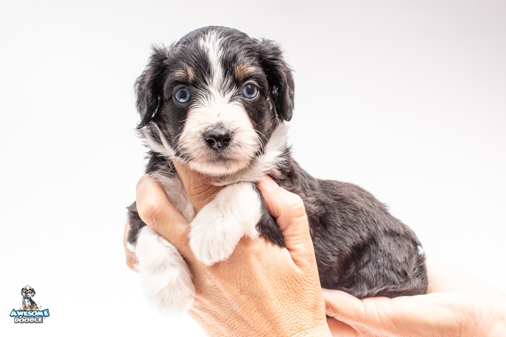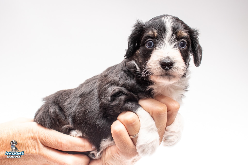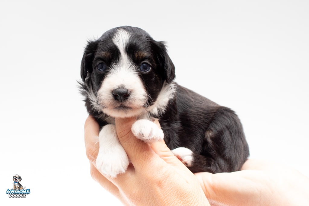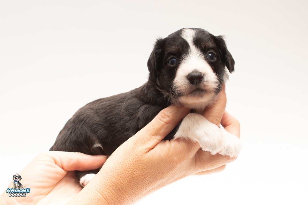 Paul is a male Black Tri-Color F1 AussieDoodle puppy.