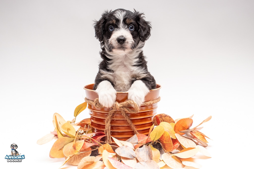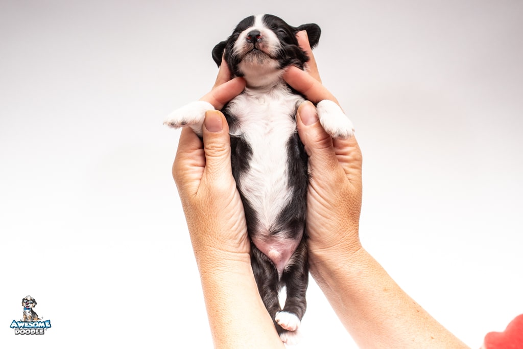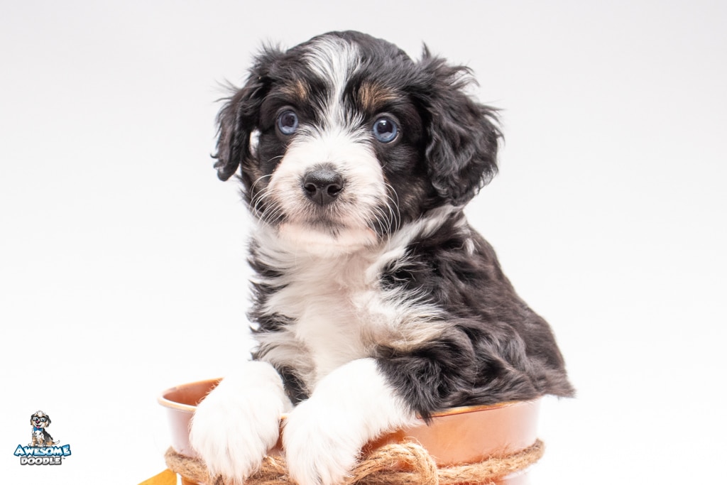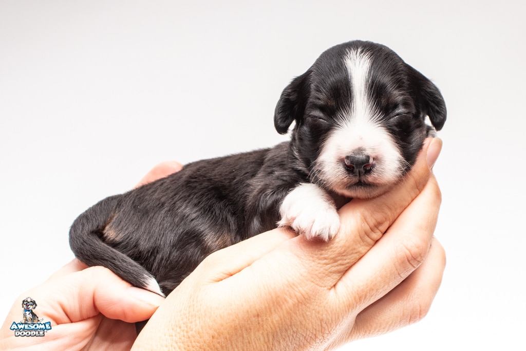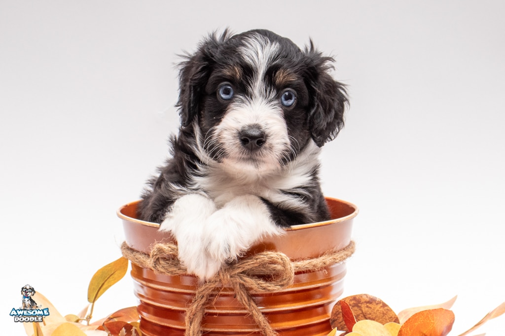 Paul is a male Black Tri-Color F1 AussieDoodle puppy.