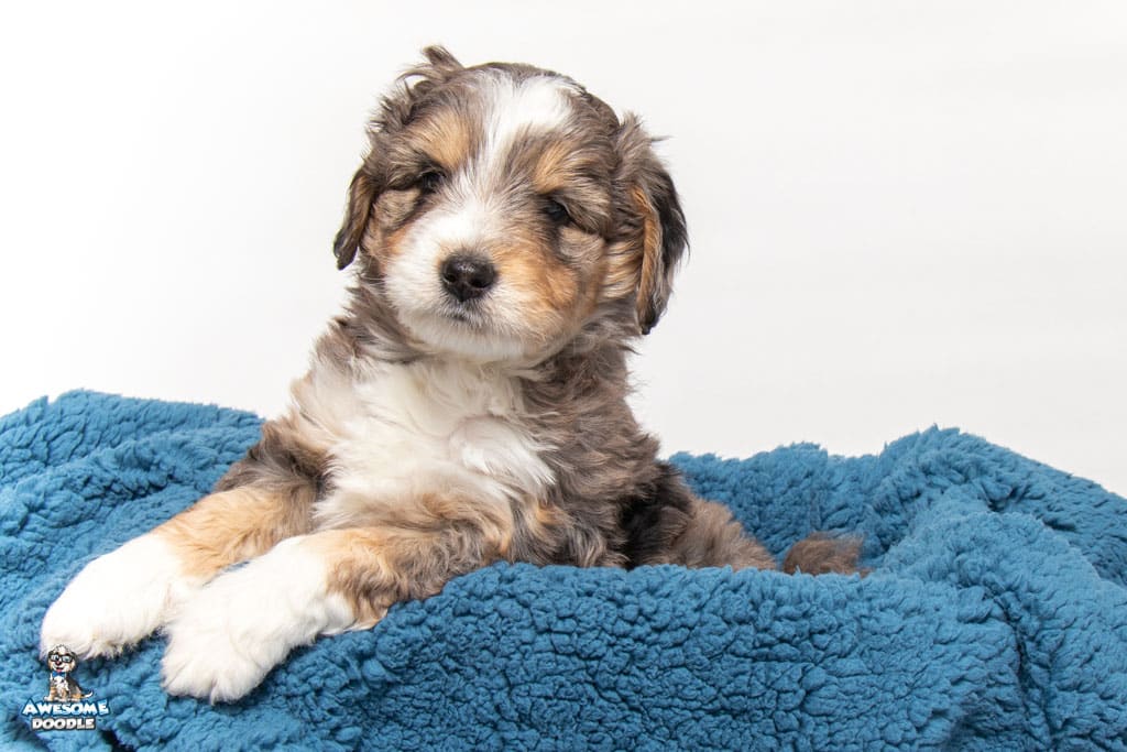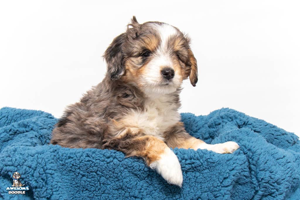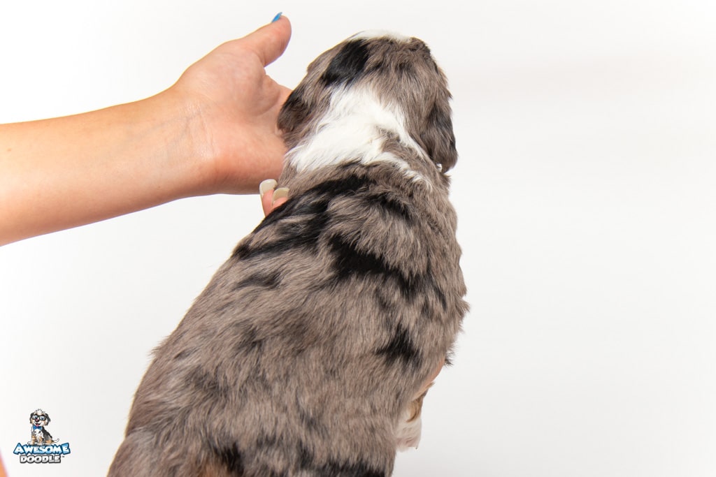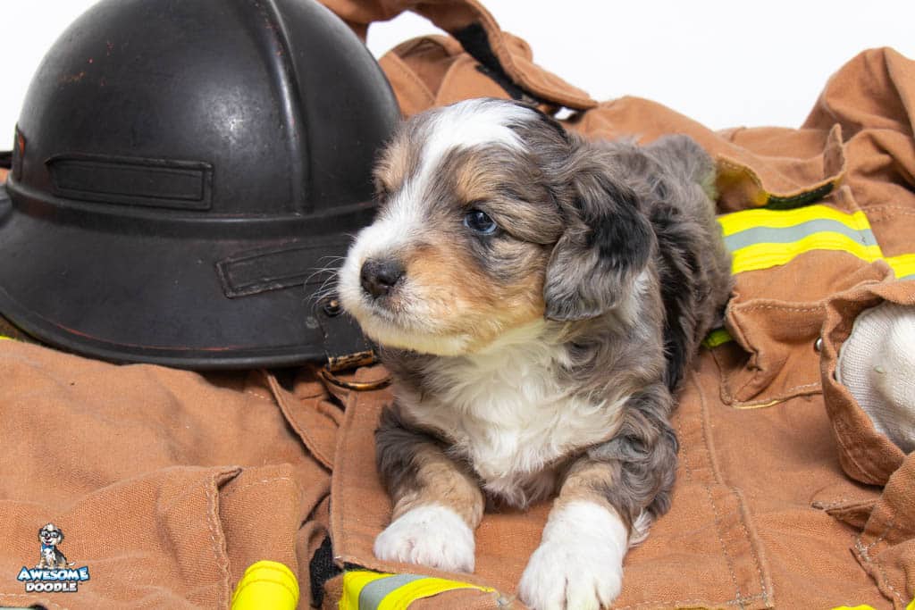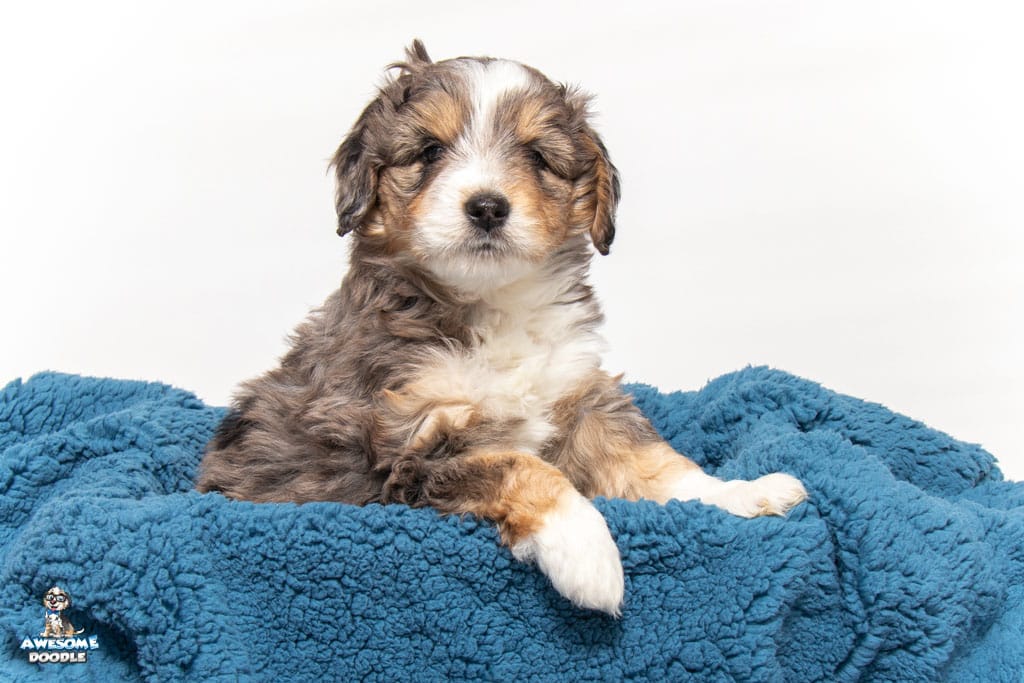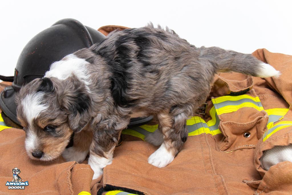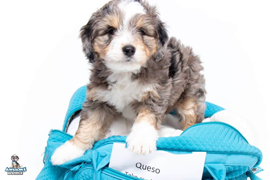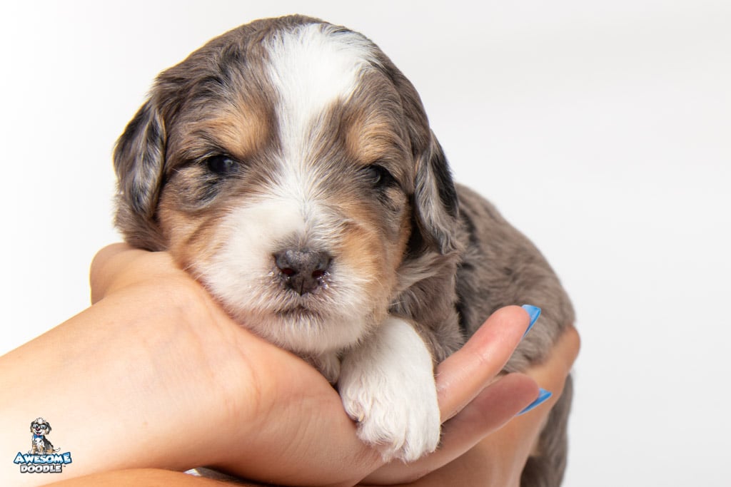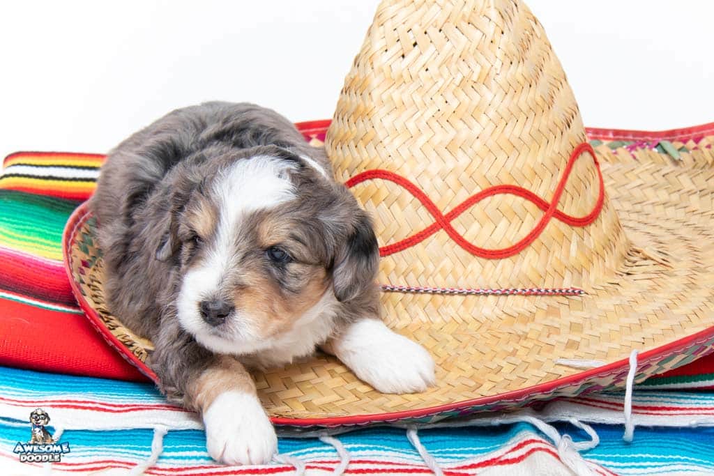 Queso is a male Blue Merle w/ White & Copper F1 AussieDoodle puppy.