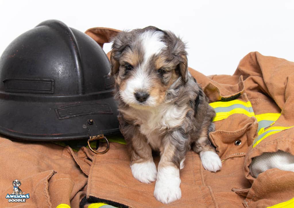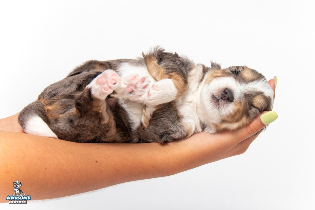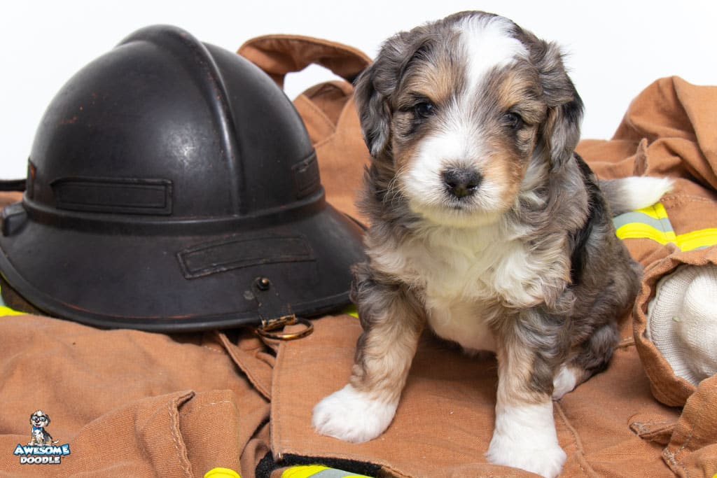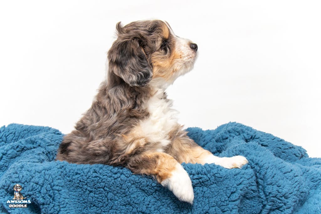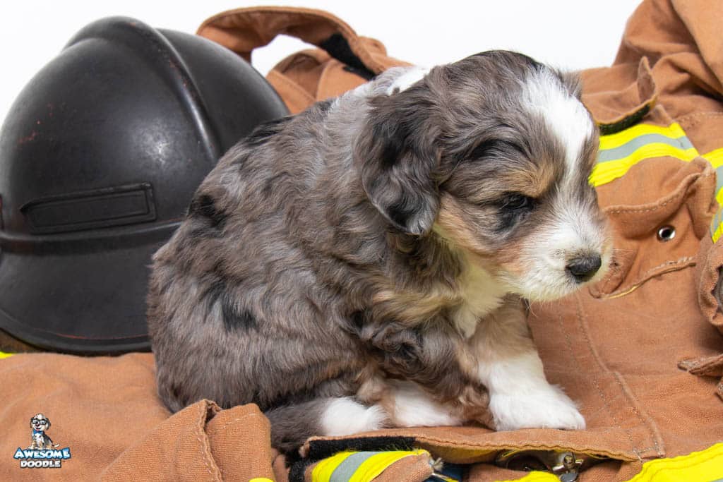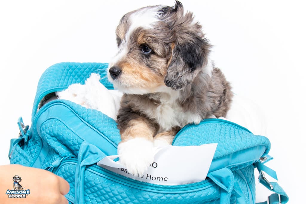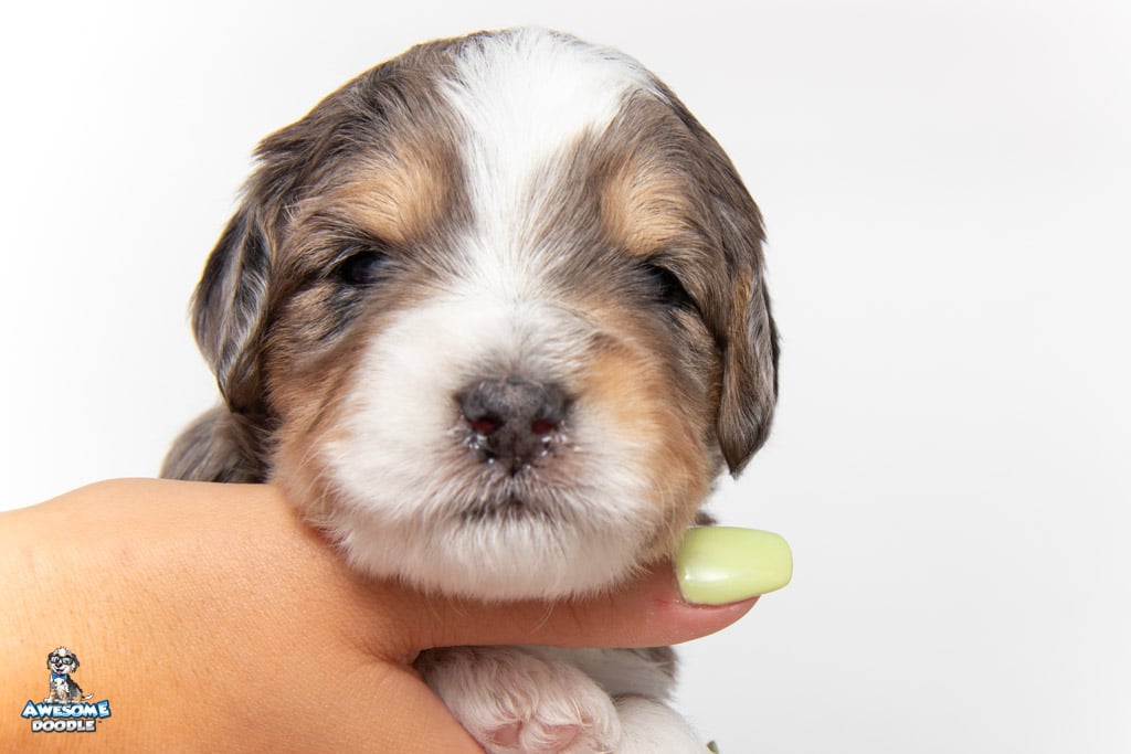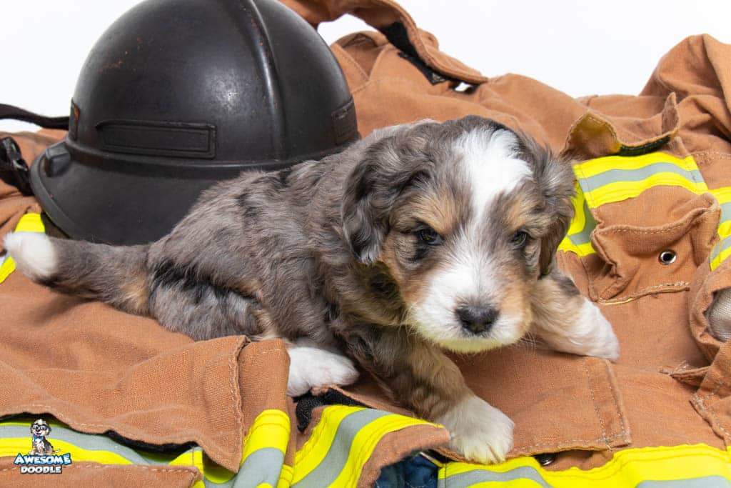 Queso is a male Blue Merle w/ White & Copper F1 AussieDoodle puppy.