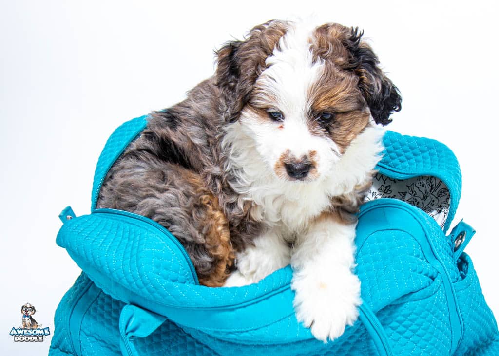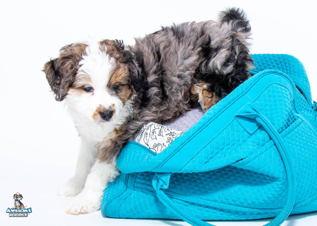 Roman is a male Blue Merle w/ White & Copper F1 AussieDoodle puppy.