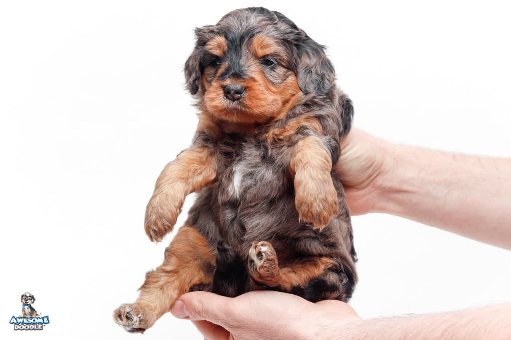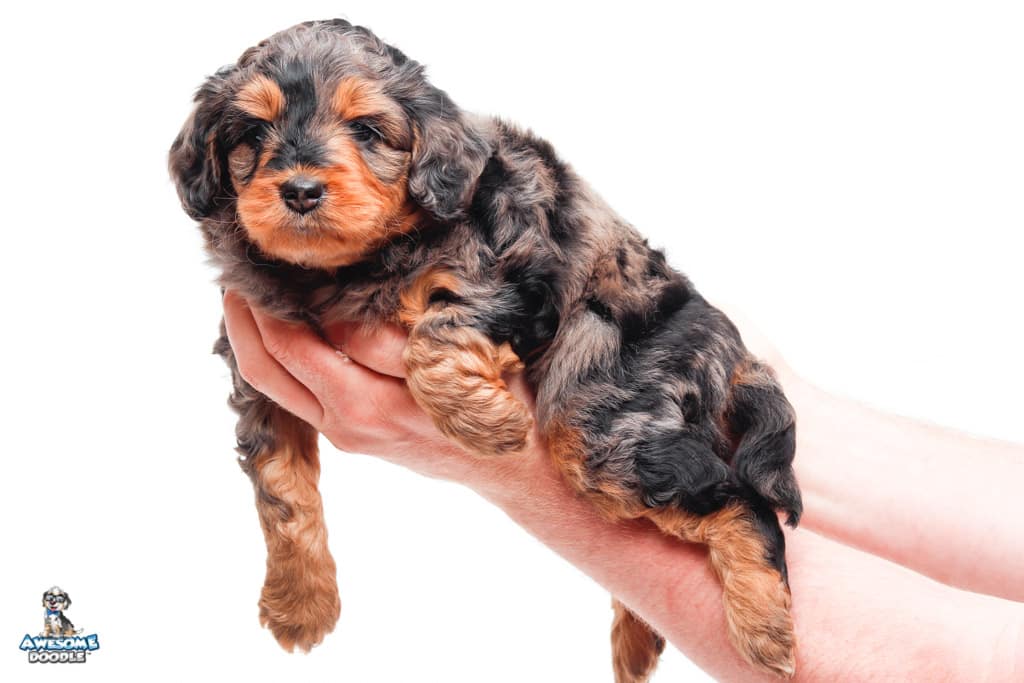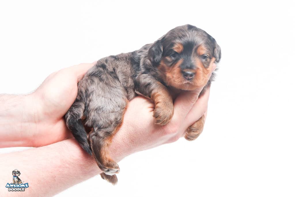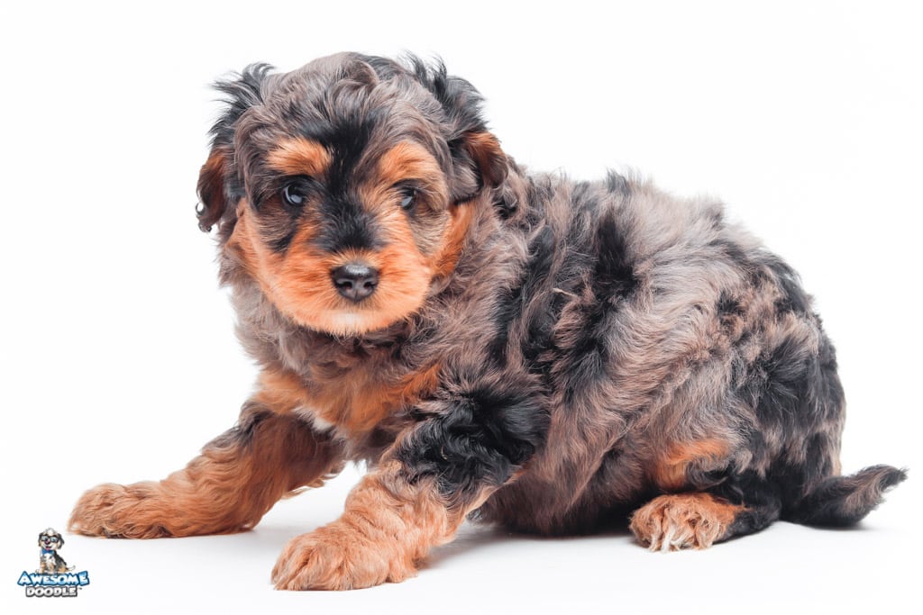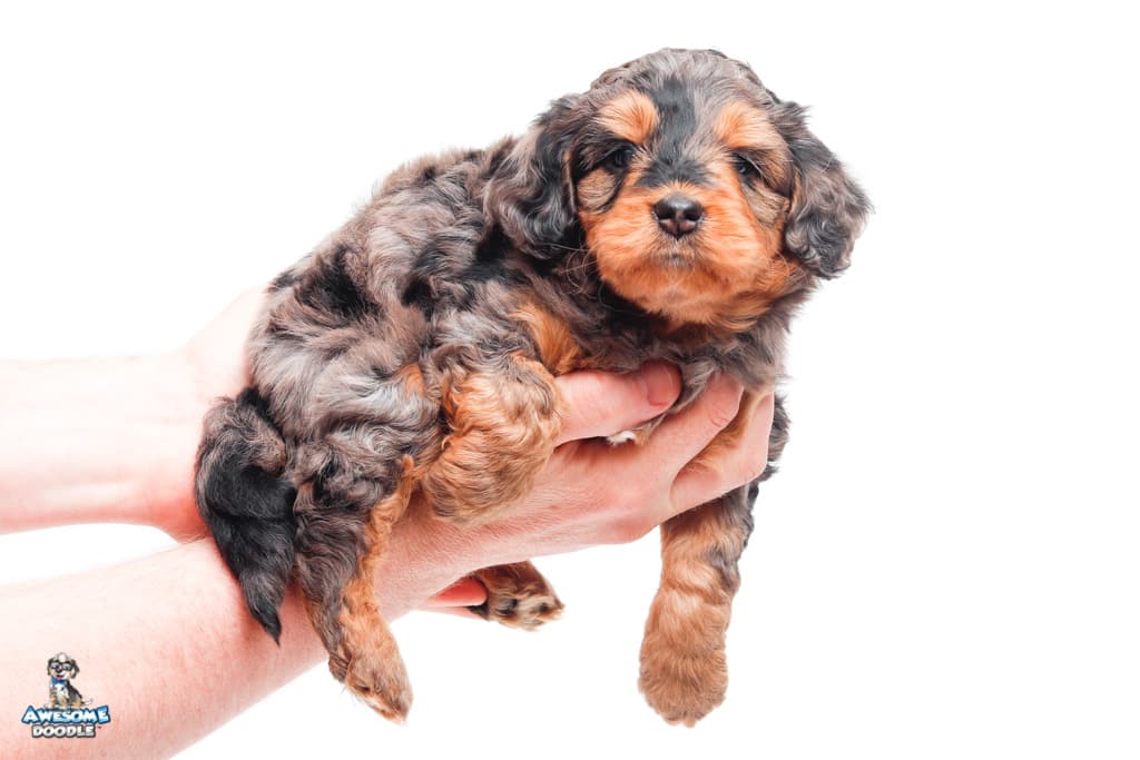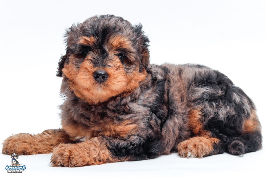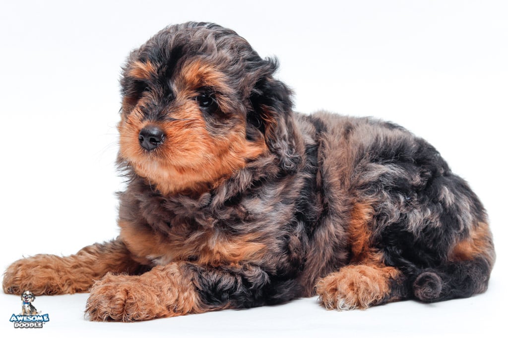 Charlie Girl is a female Phantom Blue Merle F1 AussieDoodle puppy.