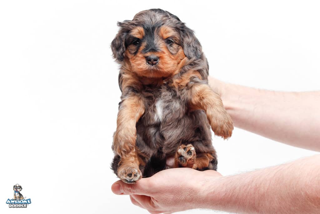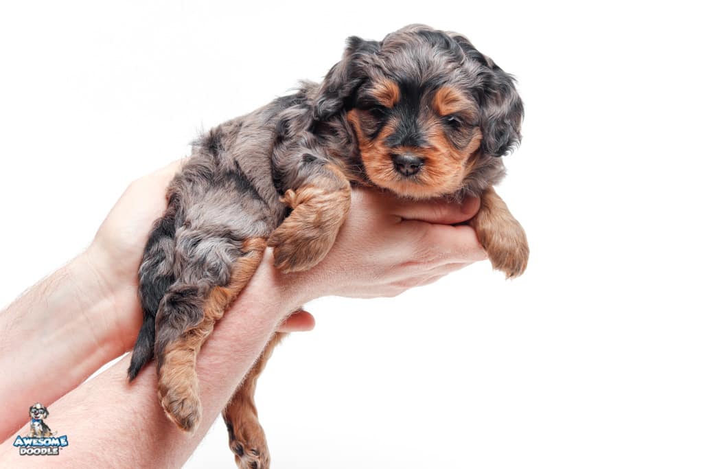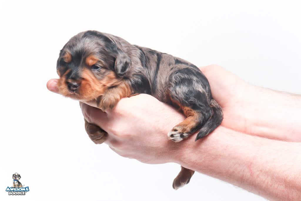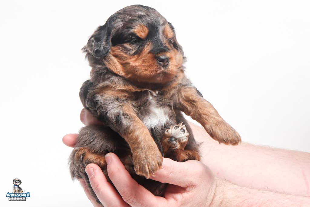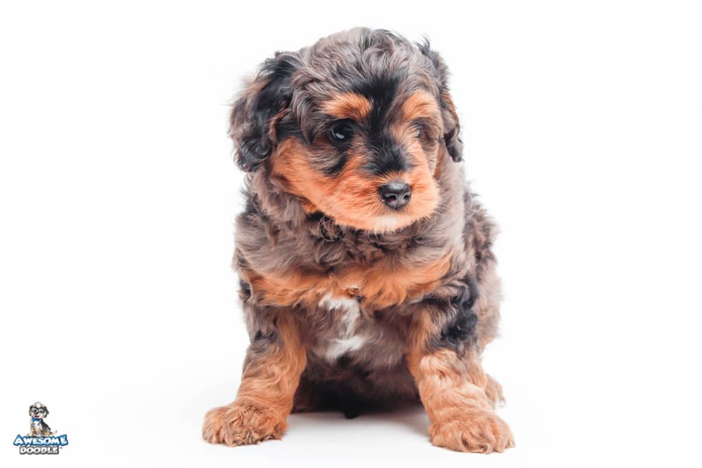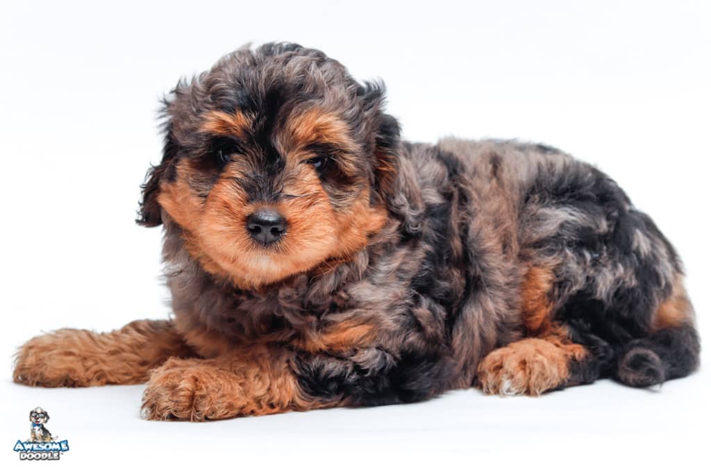 Charlie Girl is a female Phantom Blue Merle F1 AussieDoodle puppy.