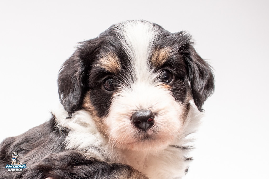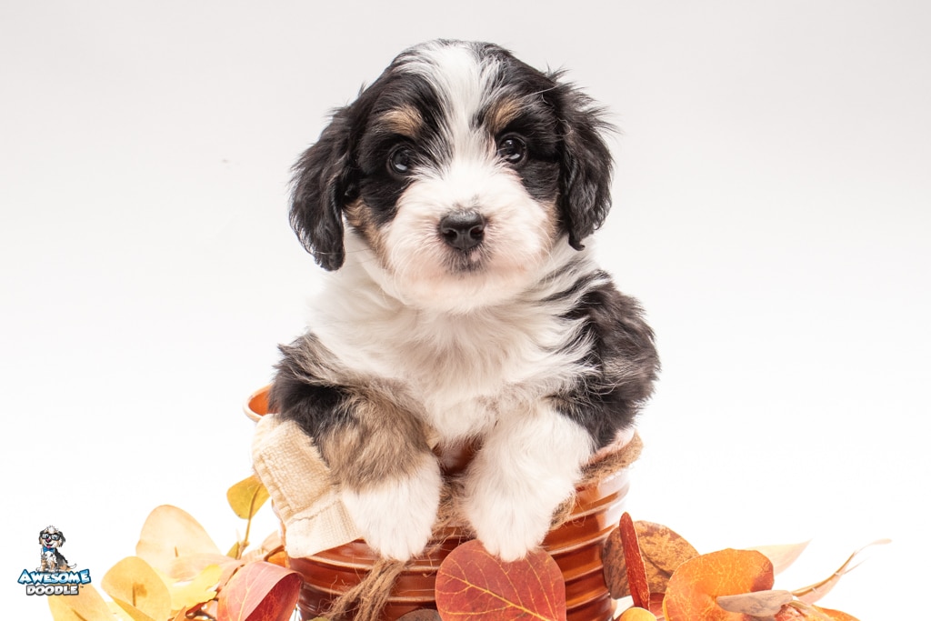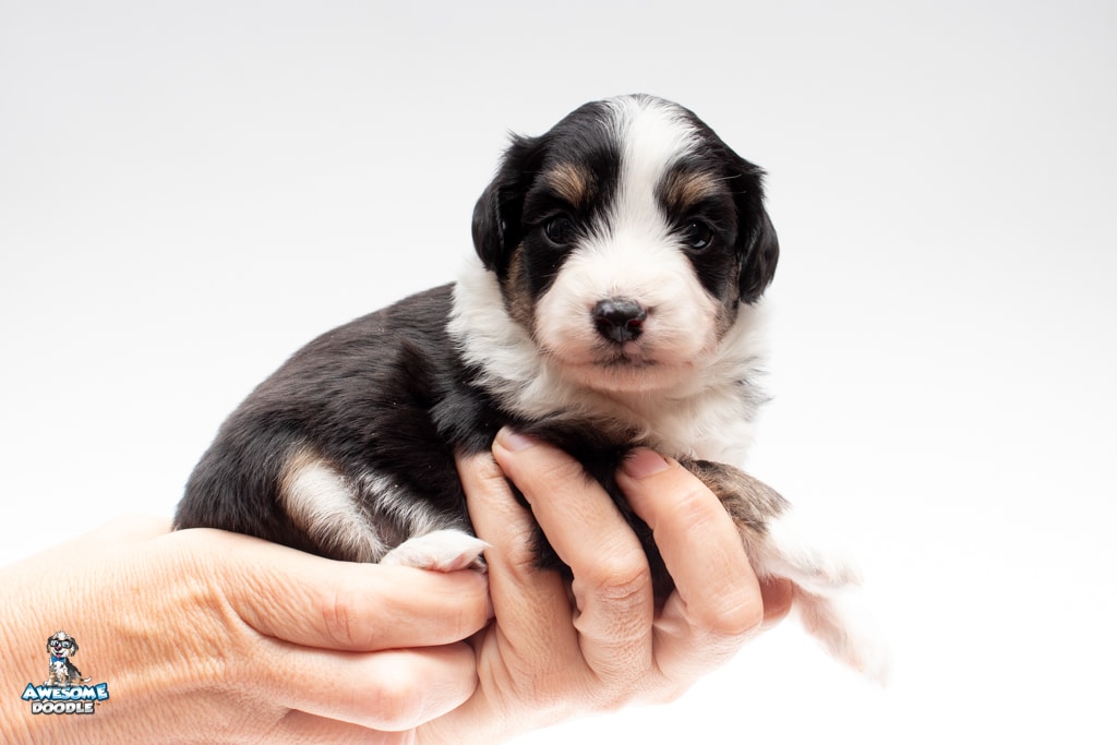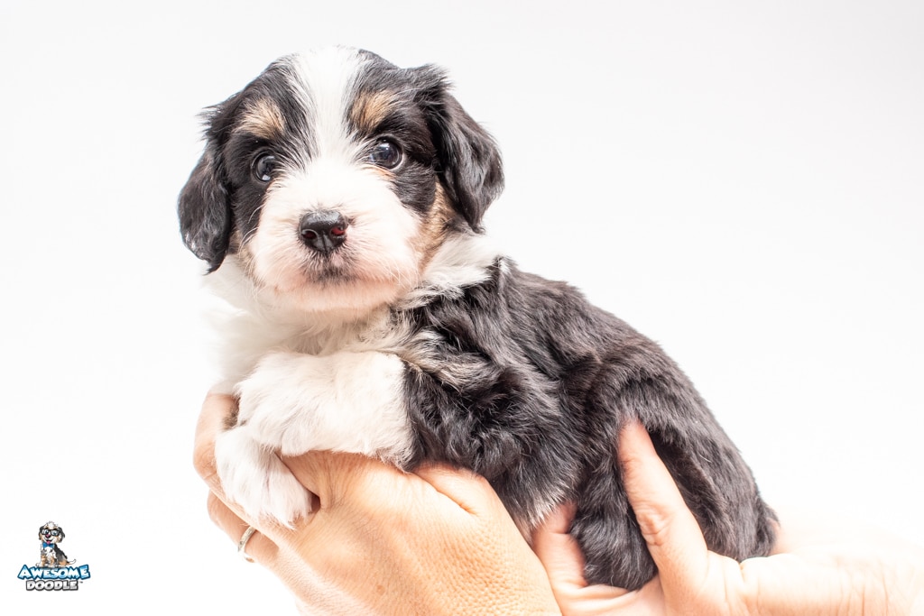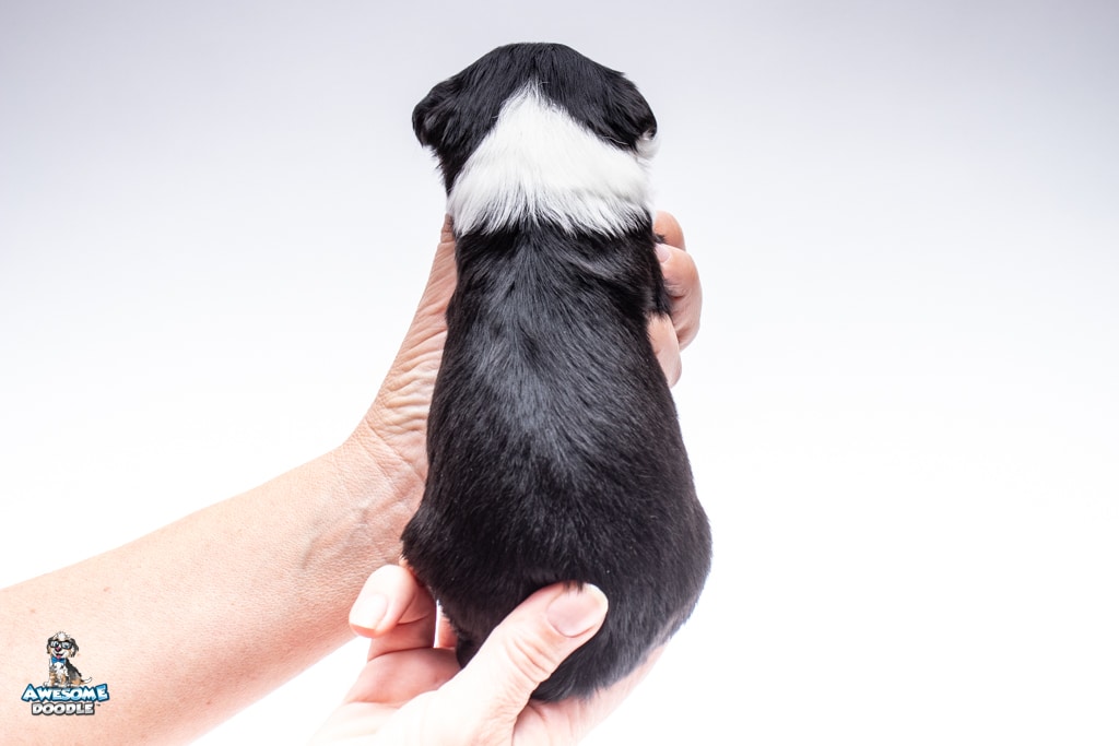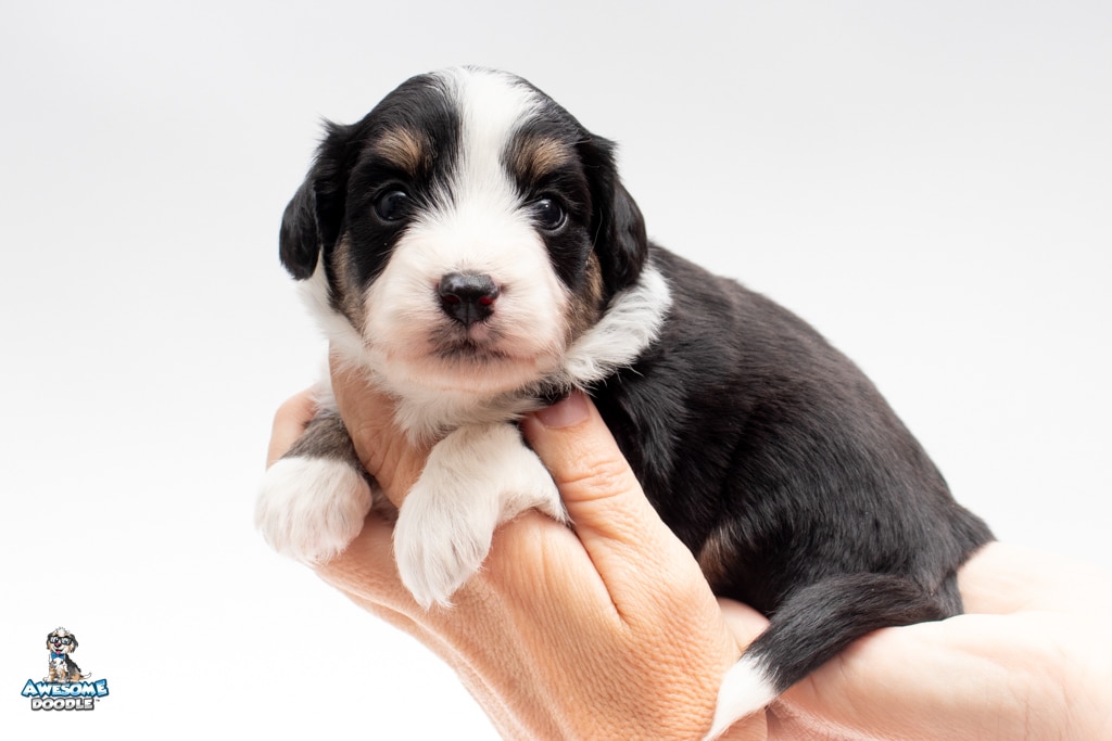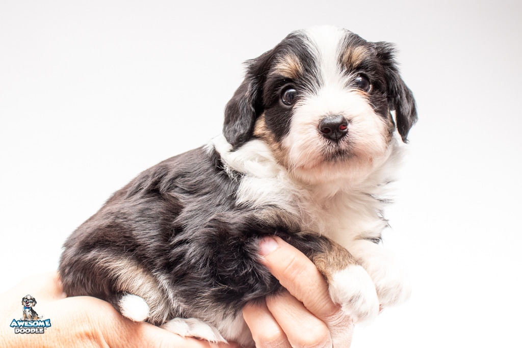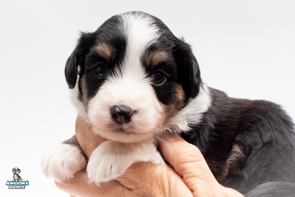 Ringo is a male Black Tri-Color F1 AussieDoodle puppy.