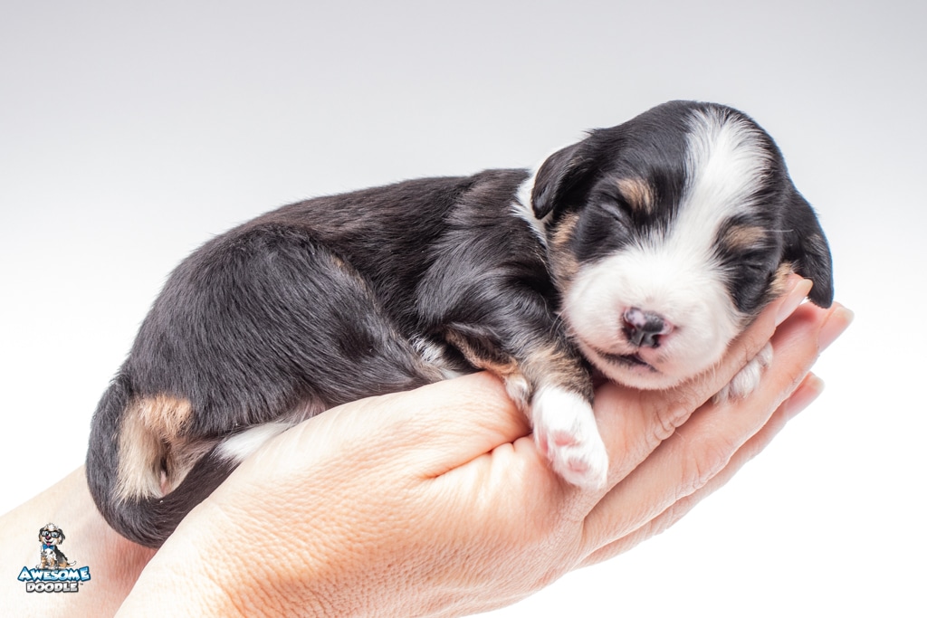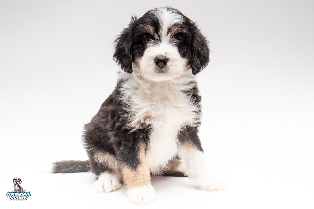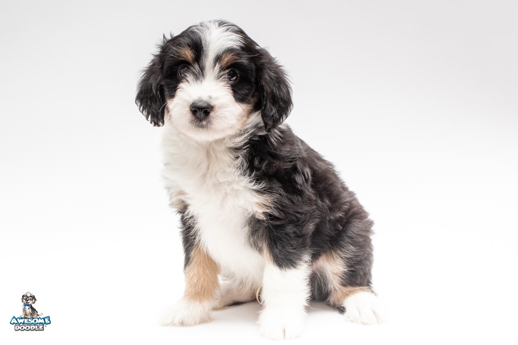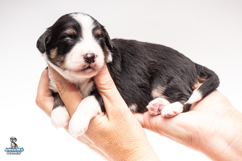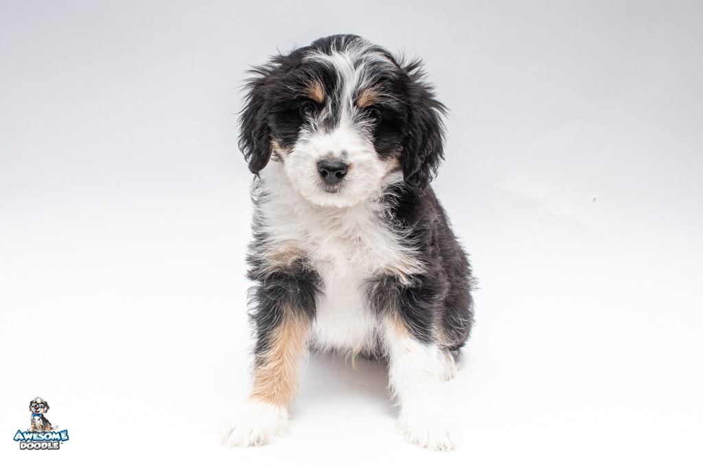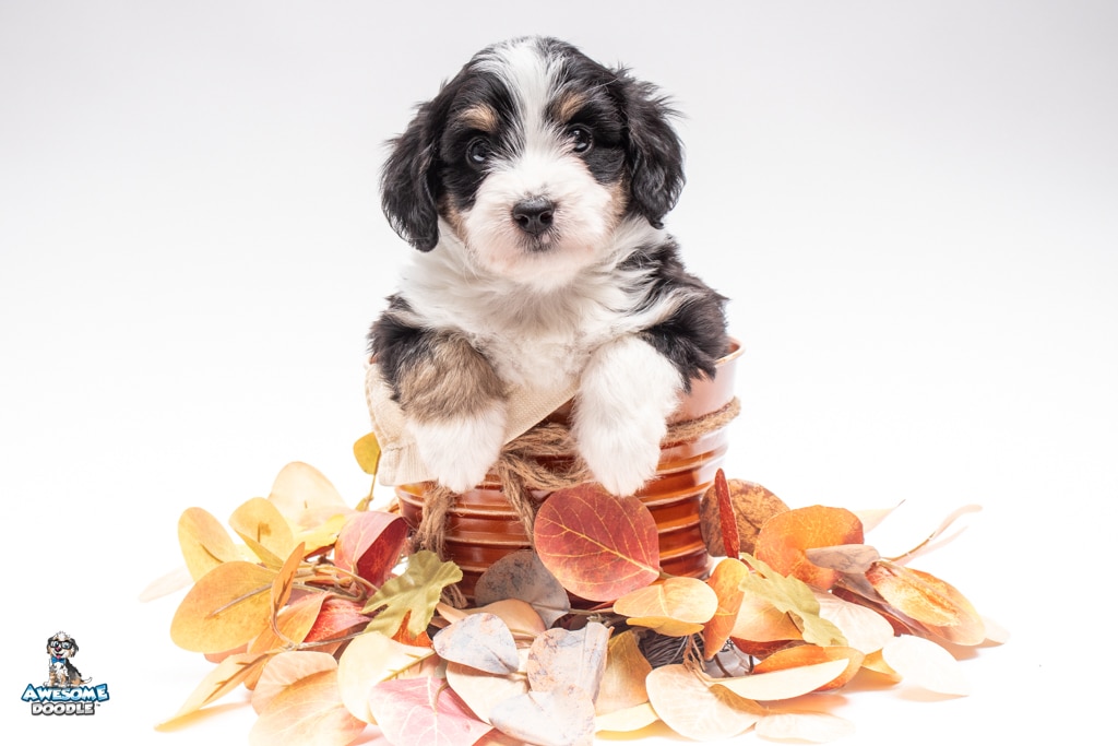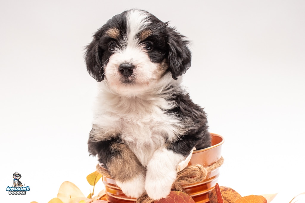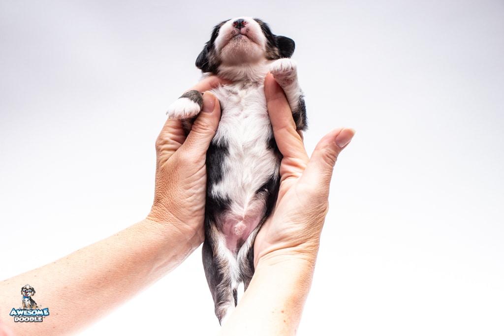 Ringo is a male Black Tri-Color F1 AussieDoodle puppy.