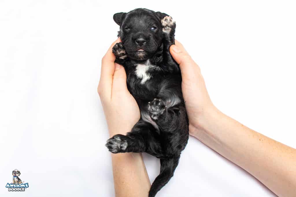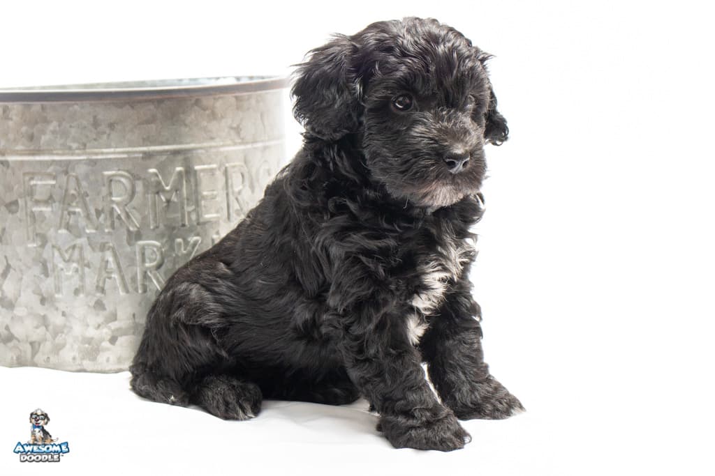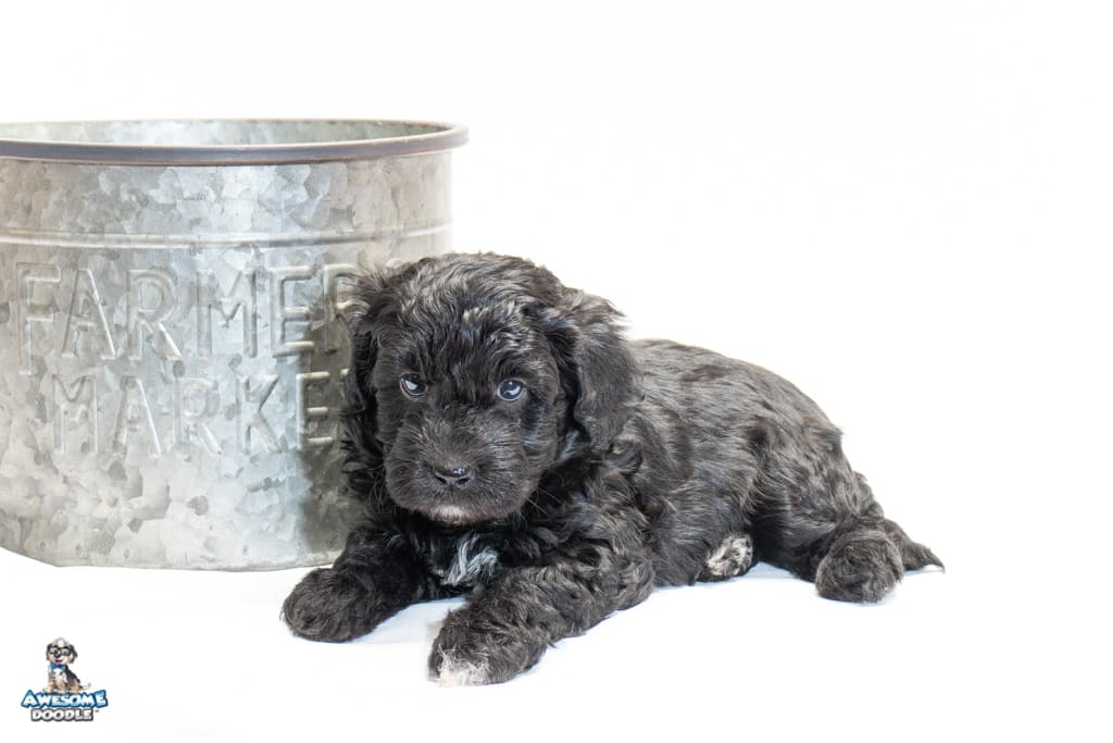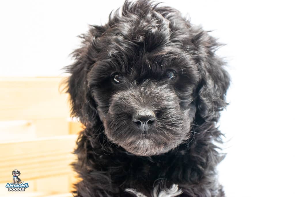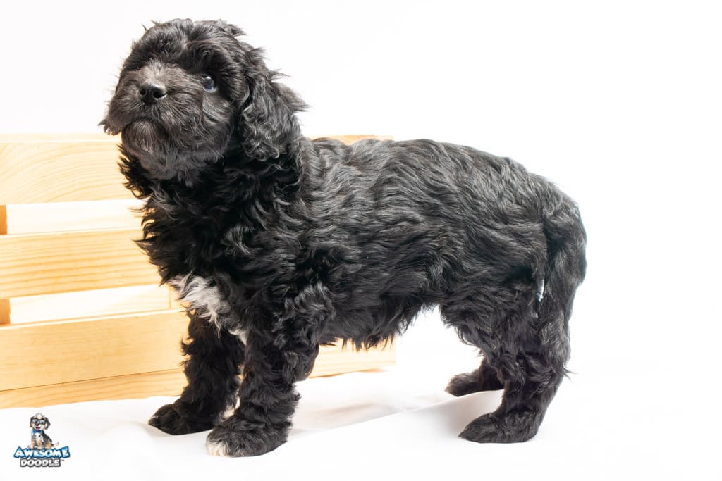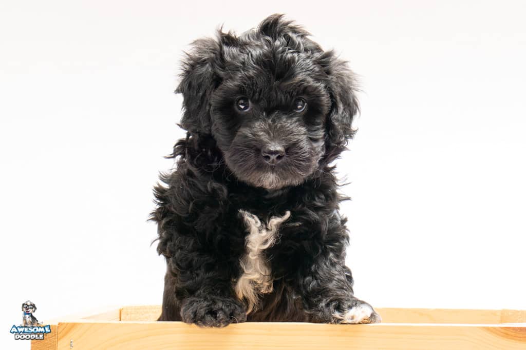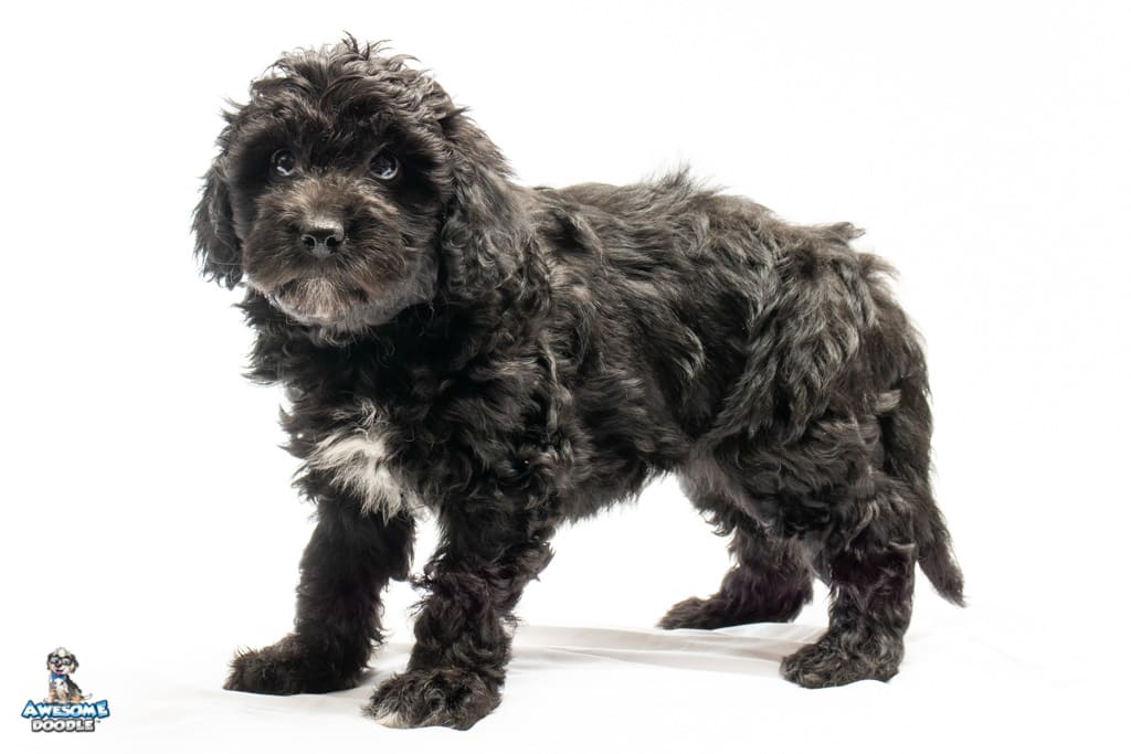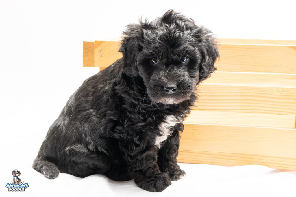 Marley is a female Black Tuxedo F1b AussieDoodle puppy.