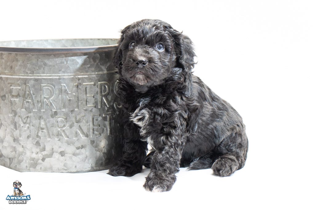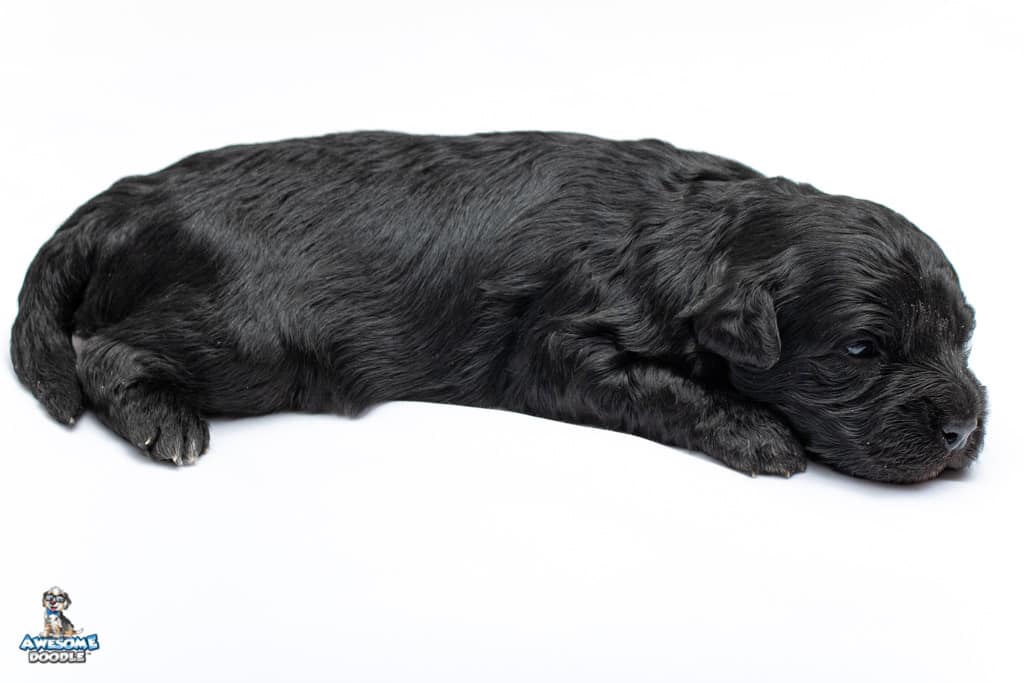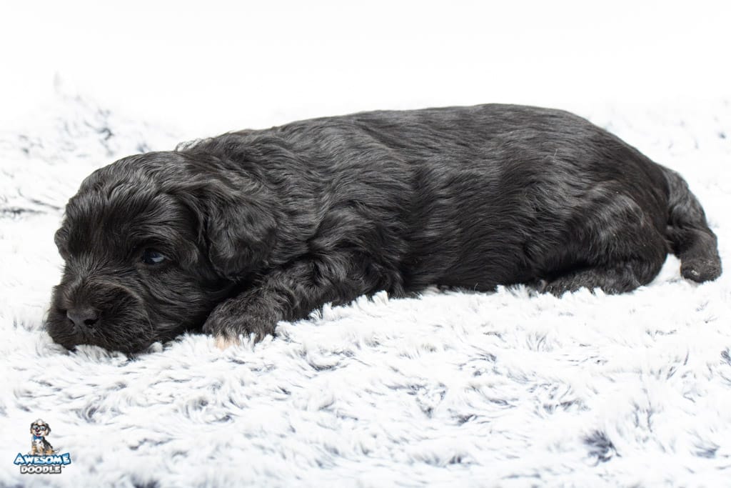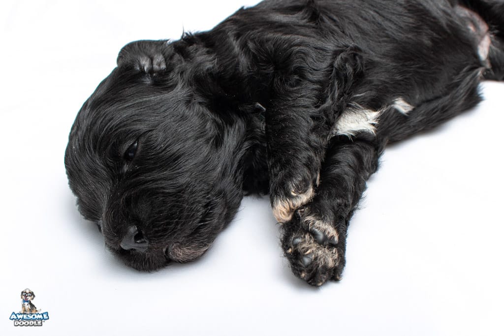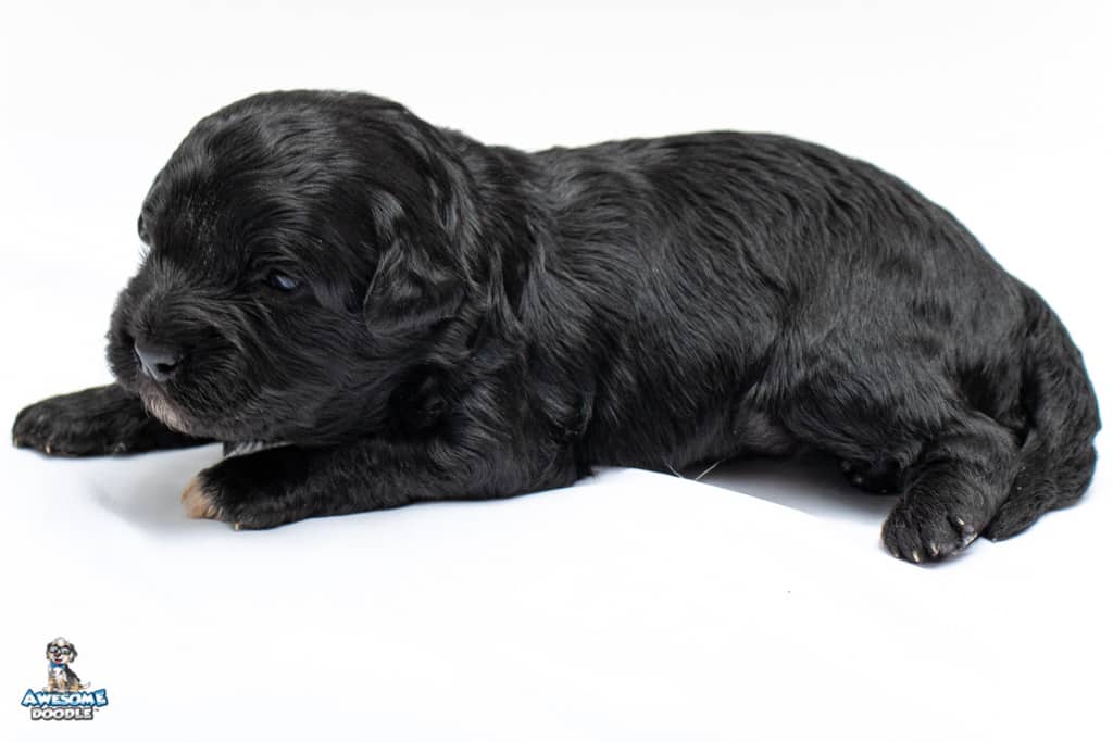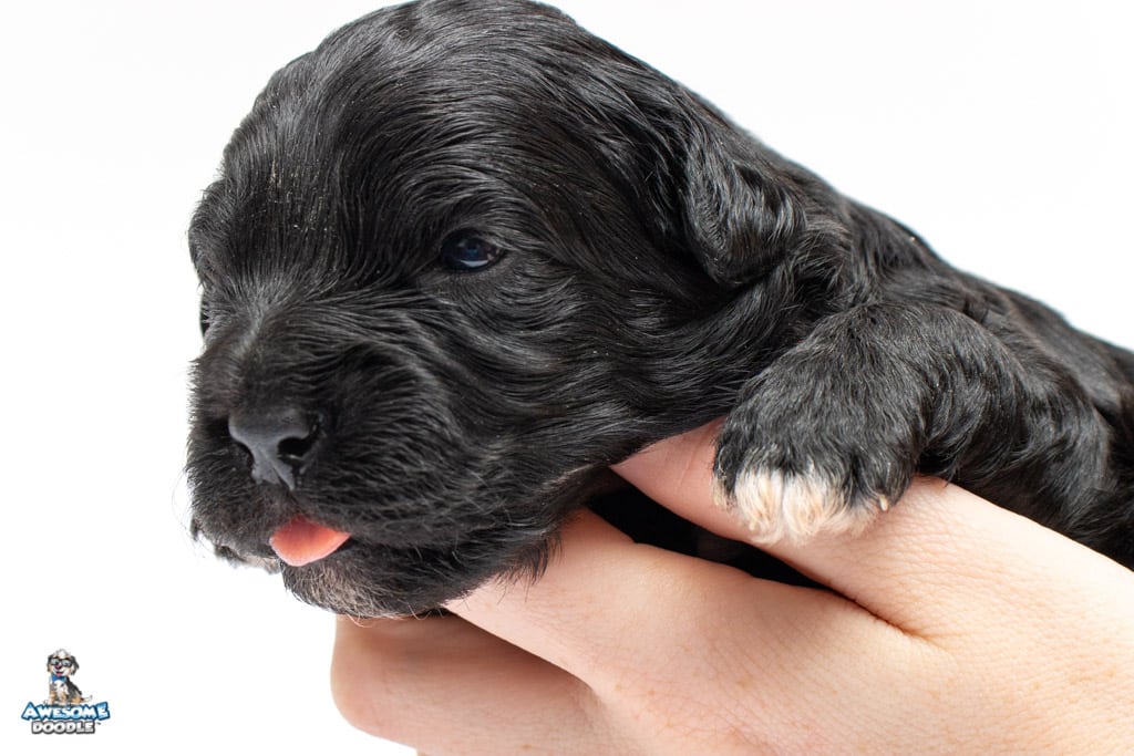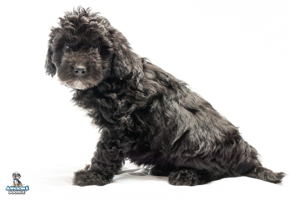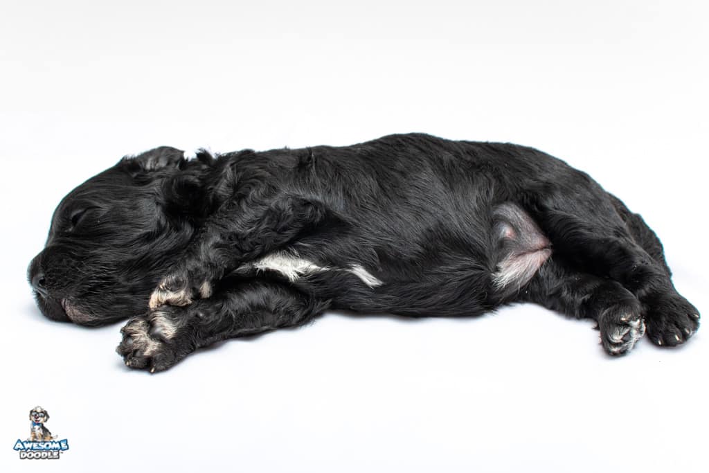 Marley is a female Black Tuxedo F1b AussieDoodle puppy.