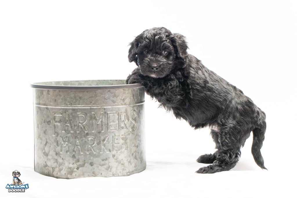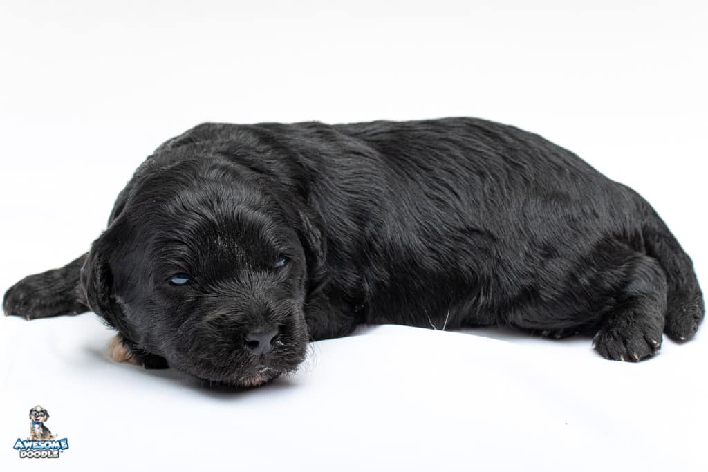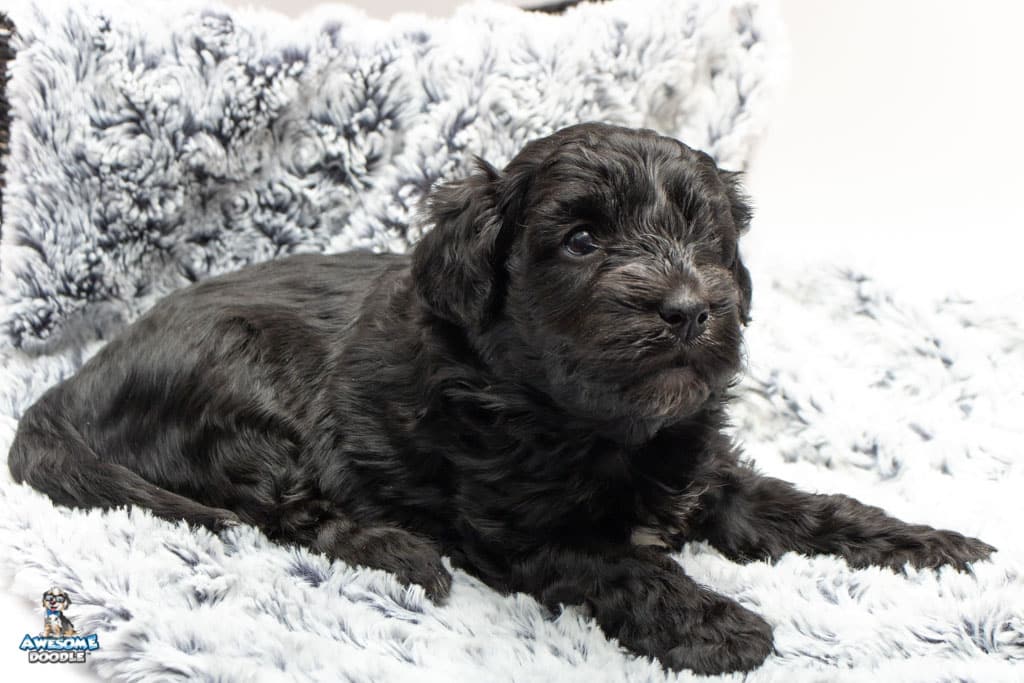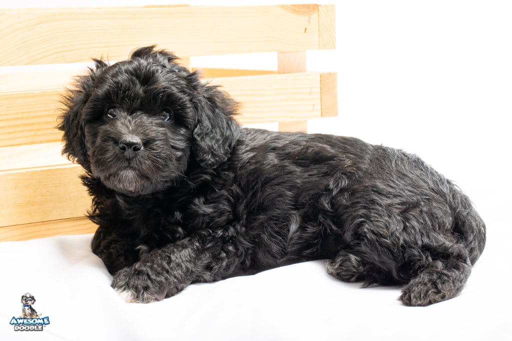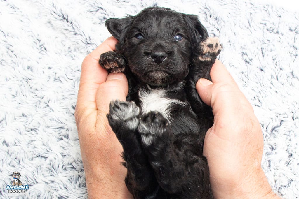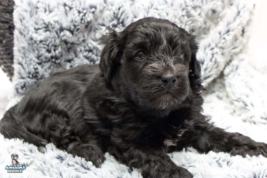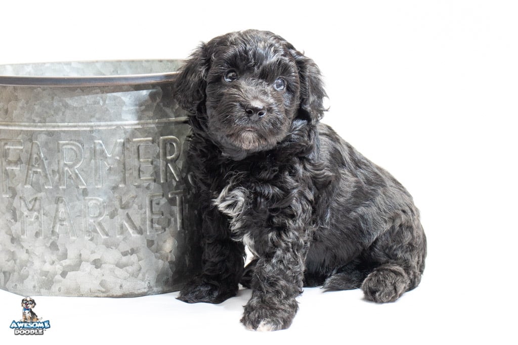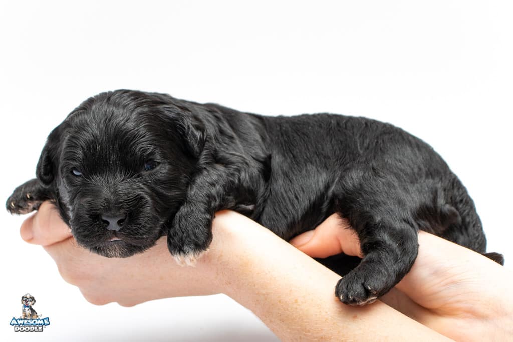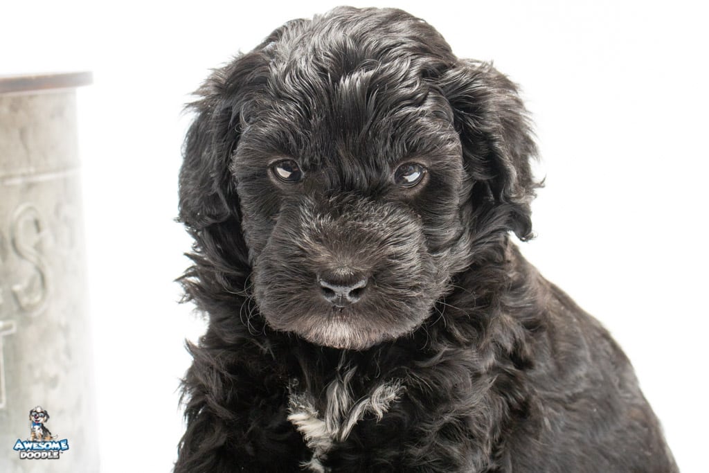Marley is a female Black Tuxedo F1b AussieDoodle puppy.