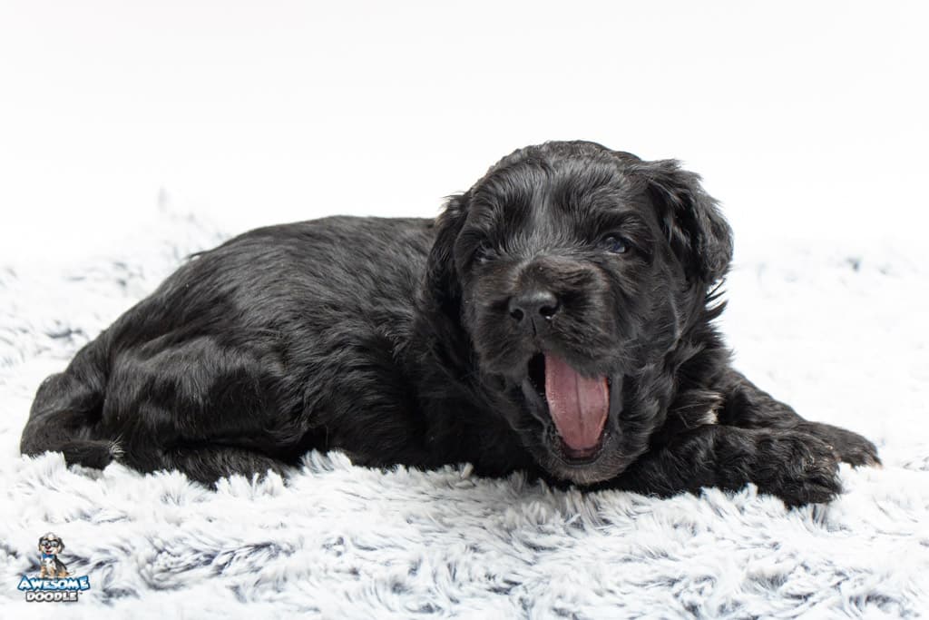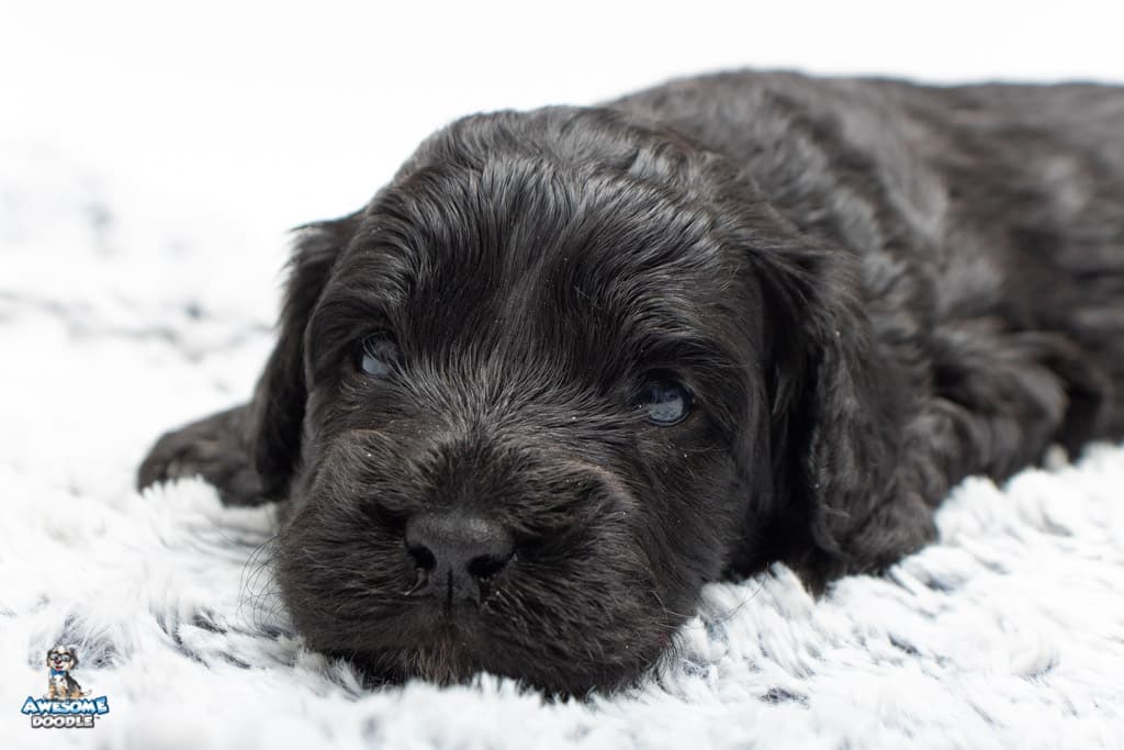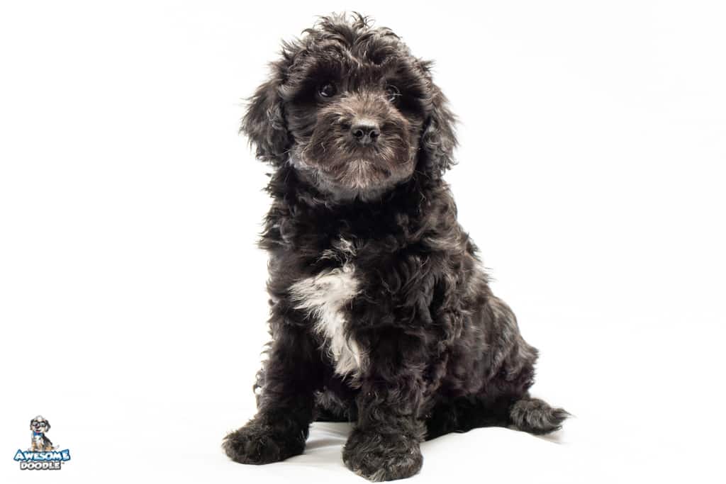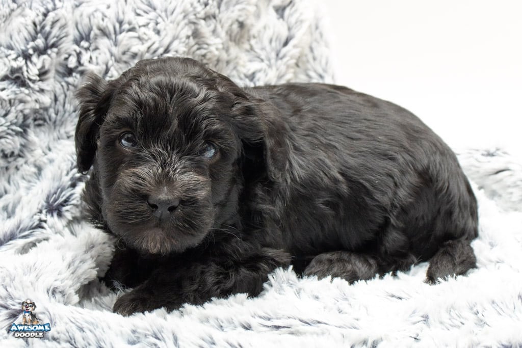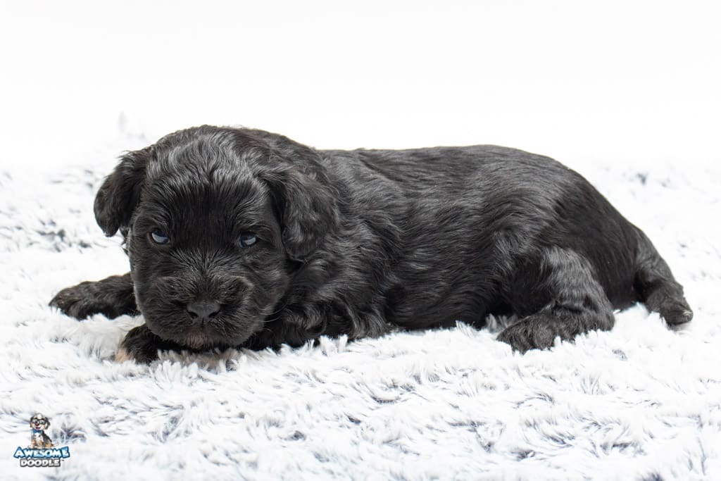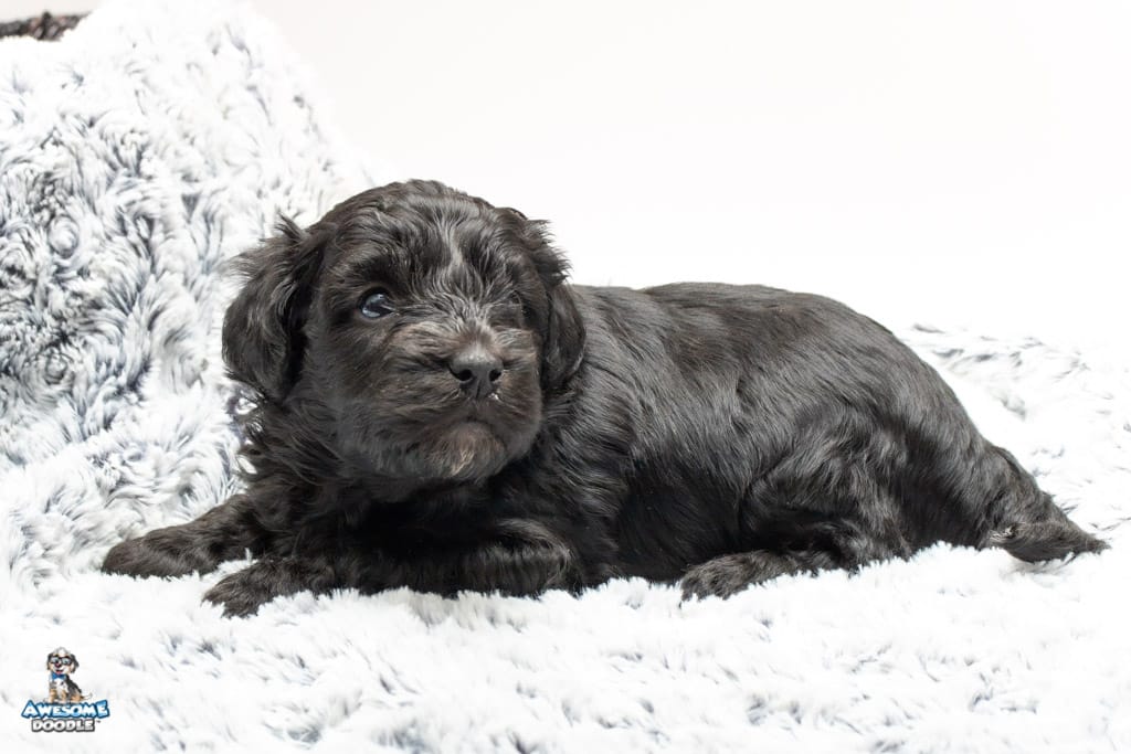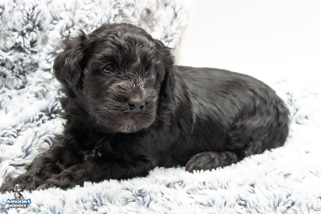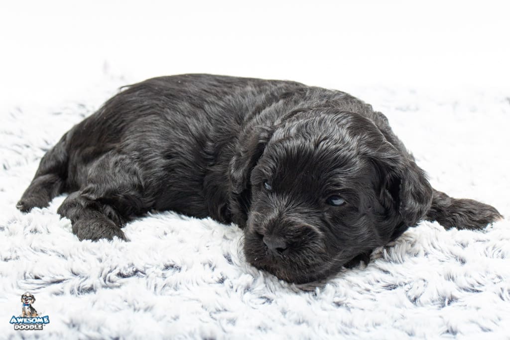 Marley is a female Black Tuxedo F1b AussieDoodle puppy.
