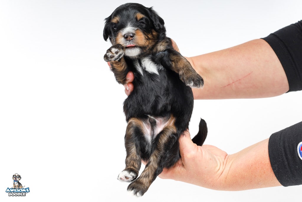 Benjamin is a male Black Phantom F1 AussieDoodle puppy.