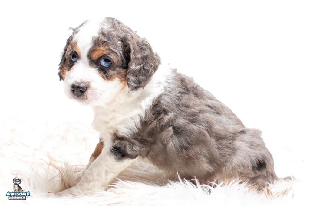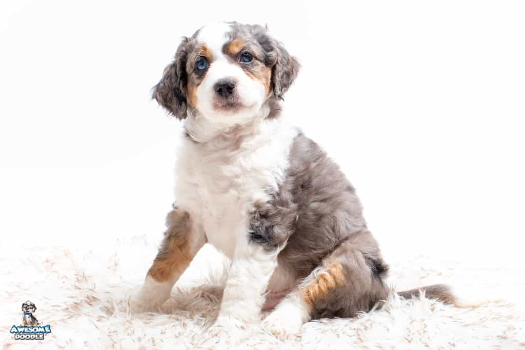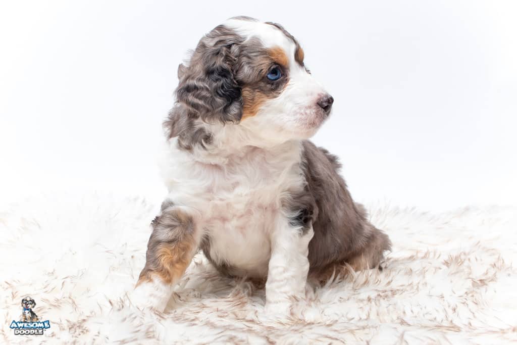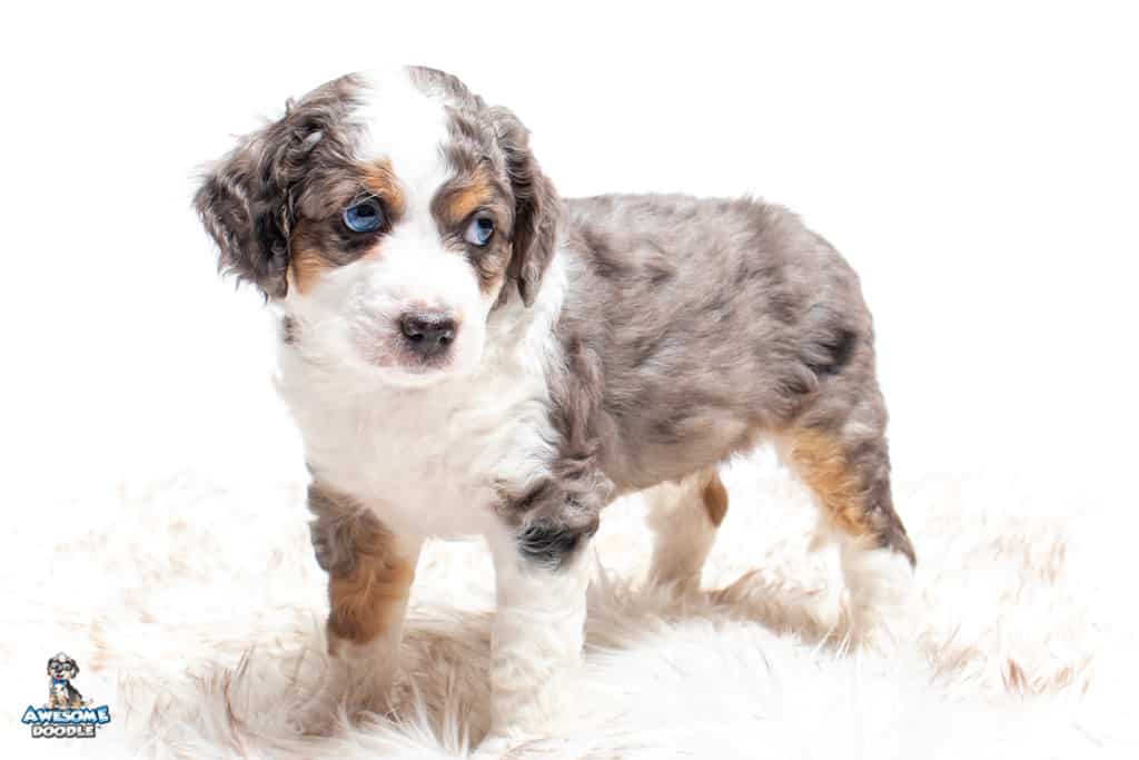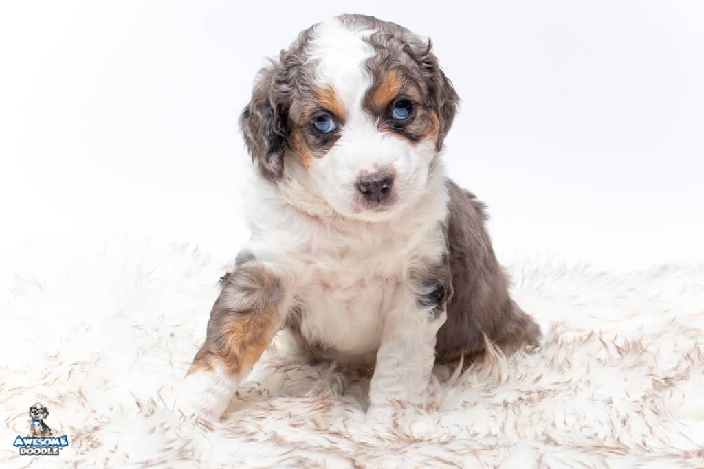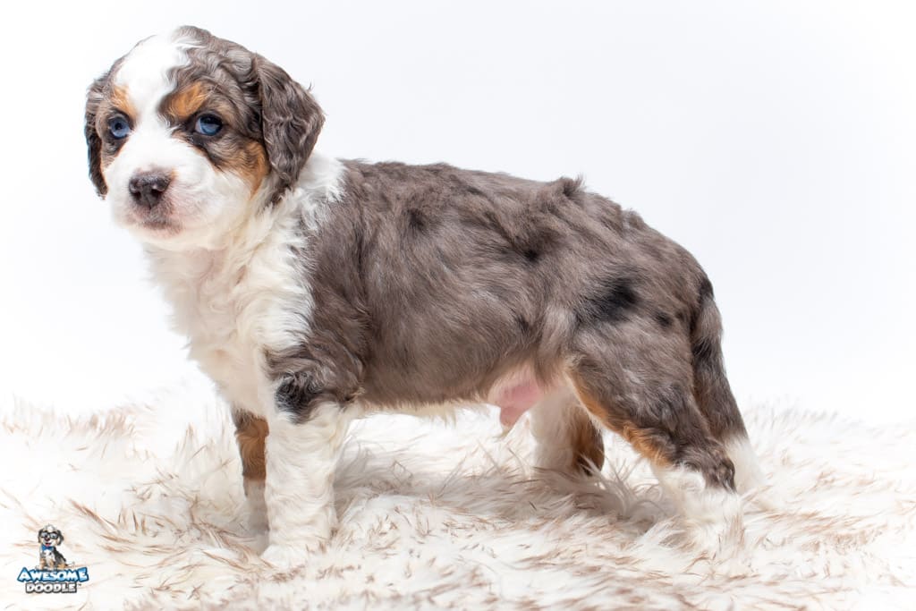 Ziggy is a male Blue Merle w/ White & Copper F1 AussieDoodle puppy.