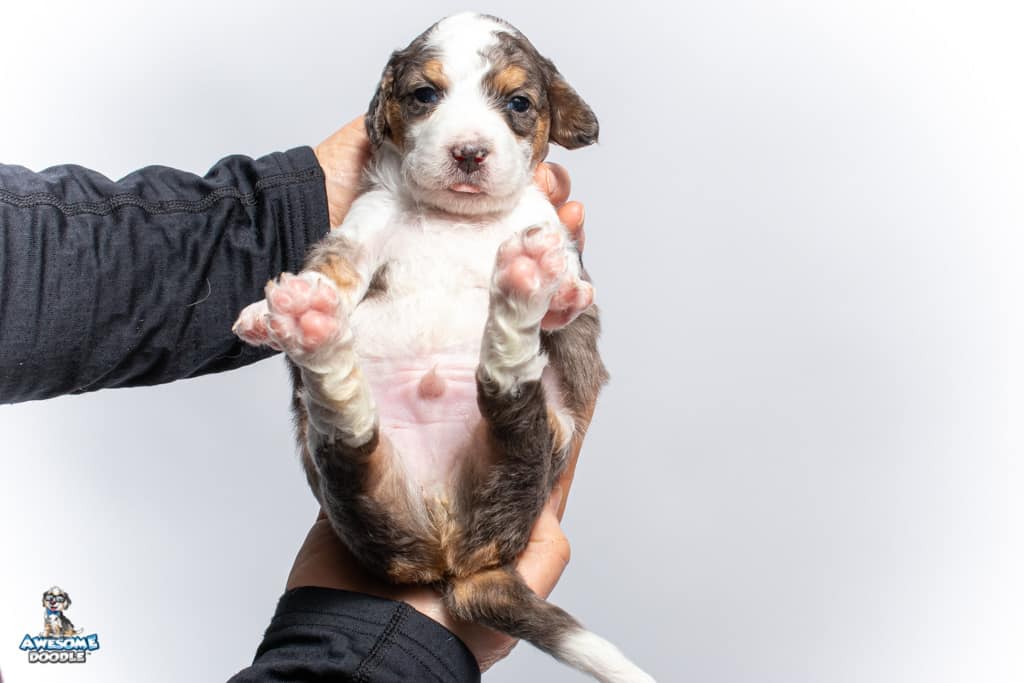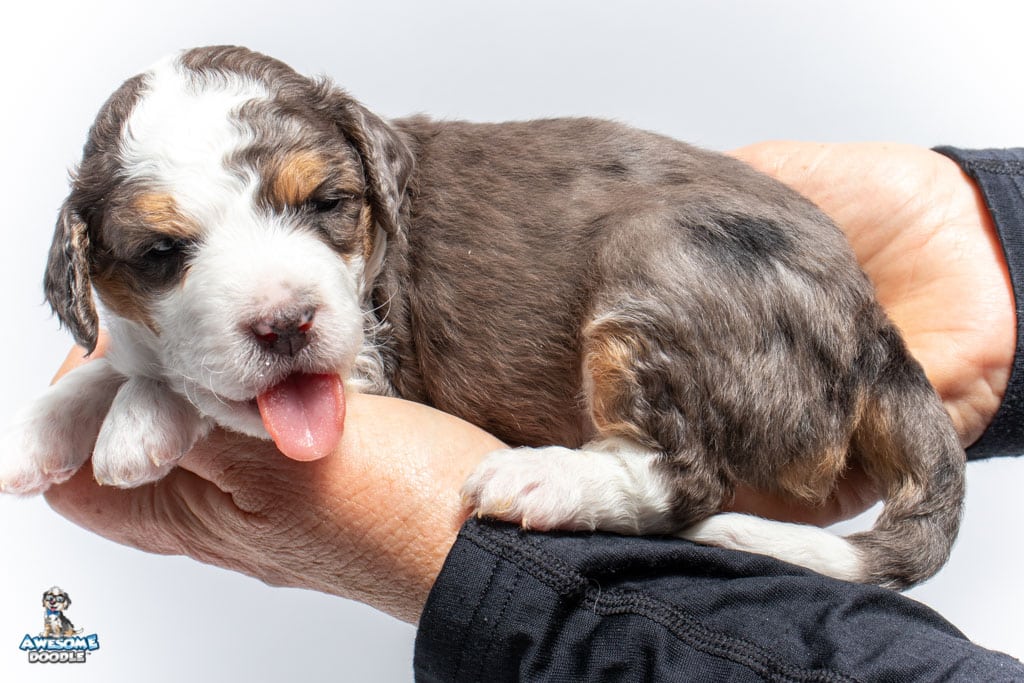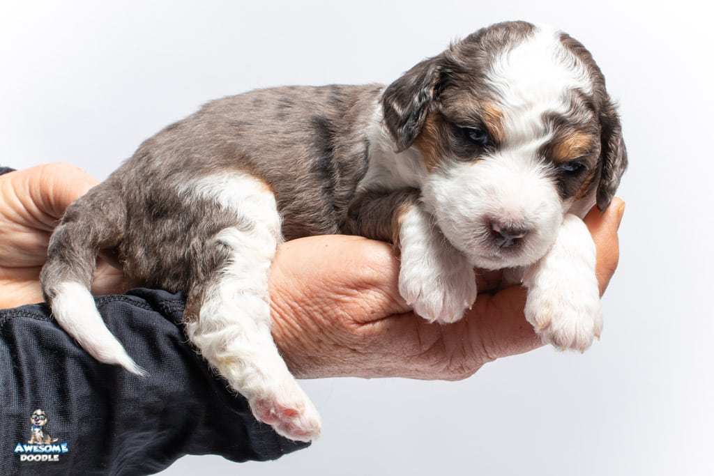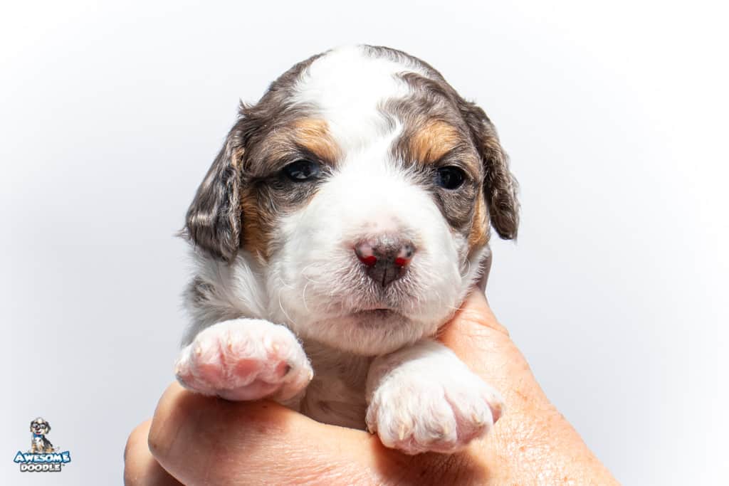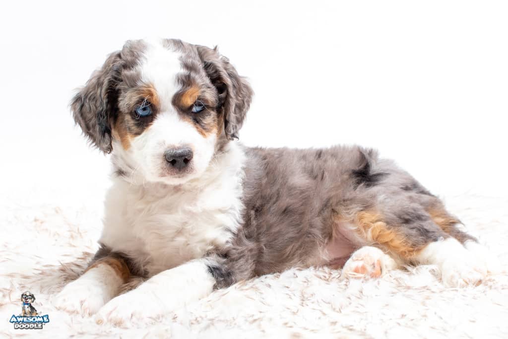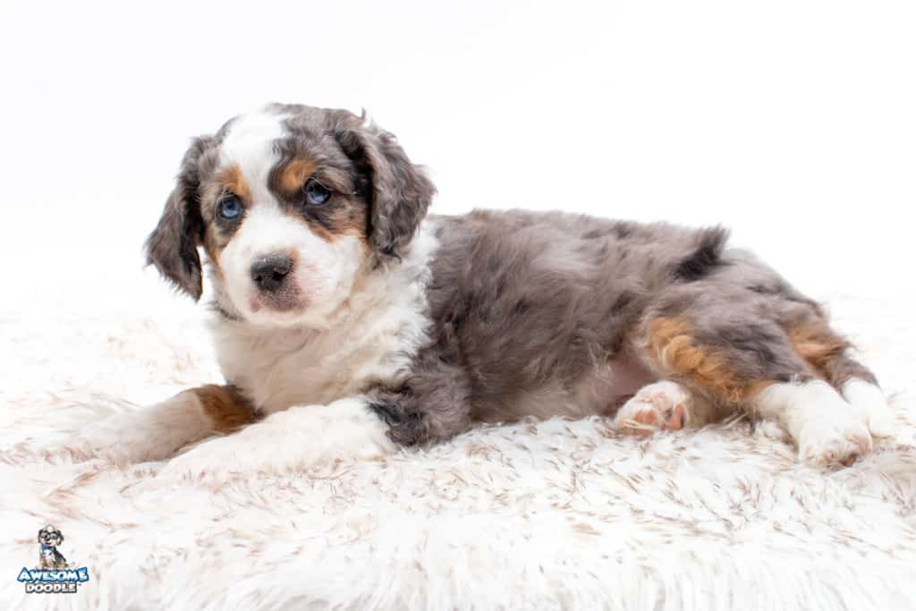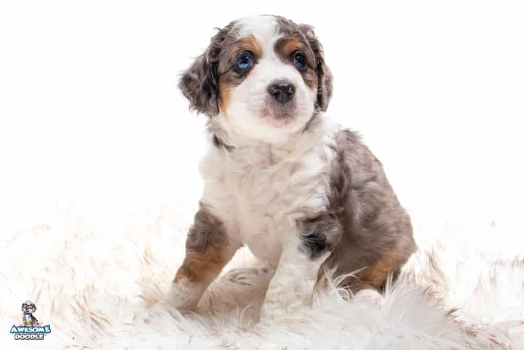 Ziggy is a male Blue Merle w/ White & Copper F1 AussieDoodle puppy.
