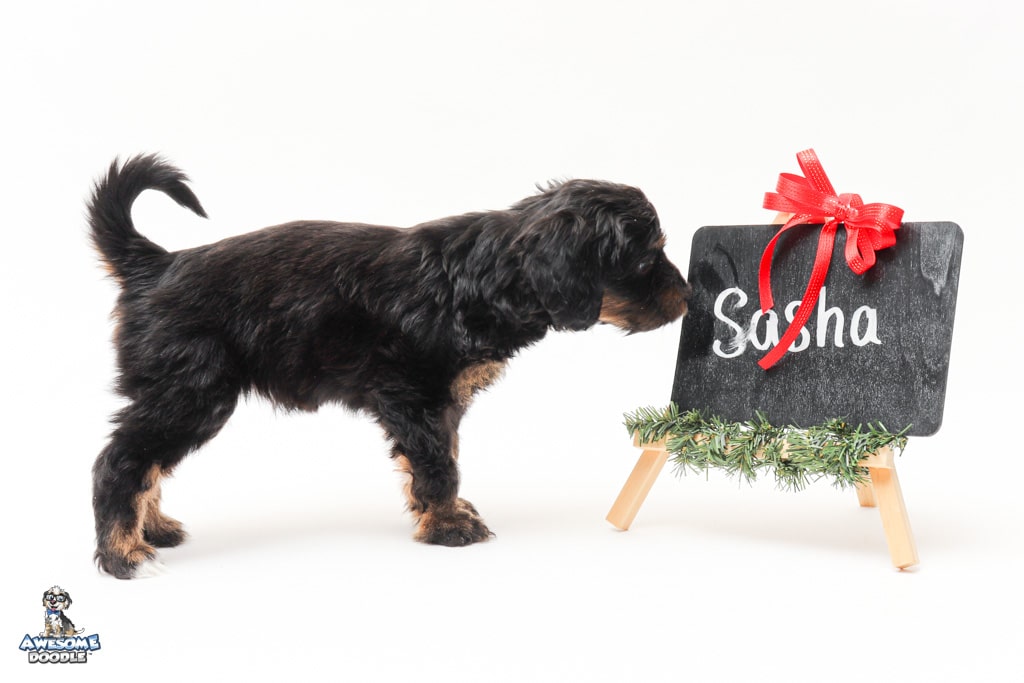 Ruby Rose is a female Black Phantom F1 AussieDoodle puppy.