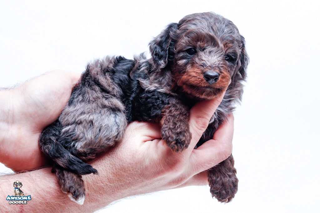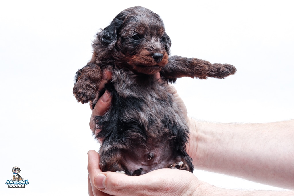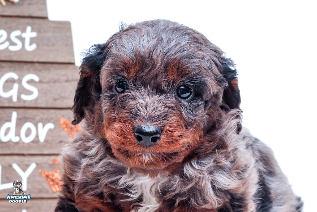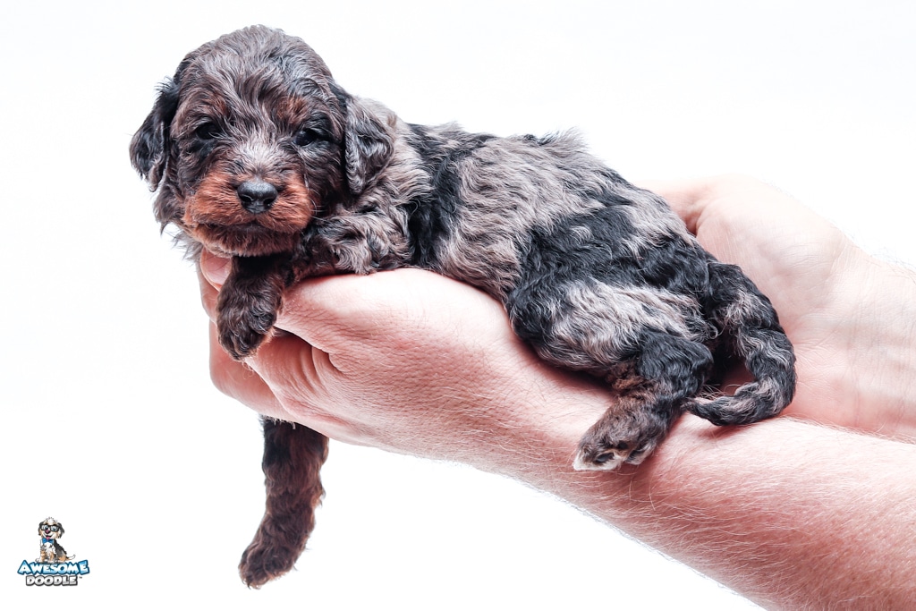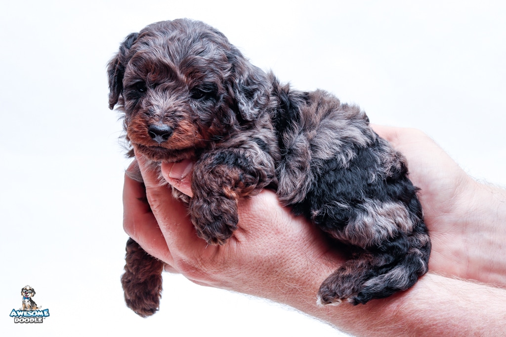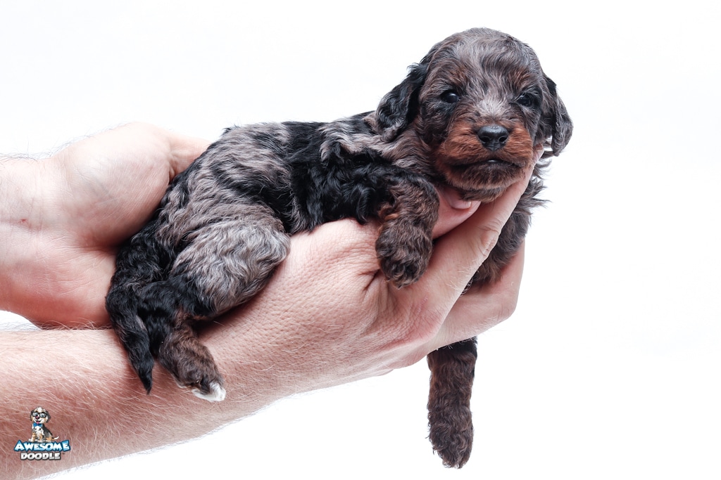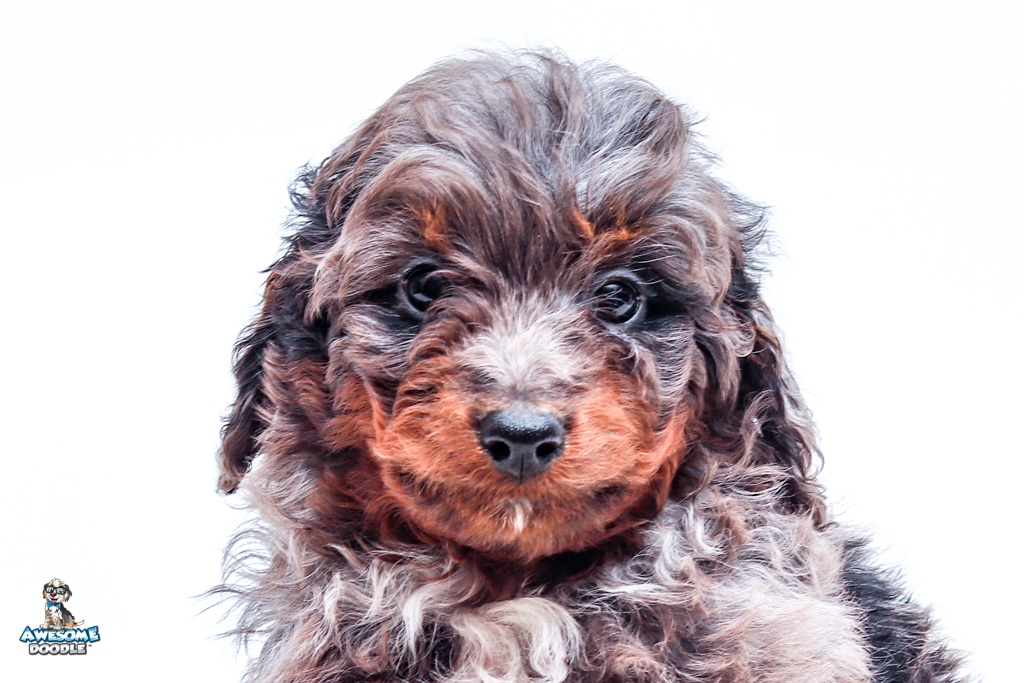 Shadow is a male Phantom Blue Merle F1 AussieDoodle puppy.