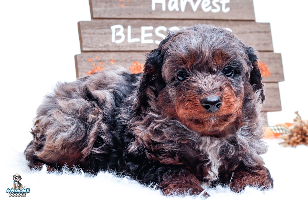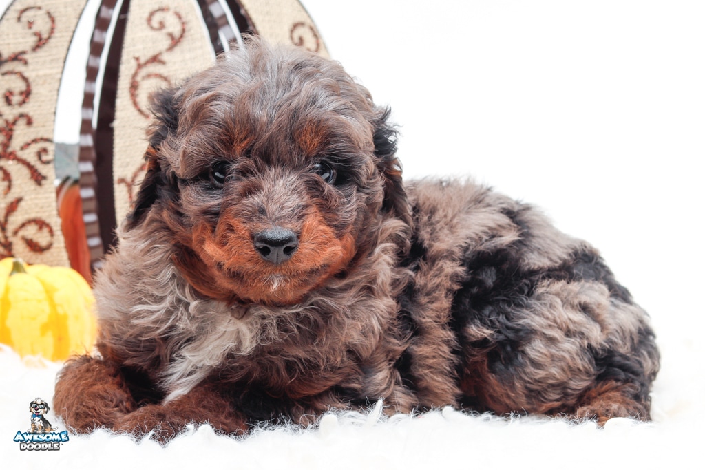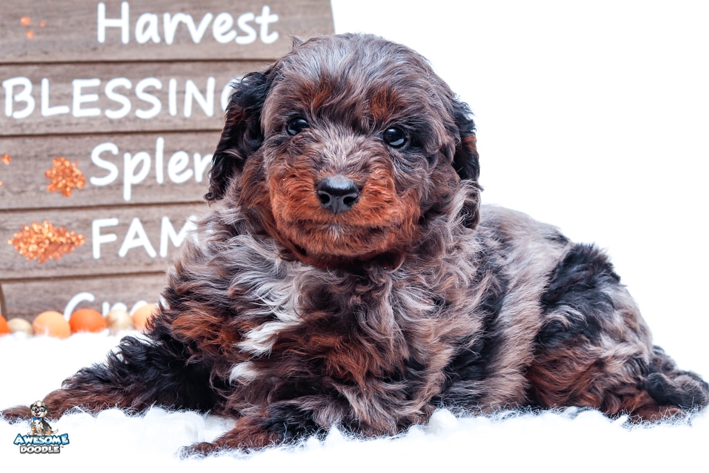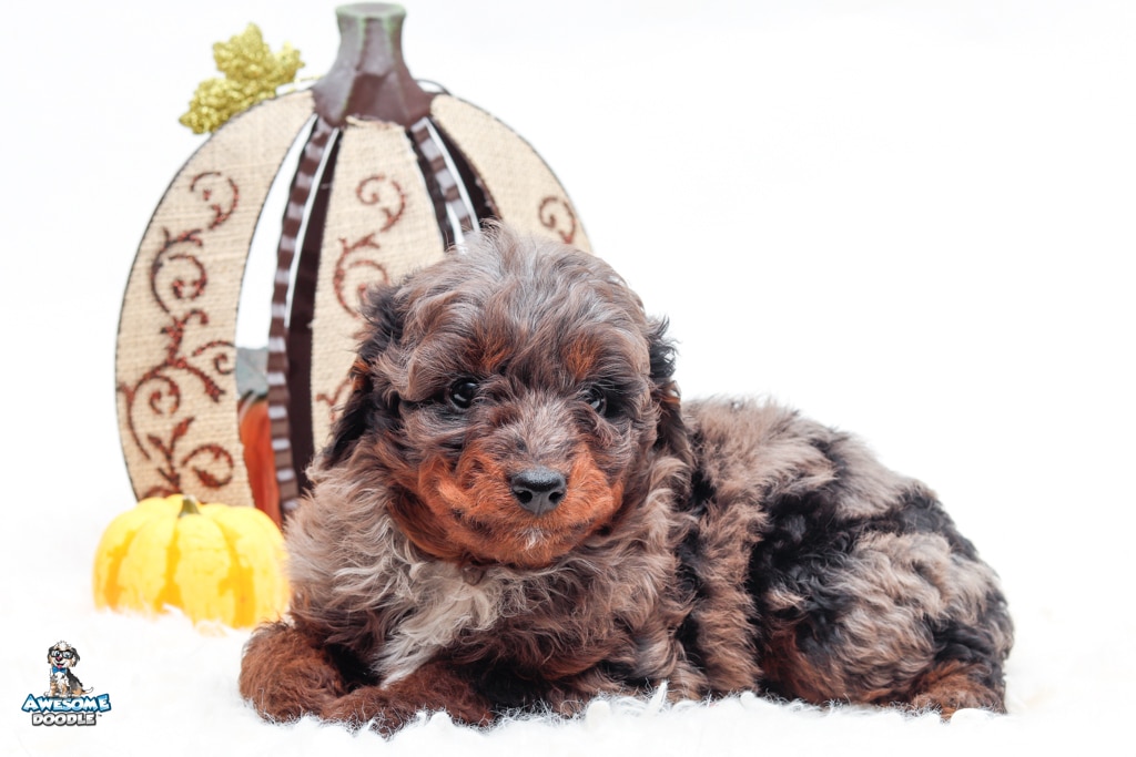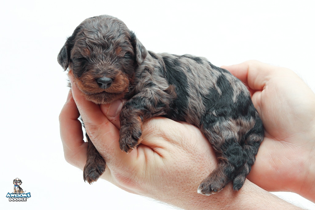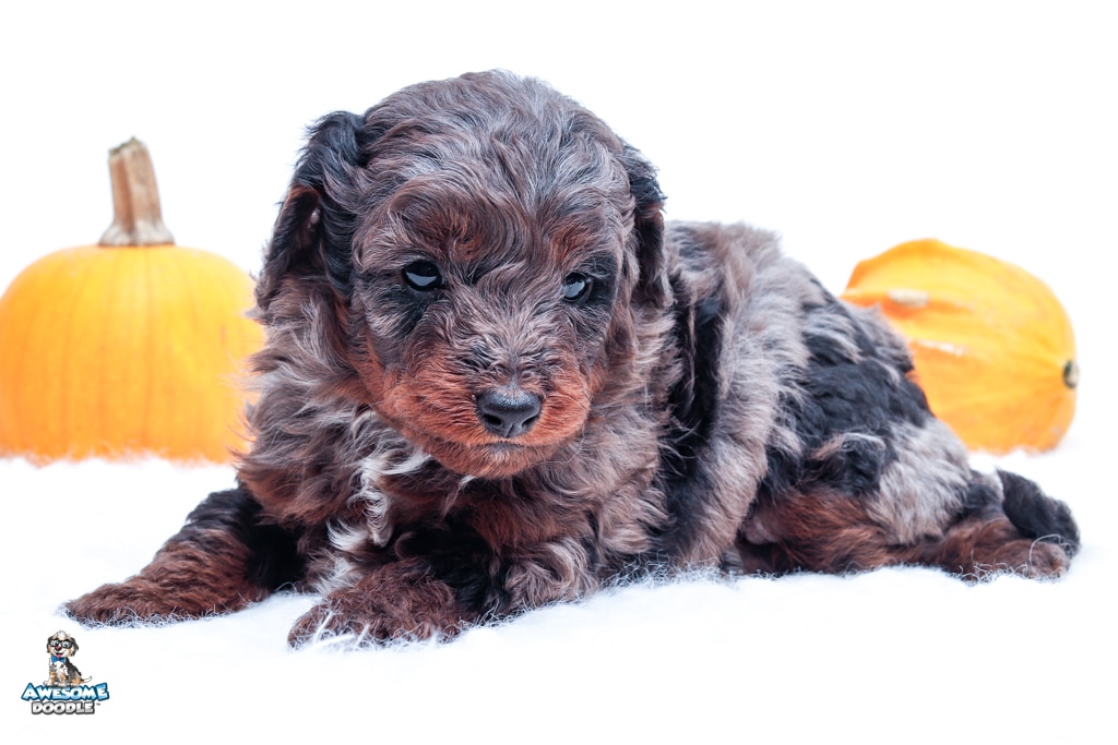 Shadow is a male Phantom Blue Merle F1 AussieDoodle puppy.