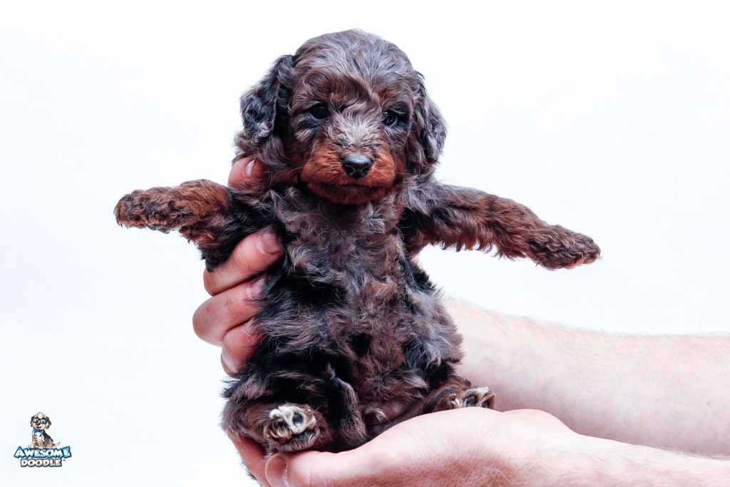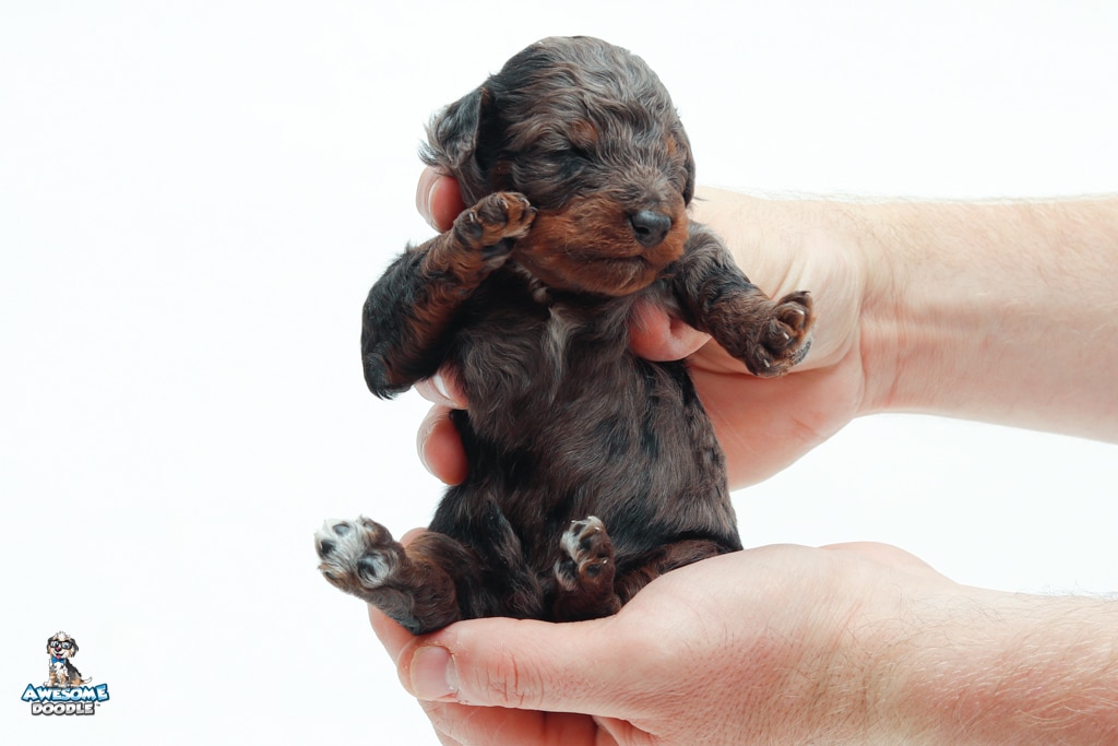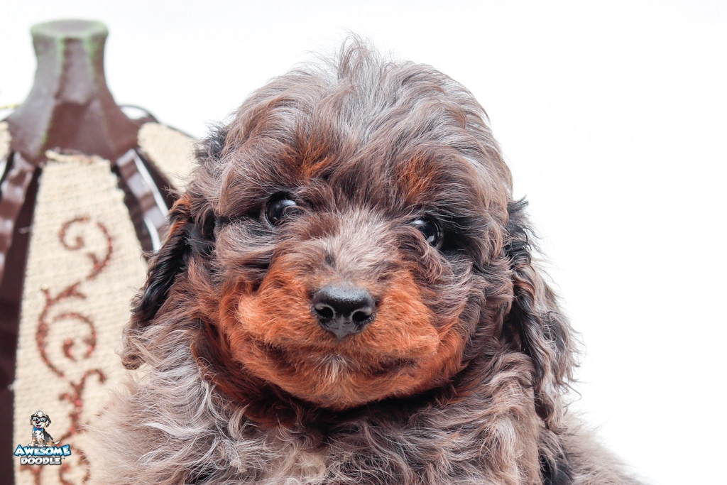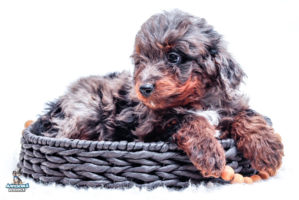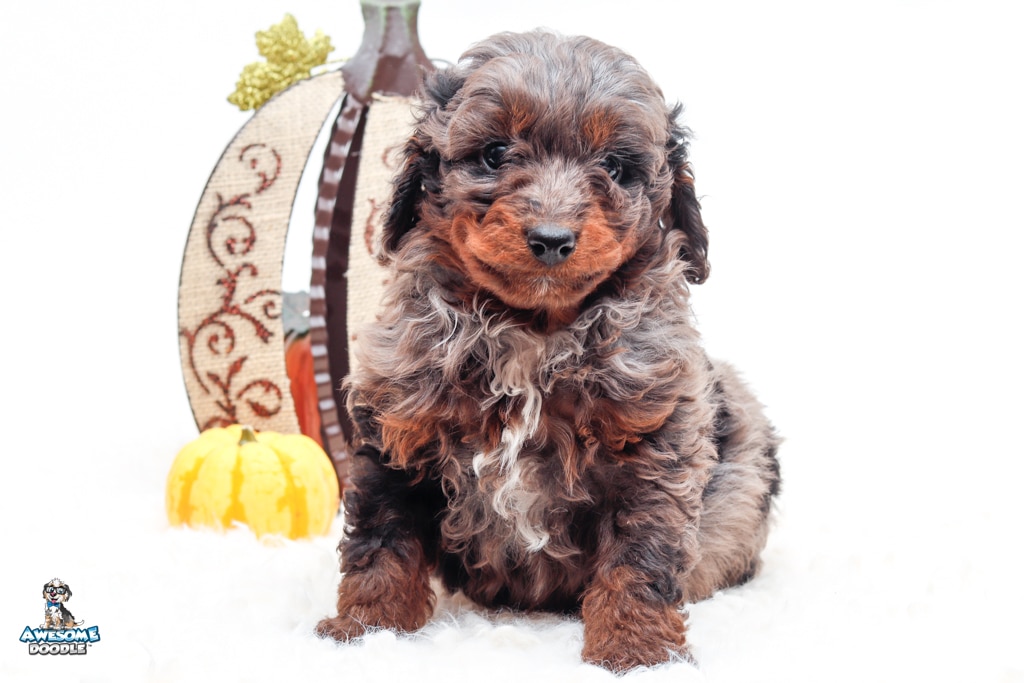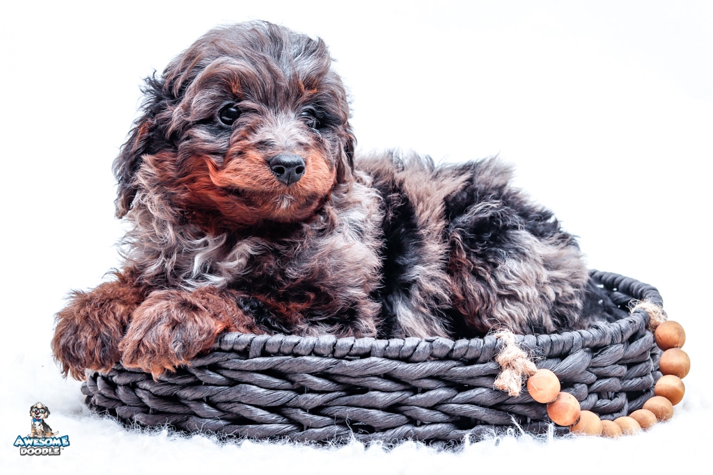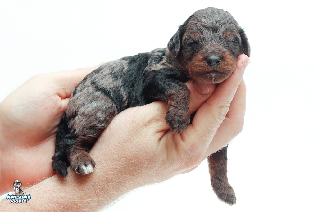 Shadow is a male Phantom Blue Merle F1 AussieDoodle puppy.
