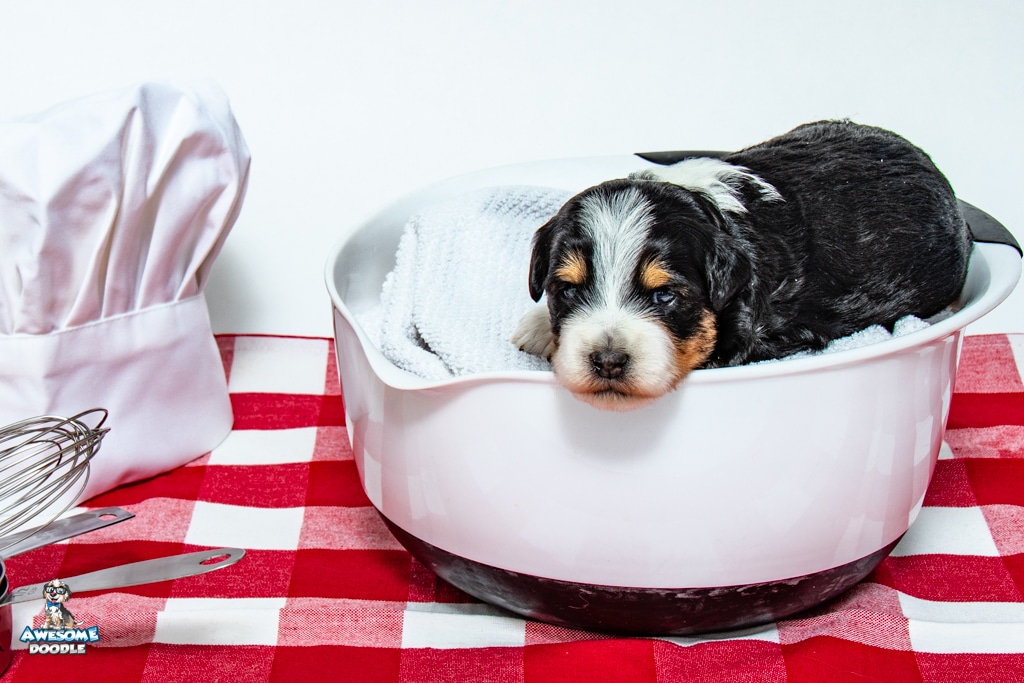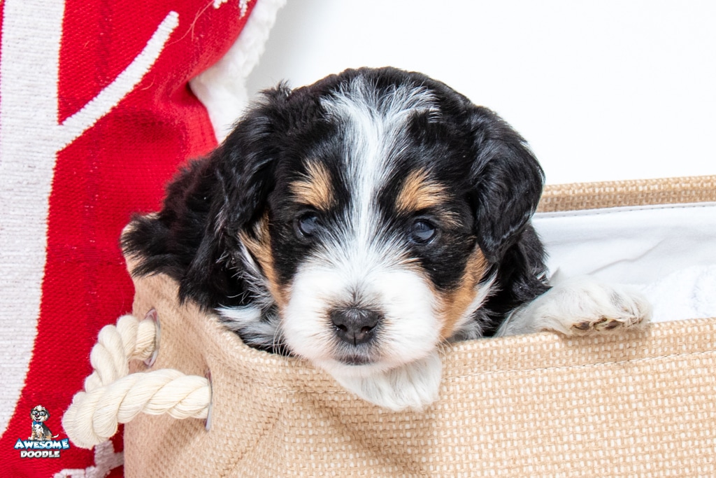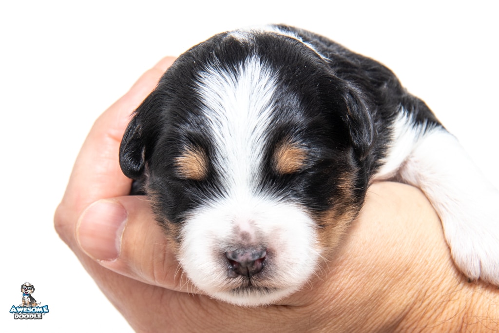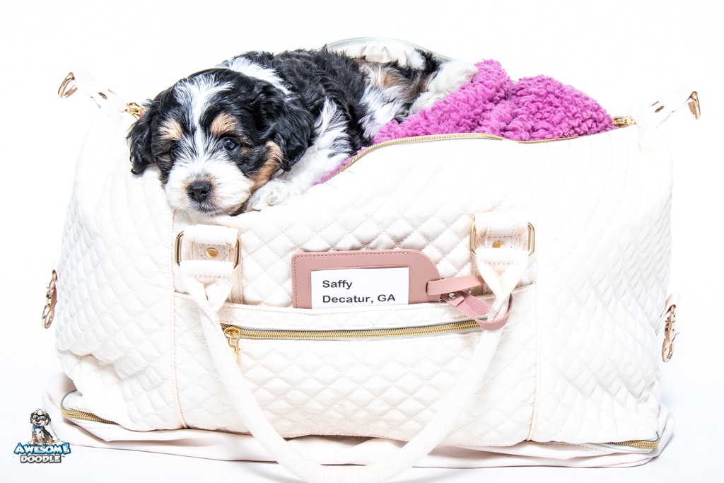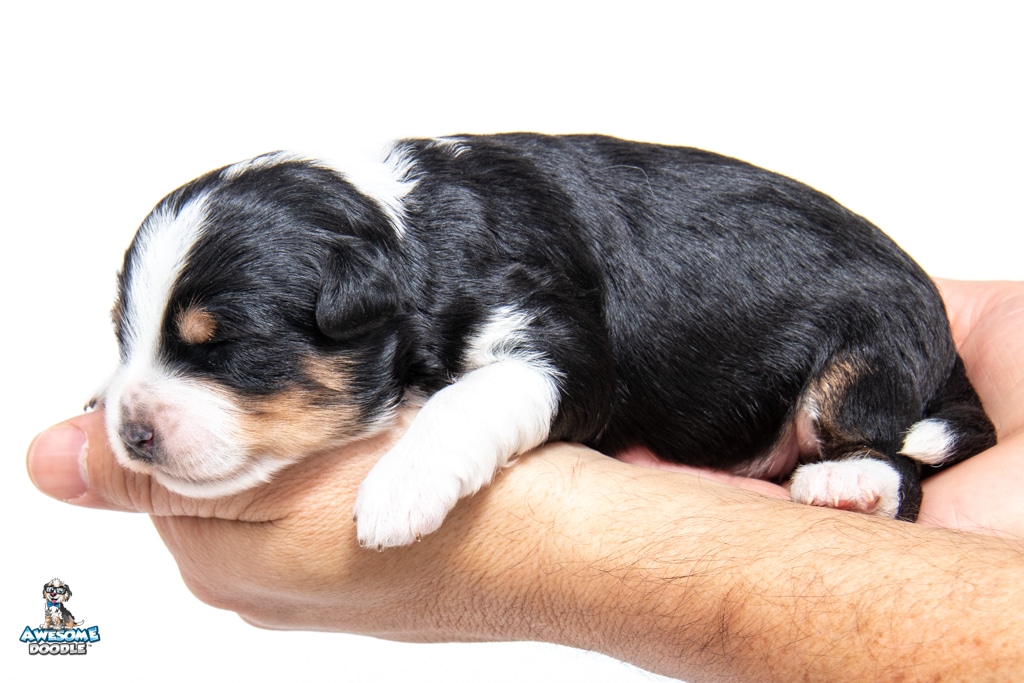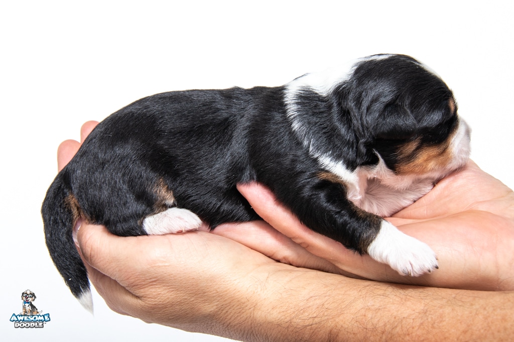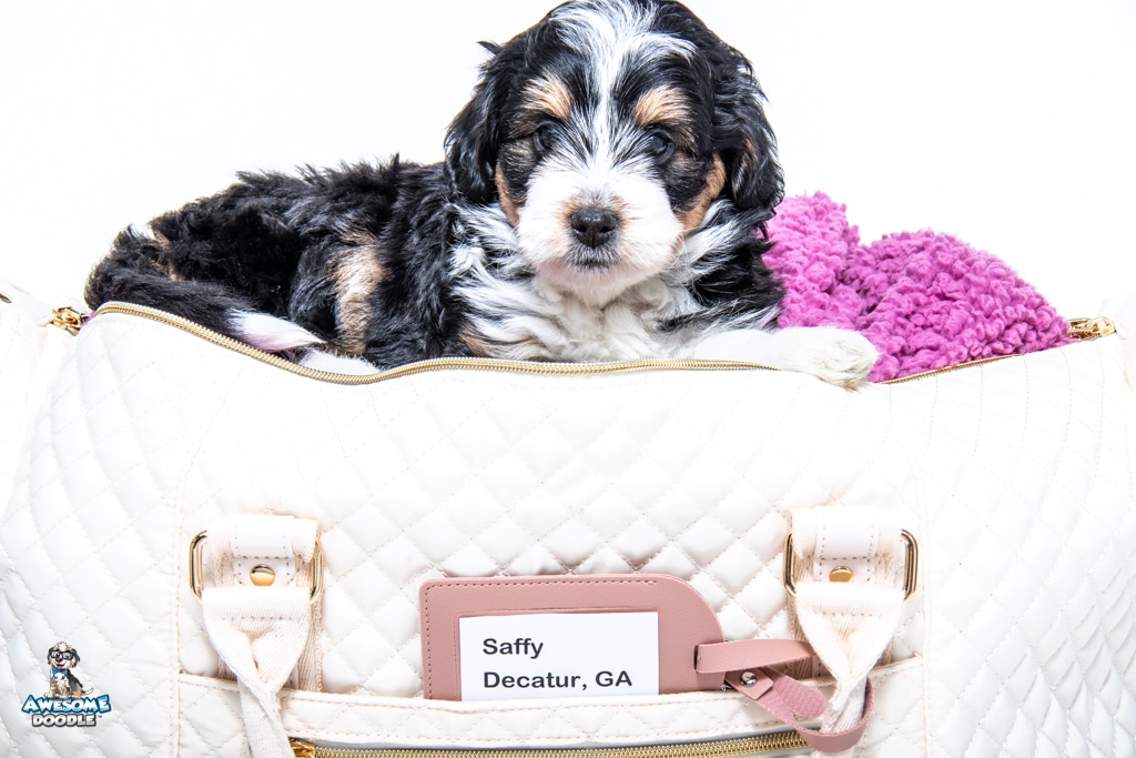 Saffy is a female Black Tri-Color F1 AussieDoodle puppy.