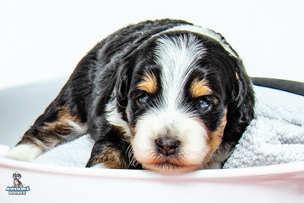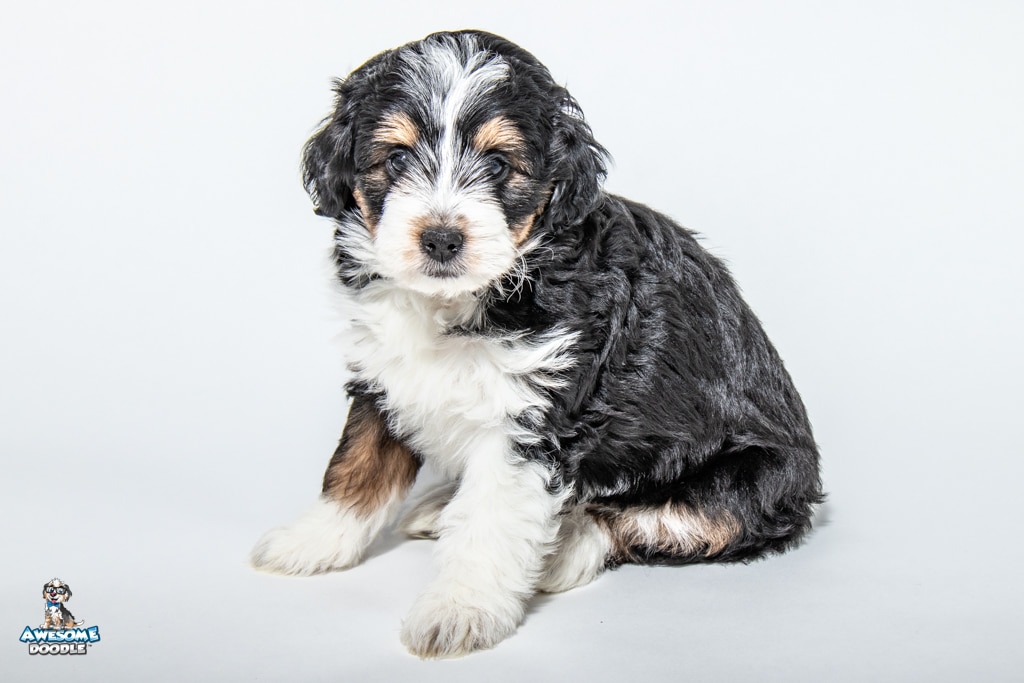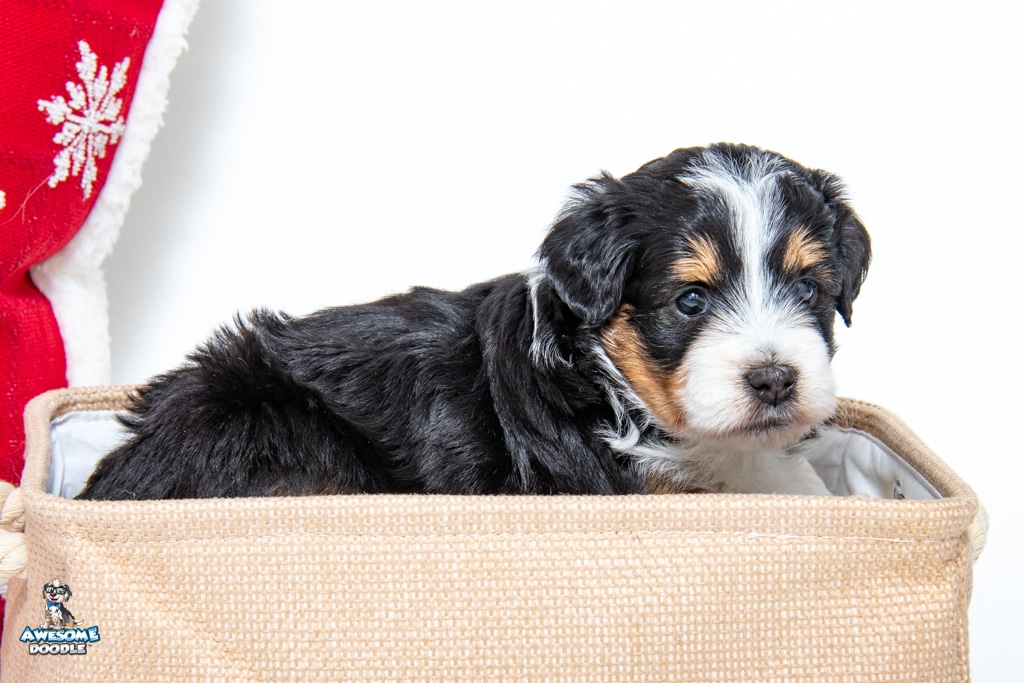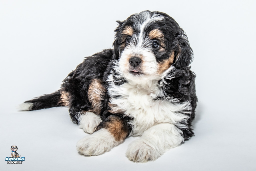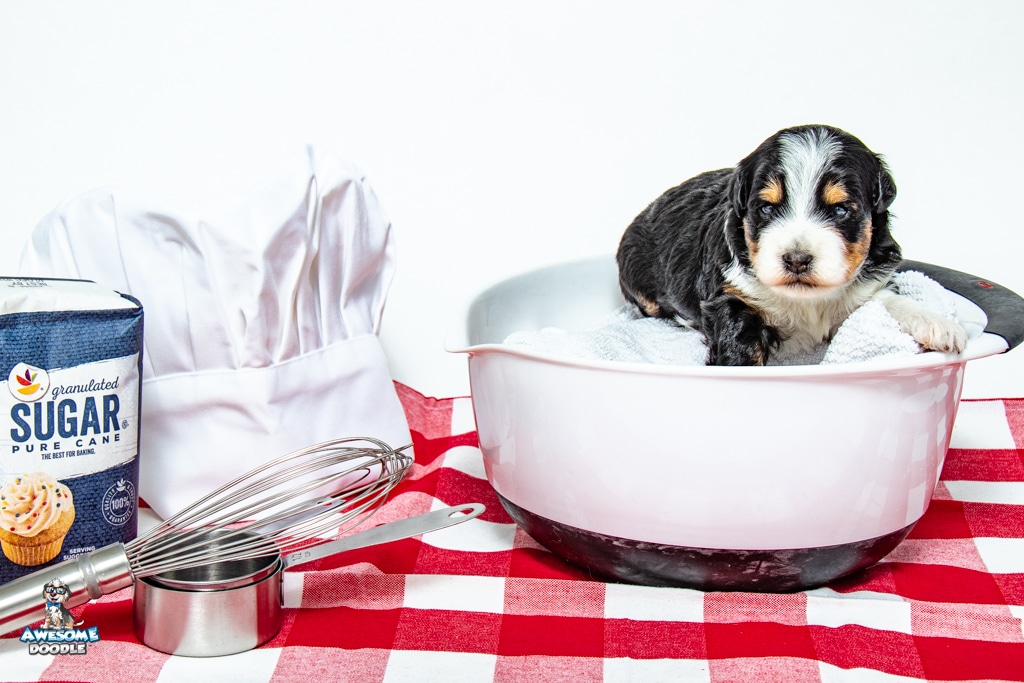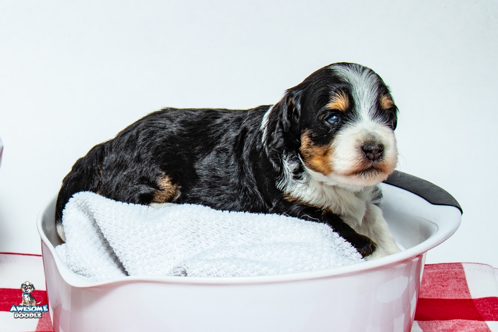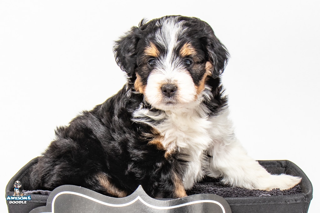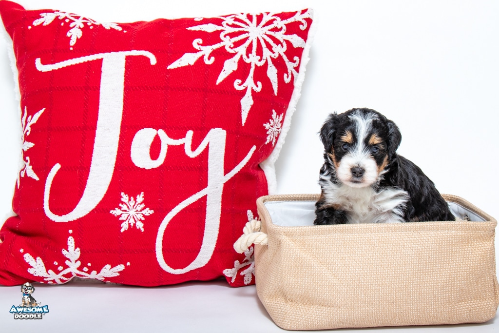Saffy is a female Black Tri-Color F1 AussieDoodle puppy.